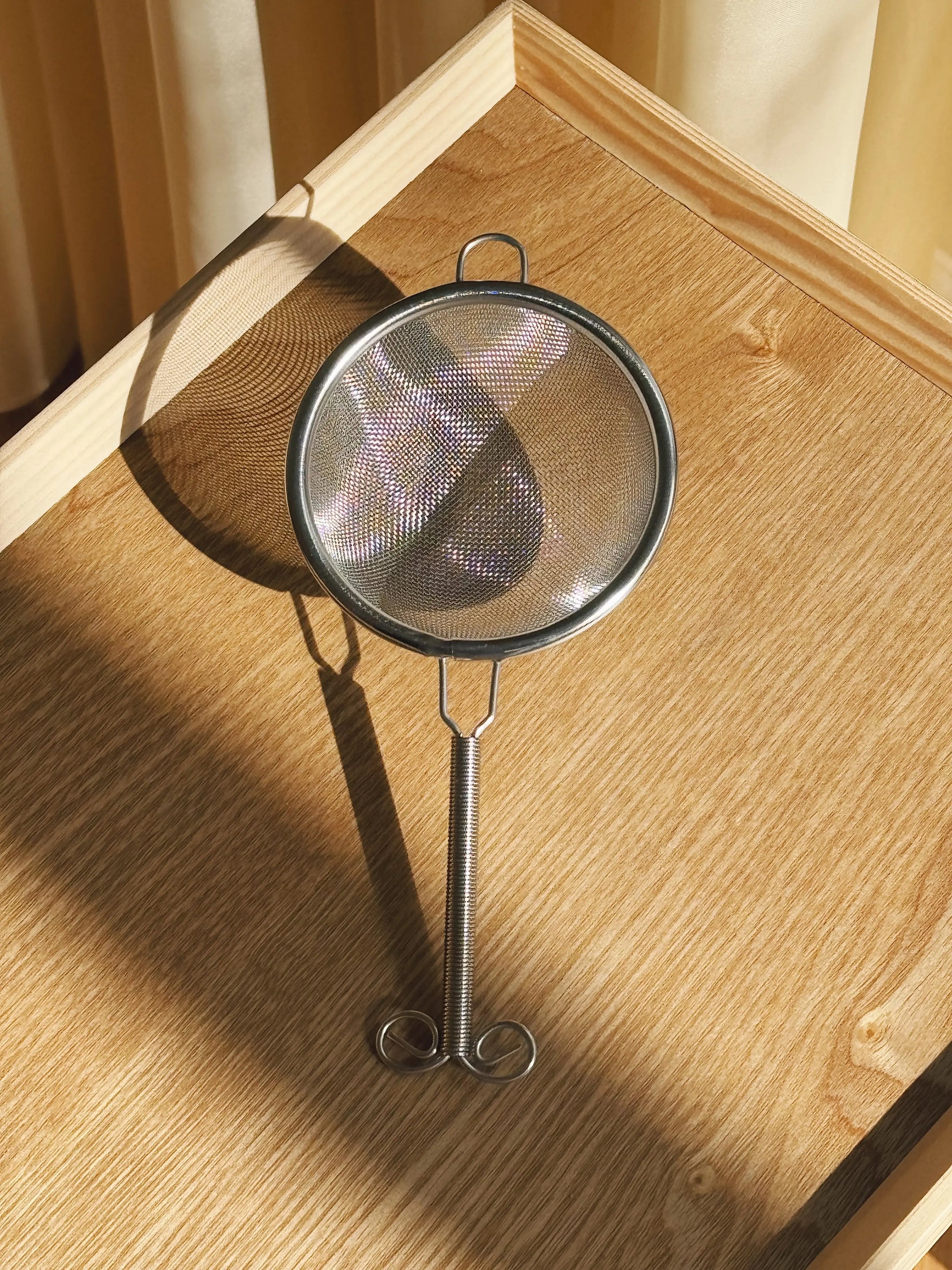 Denne fine lille si i rustfrit stål er designet til at sigte matcha-pulver, hvilket giver en jævn og klumpfri bryg. Den har en praktisk, snoet hank, der gør den nem at bruge. Selvom den er perfekt til matcha, kan den også anvendes til andre formål, hvor du behøver at si fine pulver eller teblade.