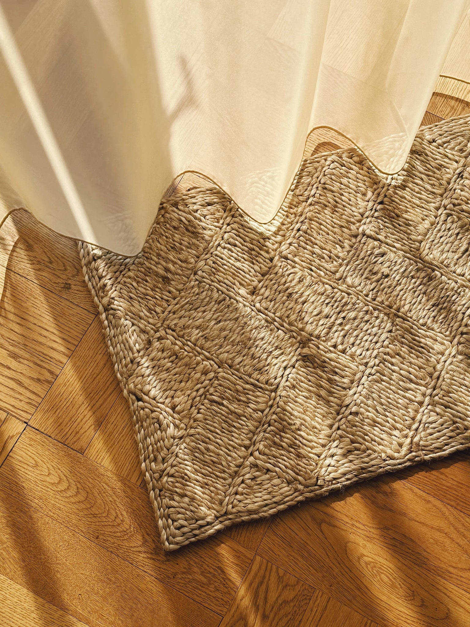 Tilføj naturlig elegance til dit hjem med denne smukke håndlavede dørmåtte fremstillet af slidstærkt jute. Dørmåtten er vævet i et flot, geometrisk mønster, der kombinerer både funktion og æstetik.