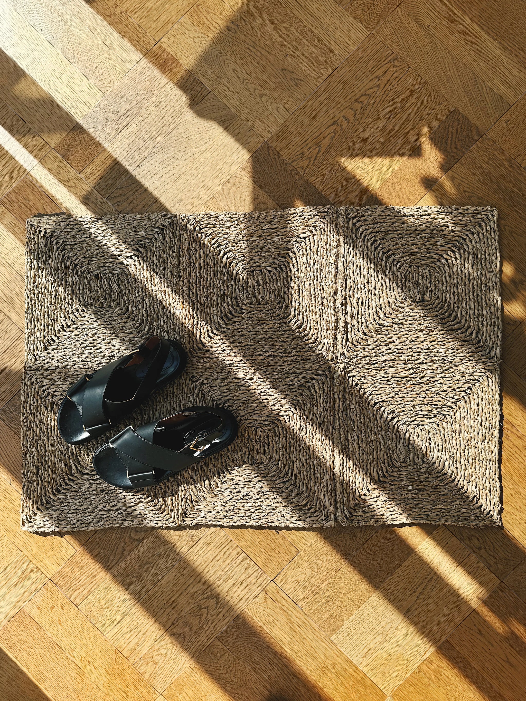 Tilføj et klassisk og funktionelt element til dit hjem med denne håndlavede søgræs dørmåtte, der måler 60 x 90 cm. Hver måtte er omhyggeligt håndlavet i Vietnam og præsenterer et fint flettet mønster, der kombinerer stil og holdbarhed. Perfekt til at placere ved indgangsdøre eller i gangarealer, giver den en elegant og naturlig touch, mens den effektivt fjerner snavs og skidt fra dine sko.