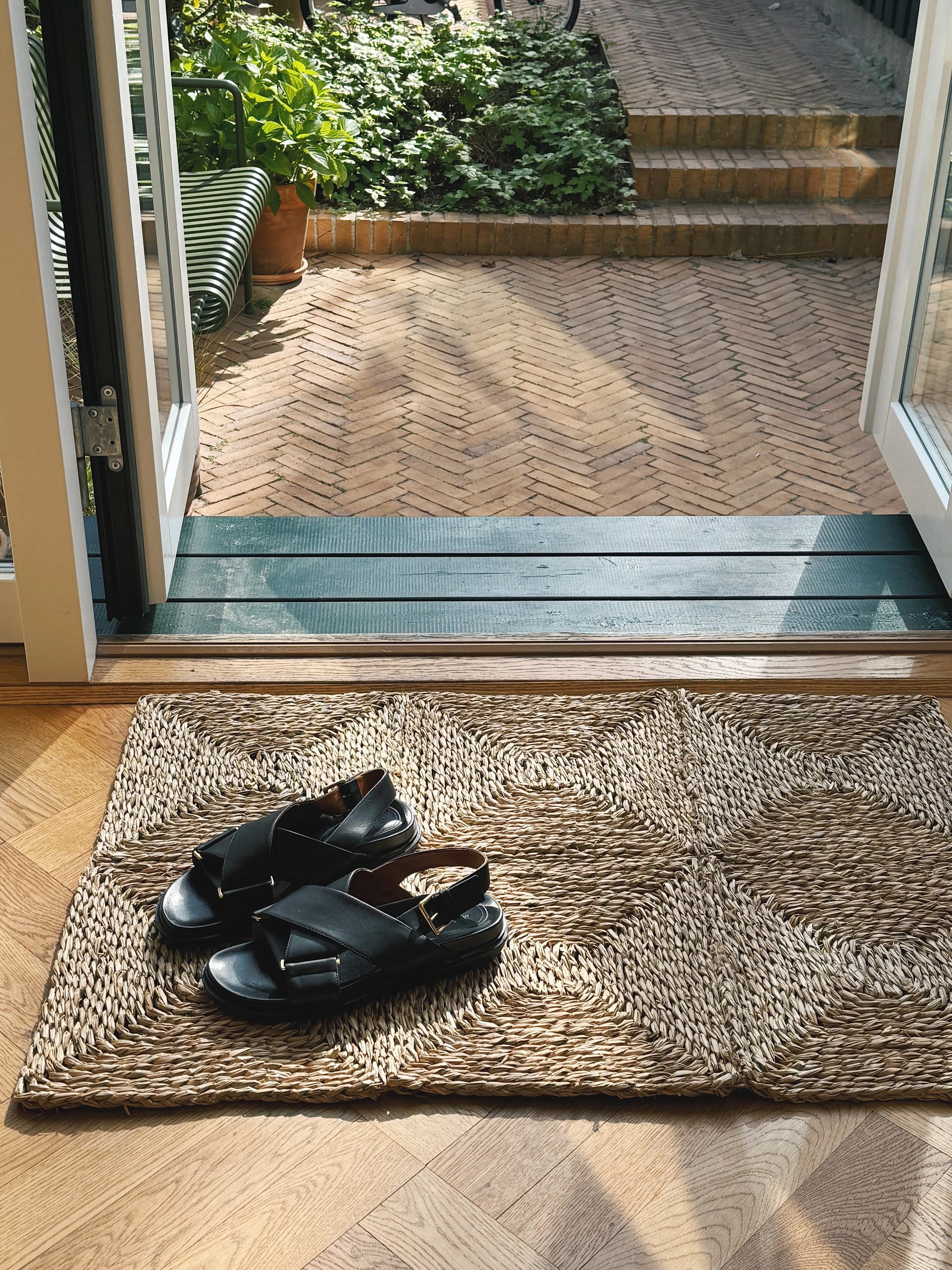 Den slidstærke søgræs konstruktion er designet til at være robust og nem at rengøre, men vær opmærksom på, at søgræs måtter ikke bør blive våde.