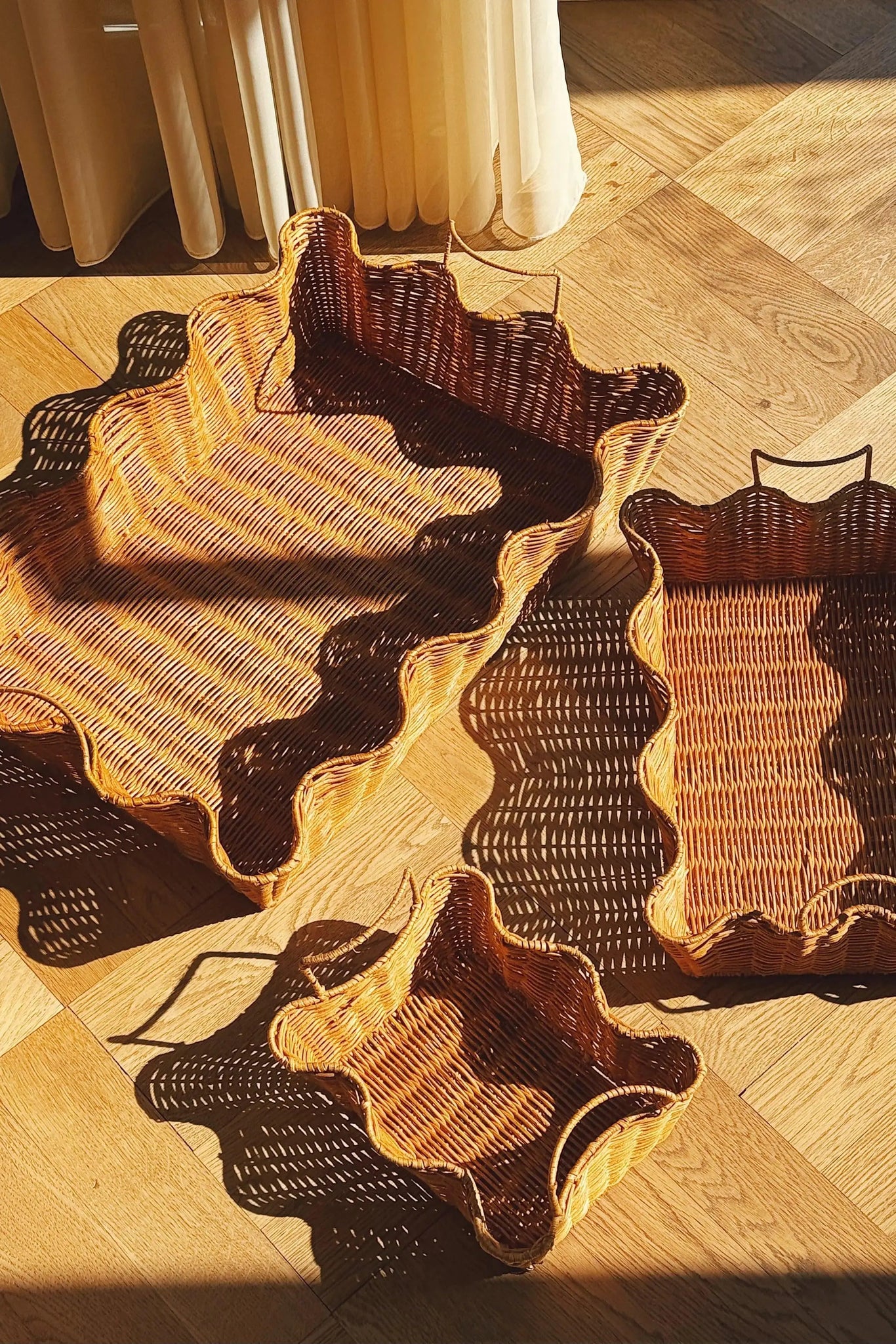Bølget Bakke i Håndflettet Rattan – 3 Størrelser