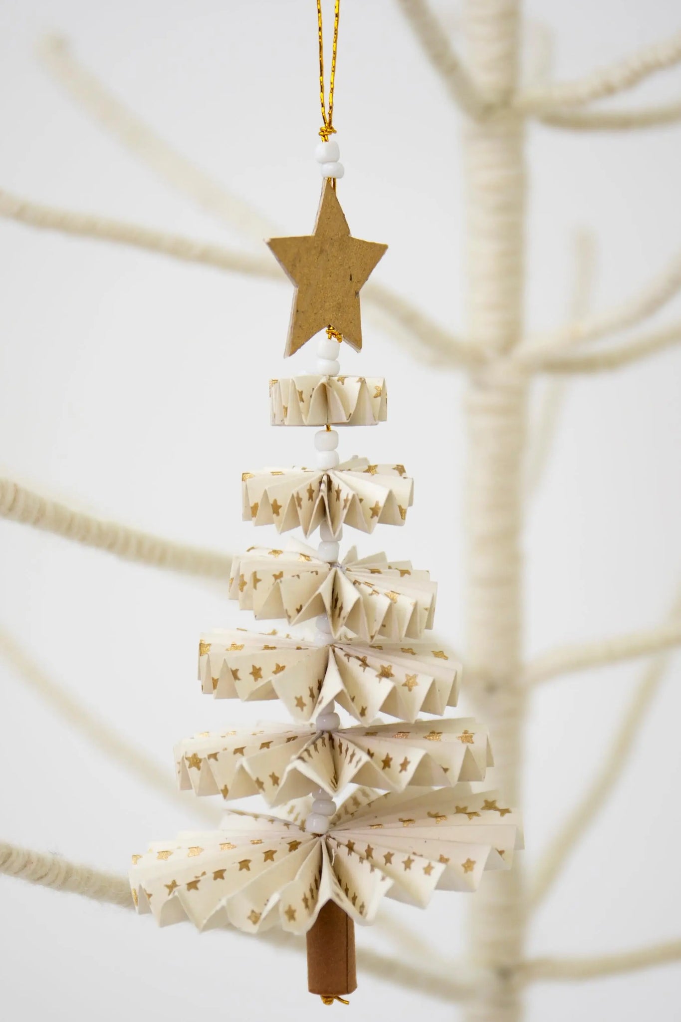 Foldet papirsjuletræ til ophæng | Hvid