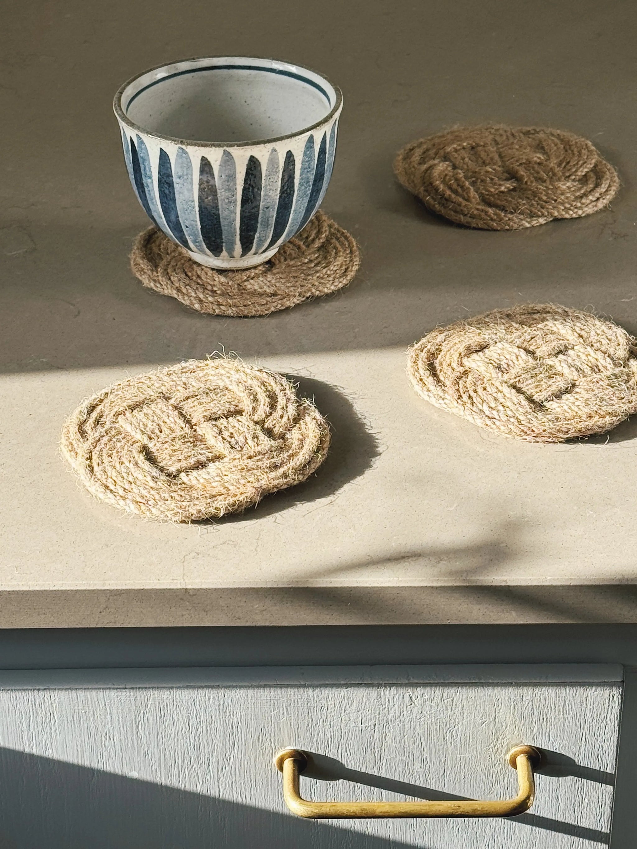 Sæt med 4 Ocean Plait Coasters i Flettet Jute | Ø10 cm