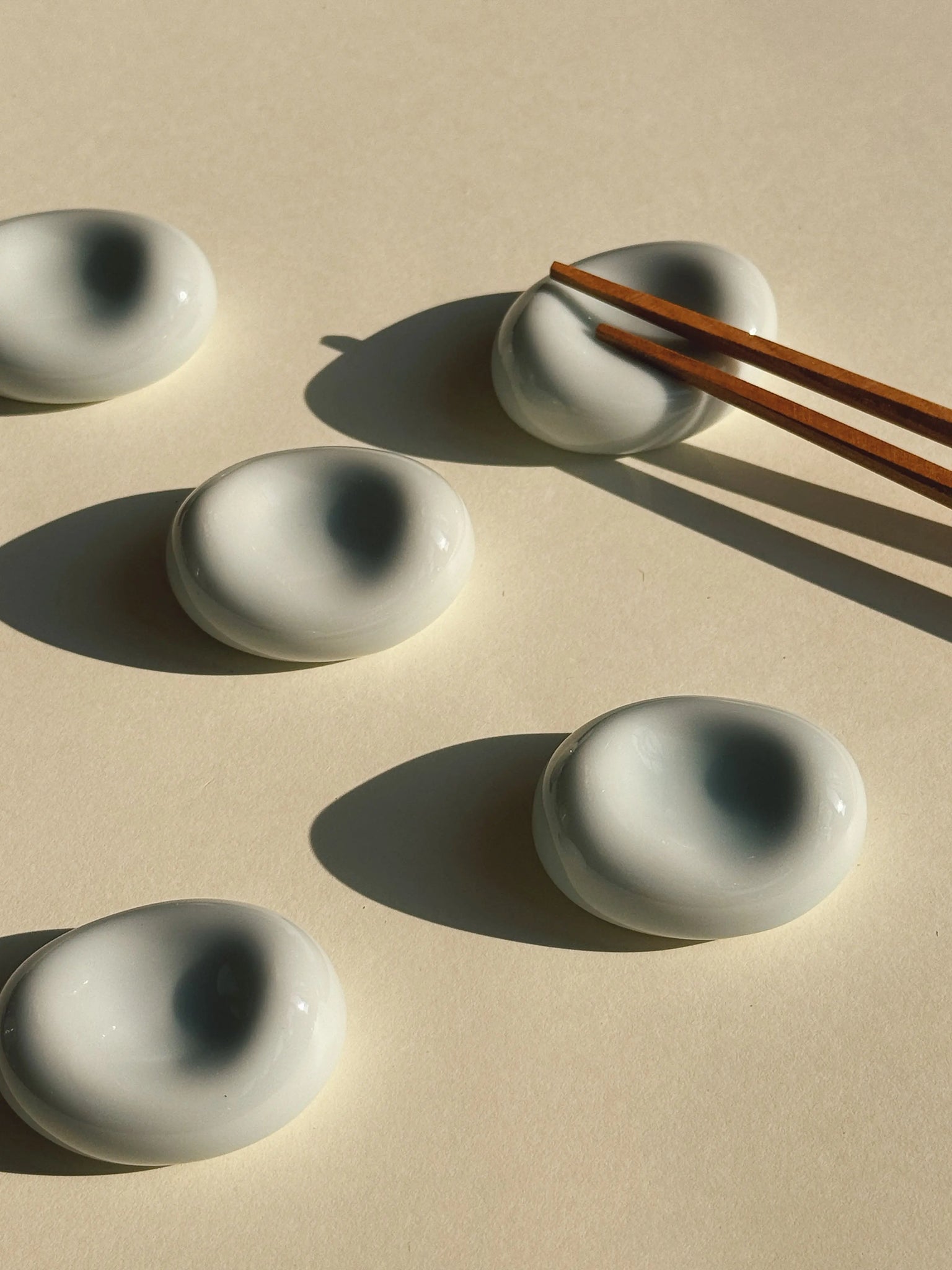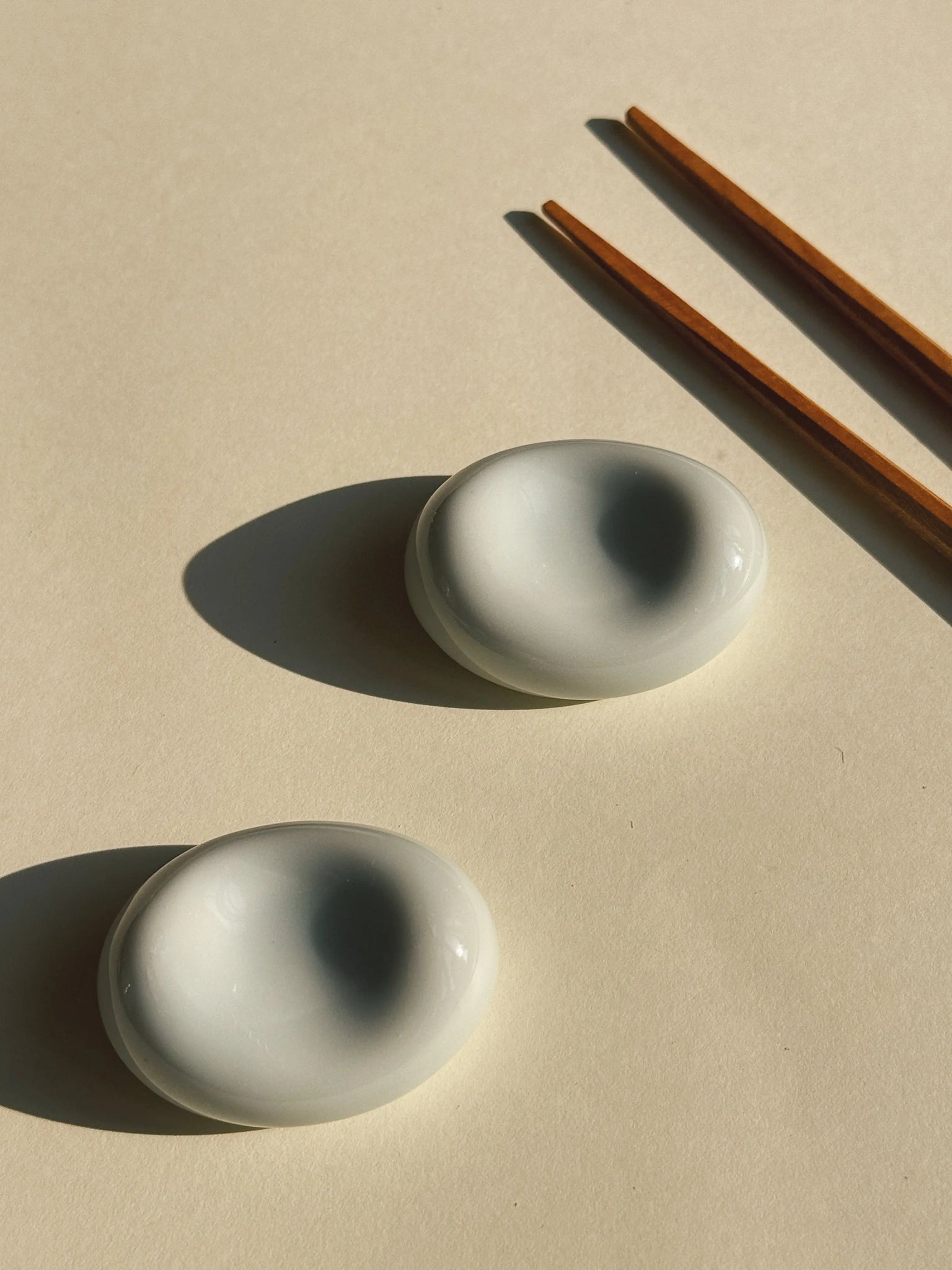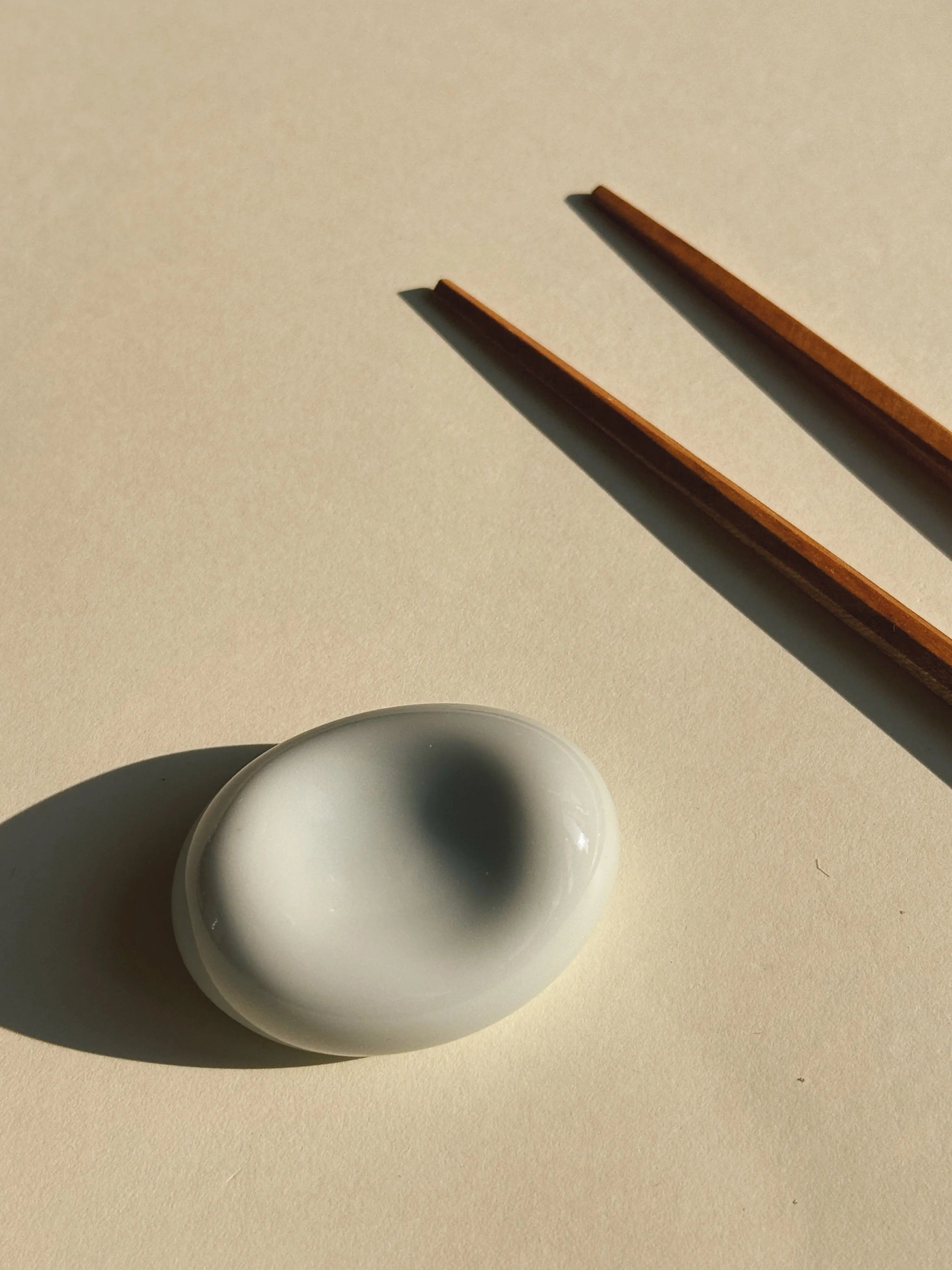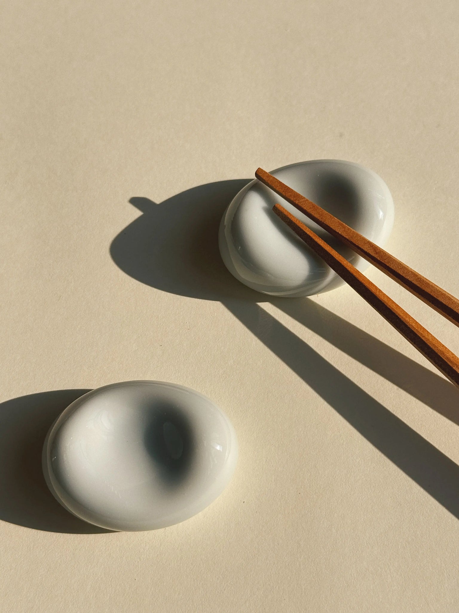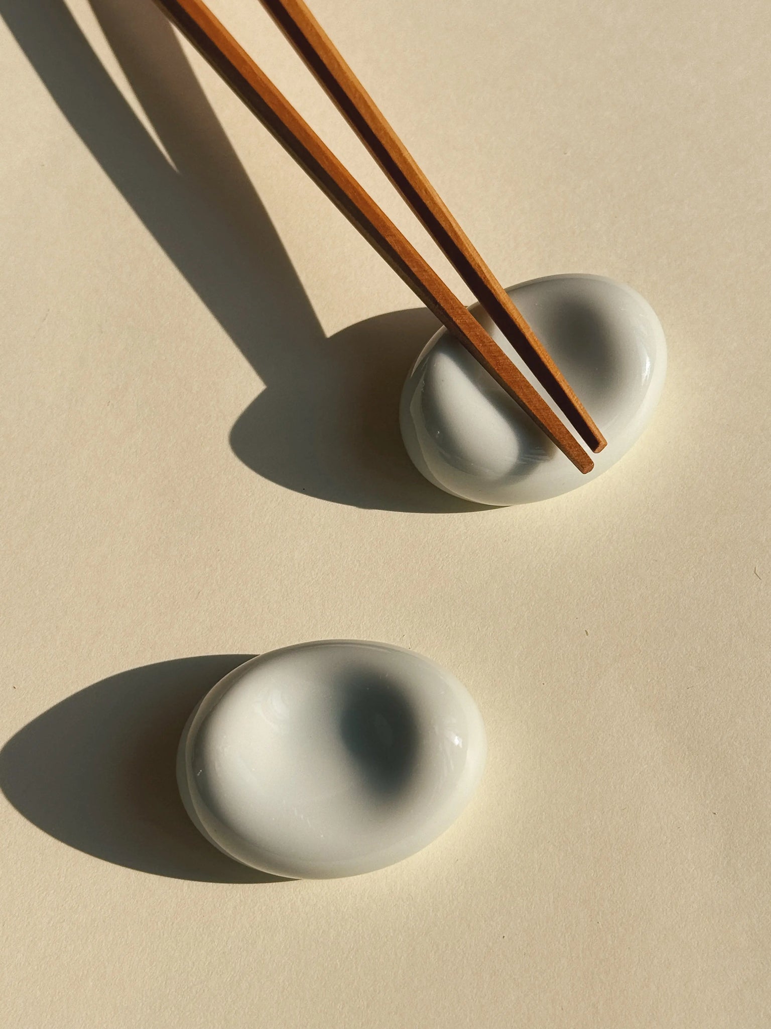 Elegant og enkel spisepindeholder i lyseblåglaseret porcelæn fra Japan. Den runde, bløde form og matte overflade gør den til en diskret men raffineret detalje på spisebordet. Perfekt til at holde dine spisepinde løftet fra overfladen mellem retterne – med et roligt udtryk, der passer ind i både moderne og klassisk opdækning.
