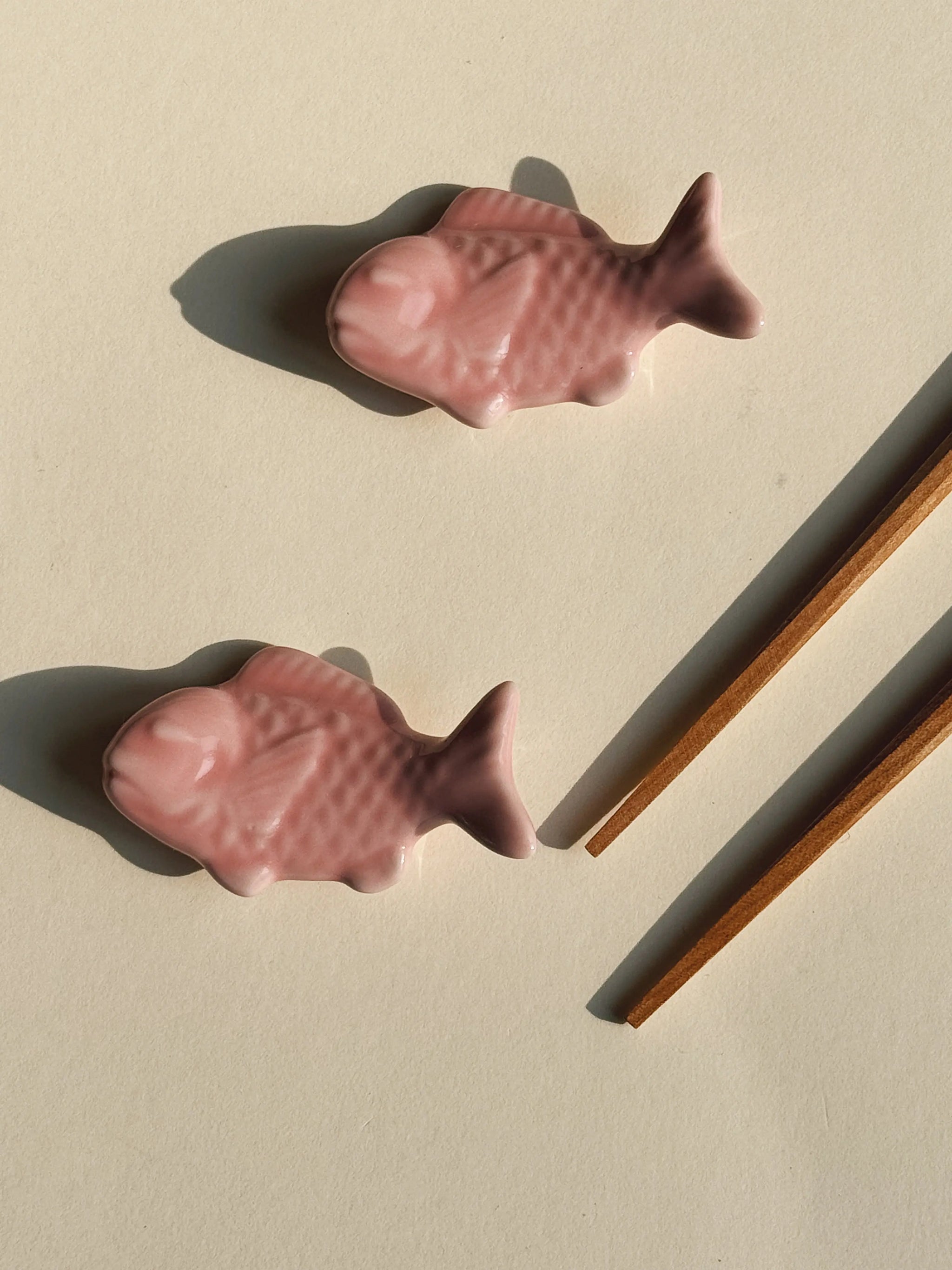 Spisepindholder i keramik | Lyserød fisk | Japan