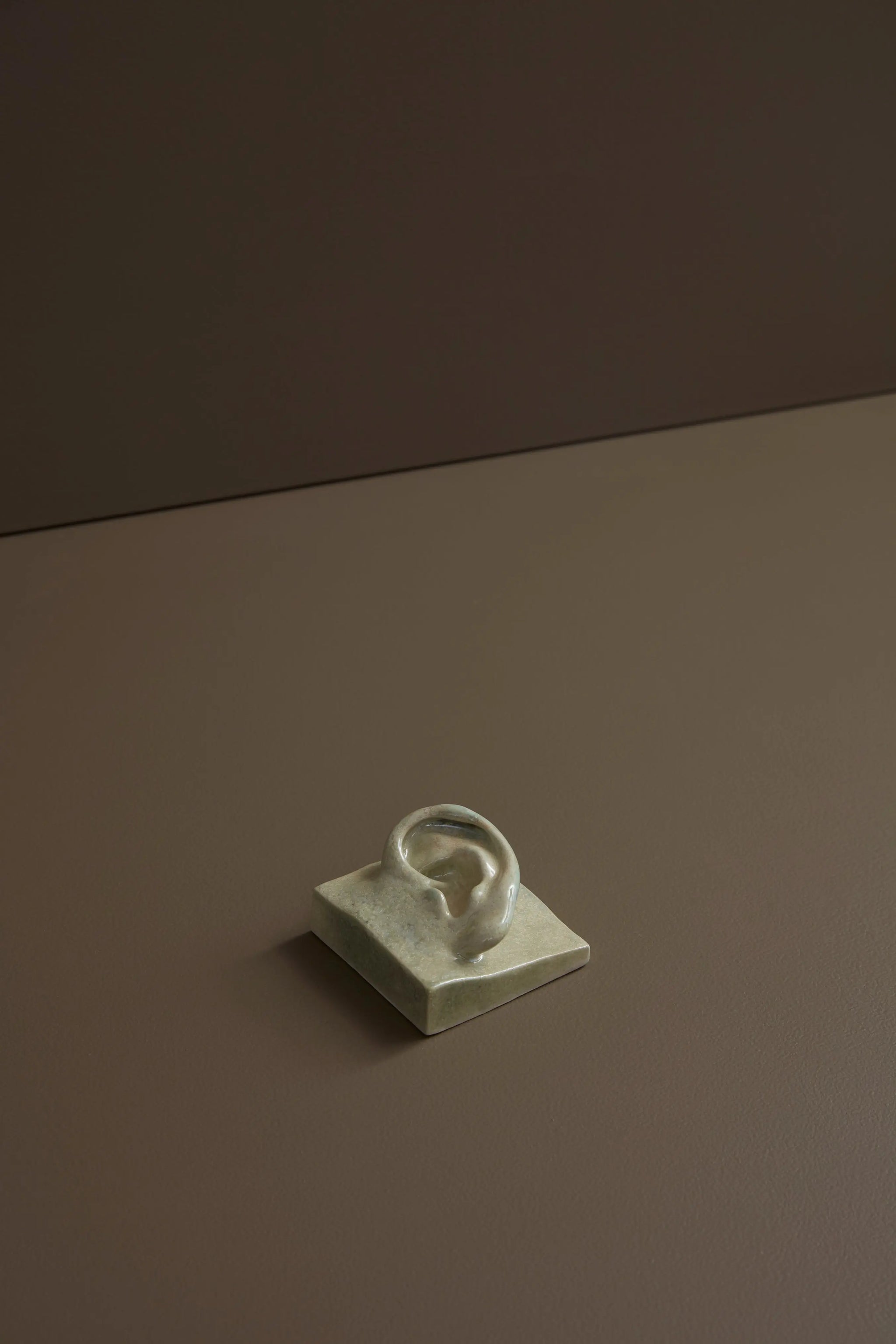 Dette firkantede venstre øre er skabt med fokus på både klassisk og abstrakt æstetik. Det tilbyder en unik blanding af traditionel skulpturering og moderne design, hvilket gør det til et alsidigt valg for enhver boligindretning. Øret kommer i CrystalGreen. CrystalGreen varierer meget og spænder mellem helt lysegrøn og mørkere grøn med tydelige krystalliseringer.