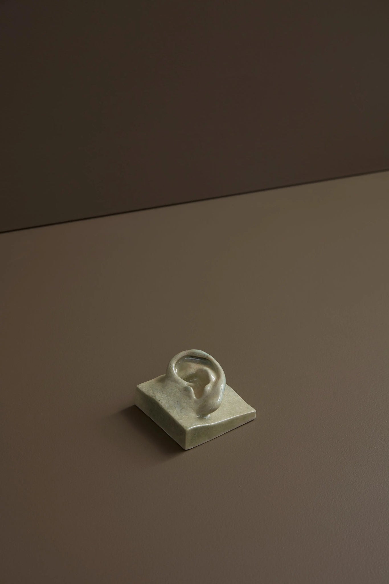 Fremstillet af glaseret hvid stentøjsler i farven CrystalGreen, er dette øre designet til at blive ophængt på væggen og fungerer lige så godt alene som det gør sammen med andre ansigtsfragmenter.
