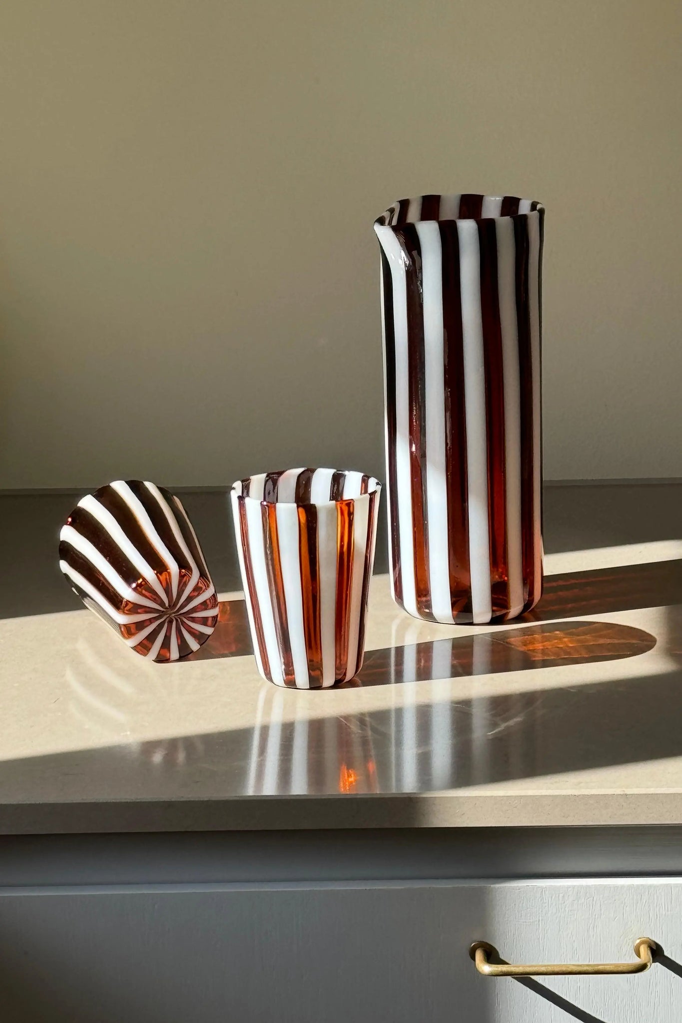 Håndblæst Murano Karaffel i glas i Gio Ponti Stil med Saltkaramel og Hvide Striber