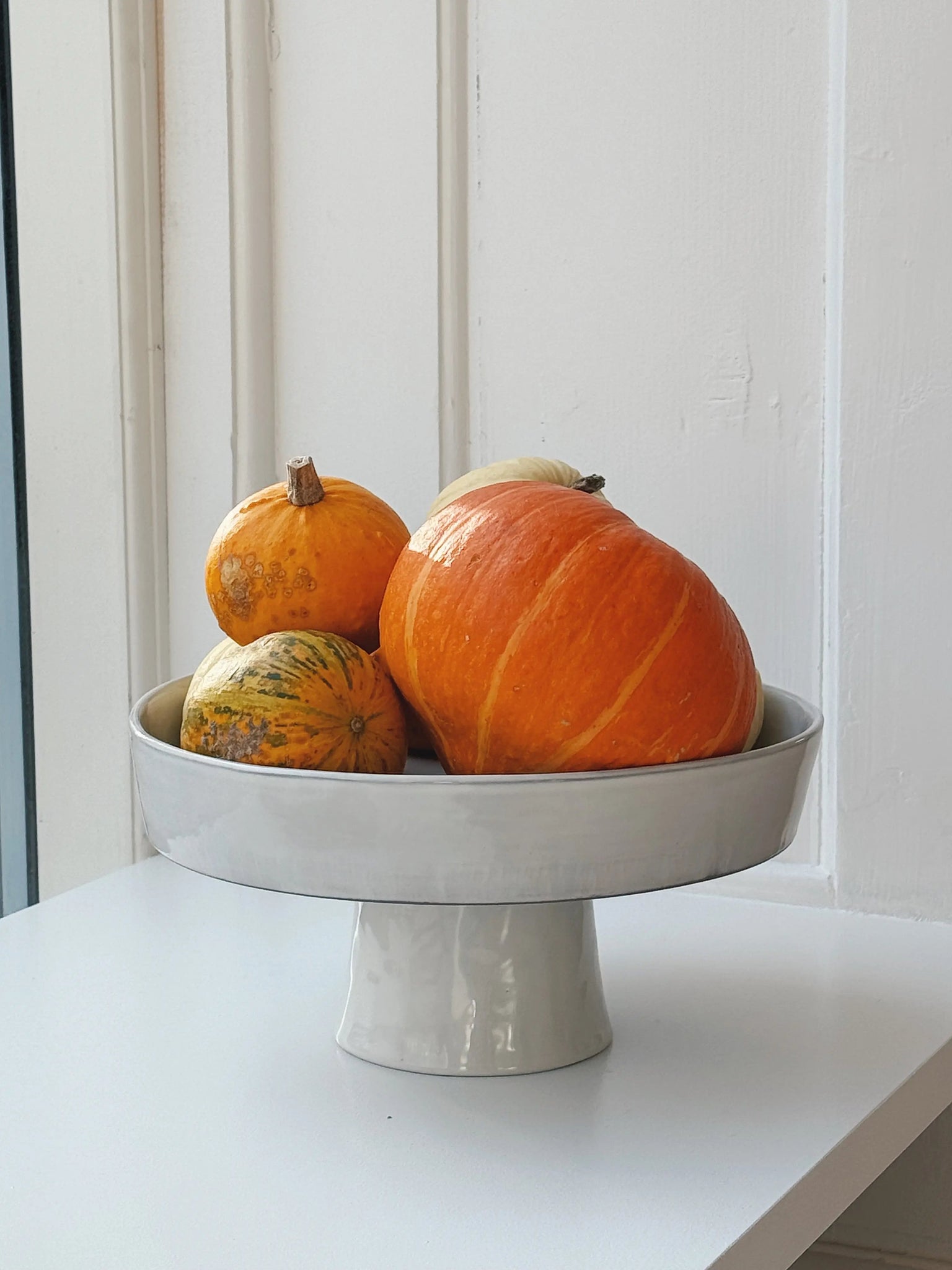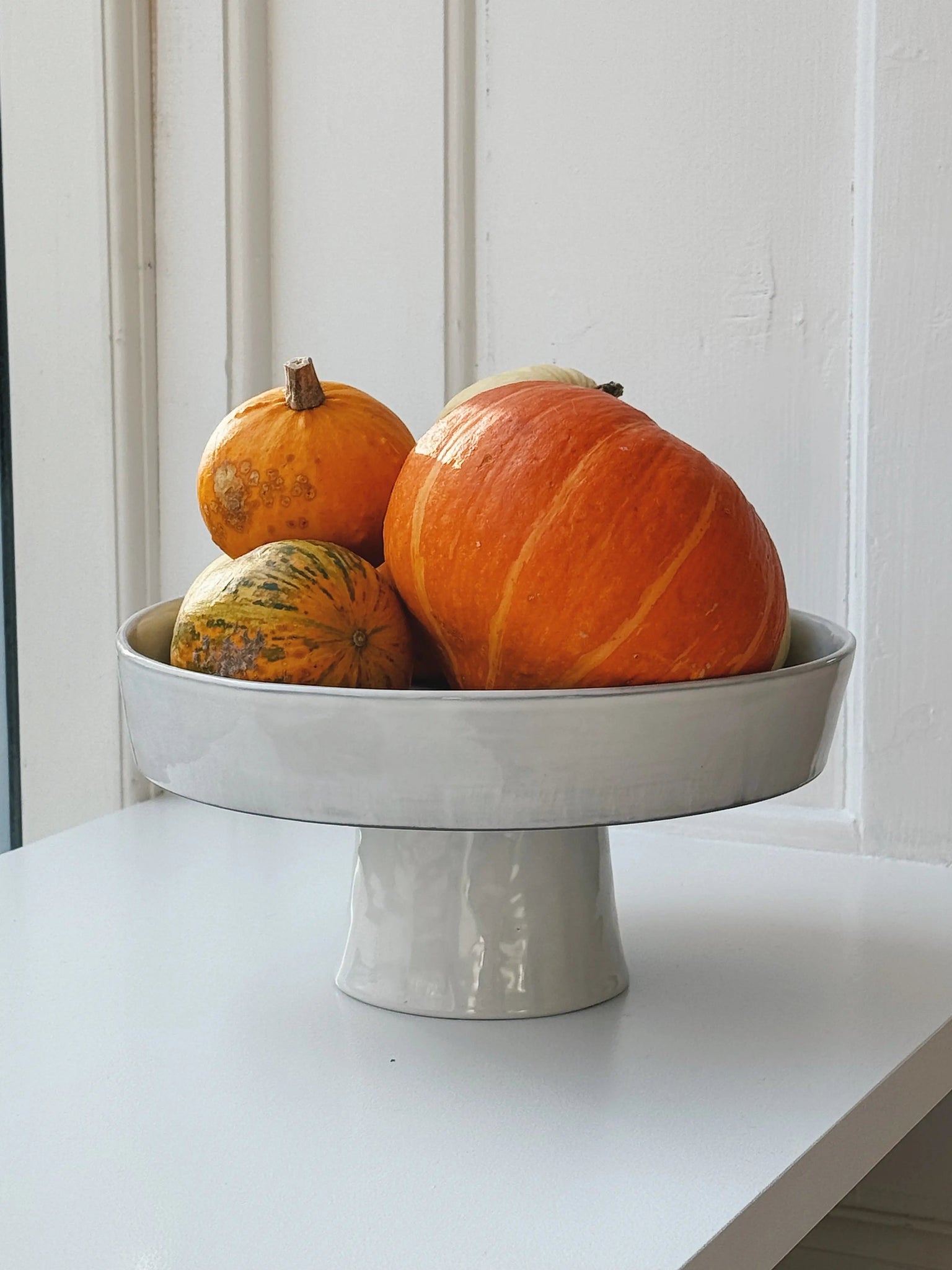 La Mère Serveringsfad / Dyb Tallerken med Fod L – Off White fra Serax, designet af Marie Michielssen, er et alsidigt stykke stentøj, der kan bruges som dyb tallerken, serveringsfad, frugtskål eller dekorativ skål. Den markante fod giver fadet et skulpturelt udtryk, mens den bløde off white-glasur tilføjer ro og tidløs elegance. Hver tallerken er håndlavet og derfor unik.