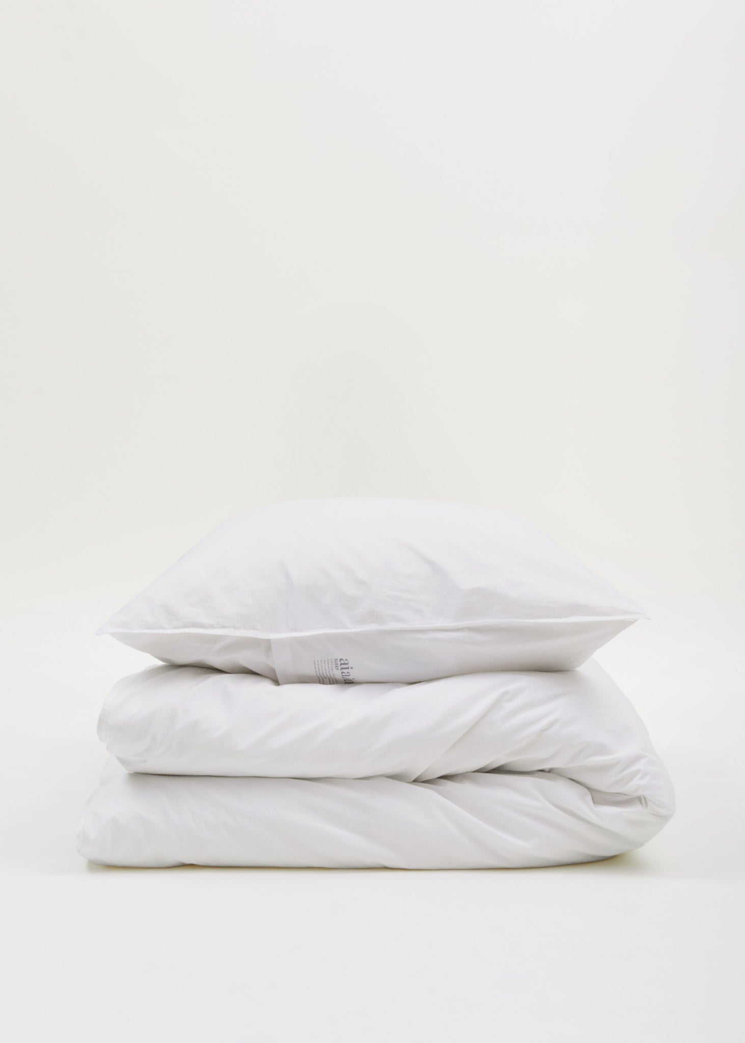 Aiayu sengetøj i farven White er fremstillet i 100% økologisk bomuldspoplin – et let, åndbart og slidstærkt materiale, der føles behageligt mod huden og bliver blødere vask efter vask. Den rene hvide nuance giver et klassisk og tidløst udtryk, der skaber ro og enkelhed i soveværelset.