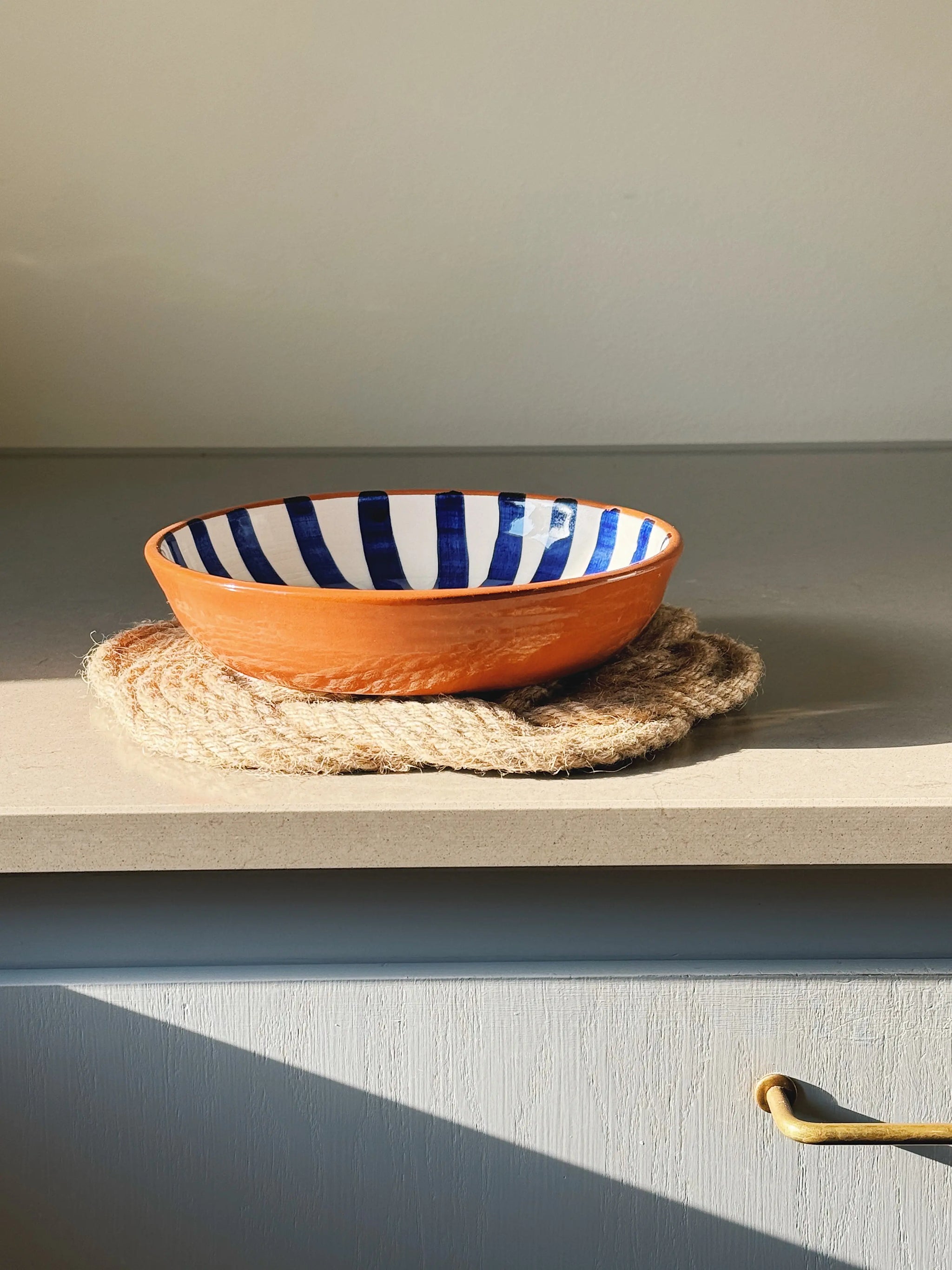 Håndvævet i Vietnam, forener den maritim elegance med praktisk funktionalitet. Bordskåneren i jute er perfekt til at beskytte dit bord mod varme gryder og pander eller som en dekorativ base til en blomsterkrukke, en tekande eller lys. Vores Ocean Plait Bordskåner bringer et strejf af havets ro og naturlige skønhed direkte til dit spisebord – og findes også som matchende coasters og dørmåtter.