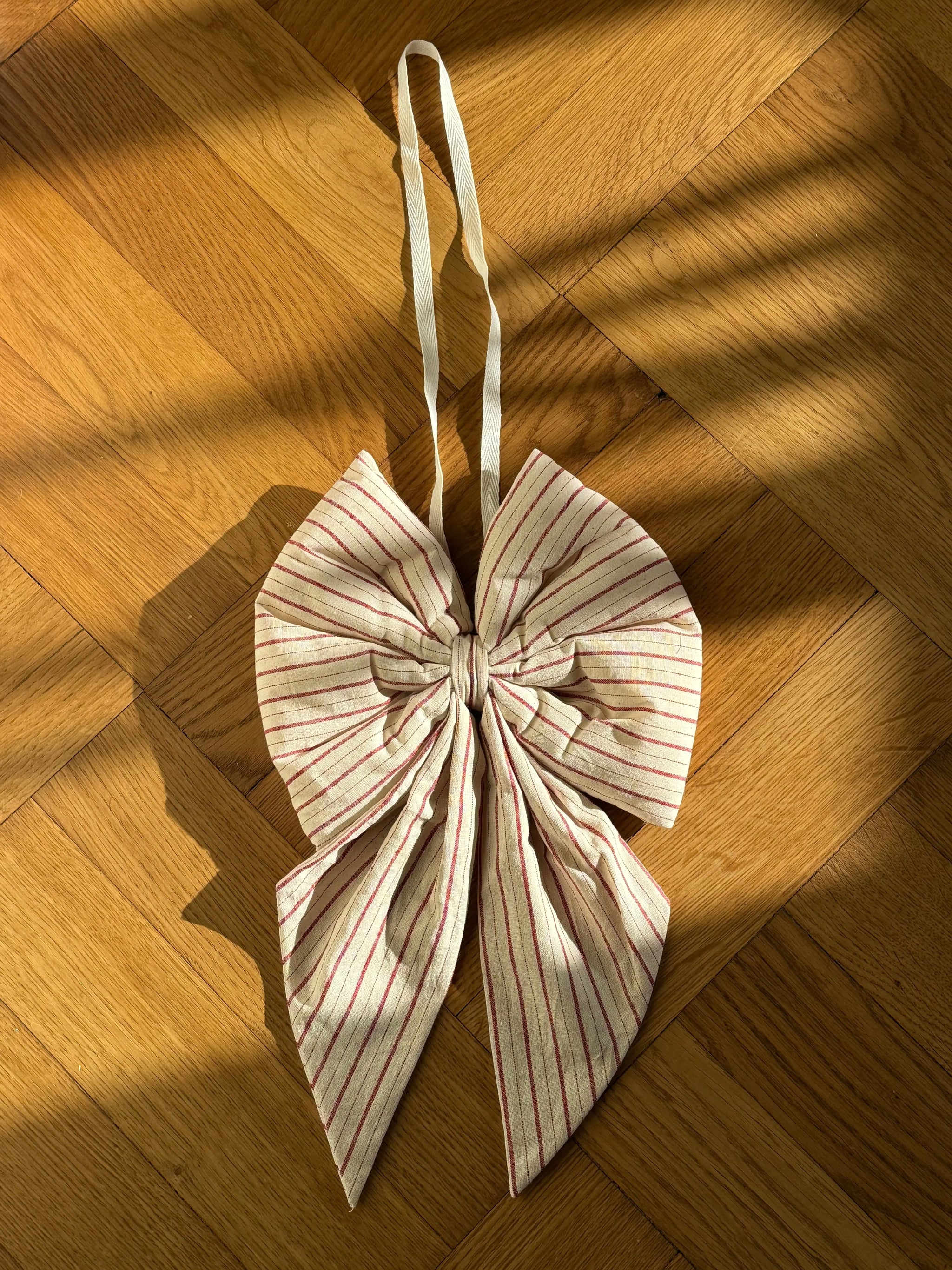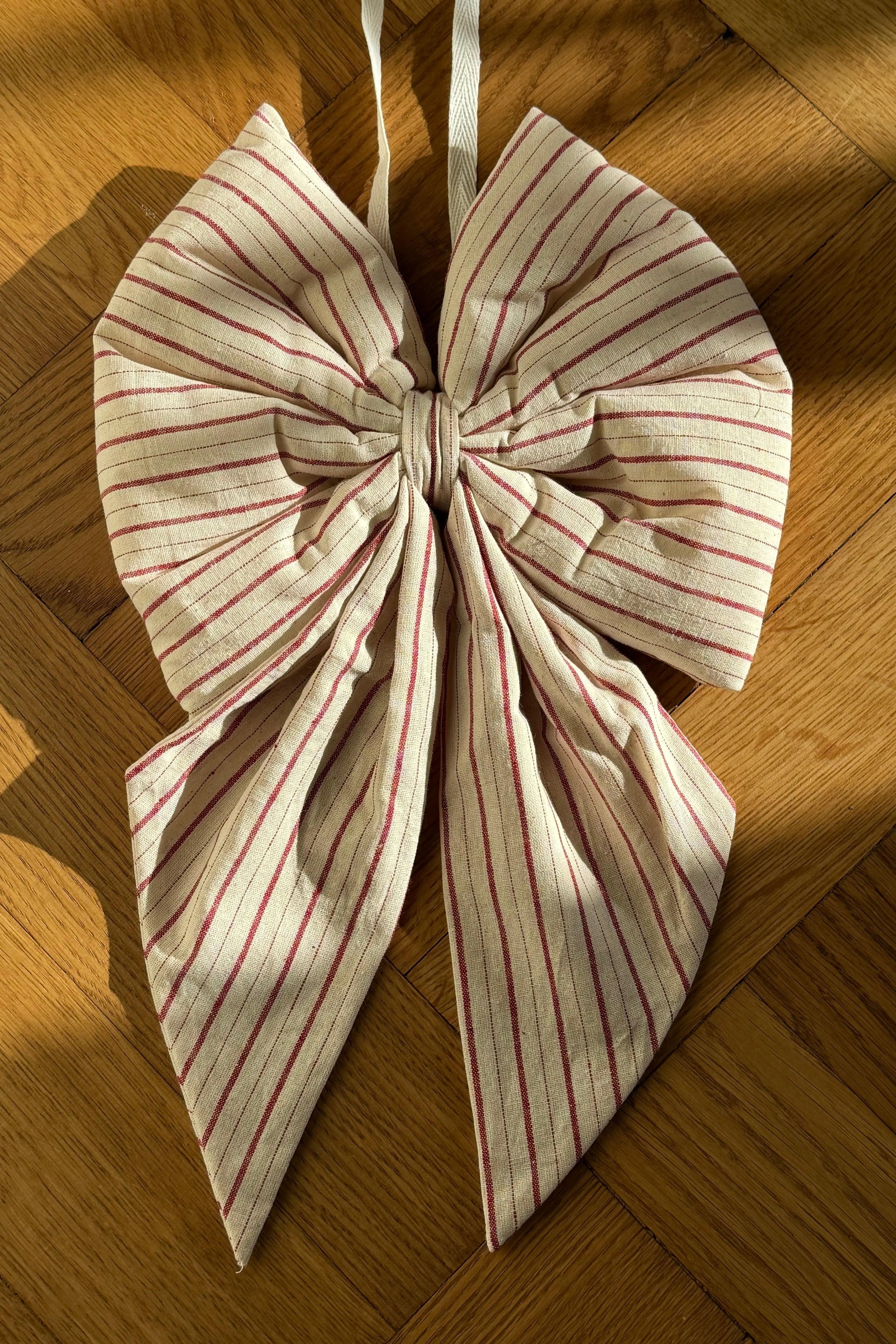 Håndlavet Jule Sløjfe med Ophæng – 20 x 30 cm i Rød/Hvid Stribet