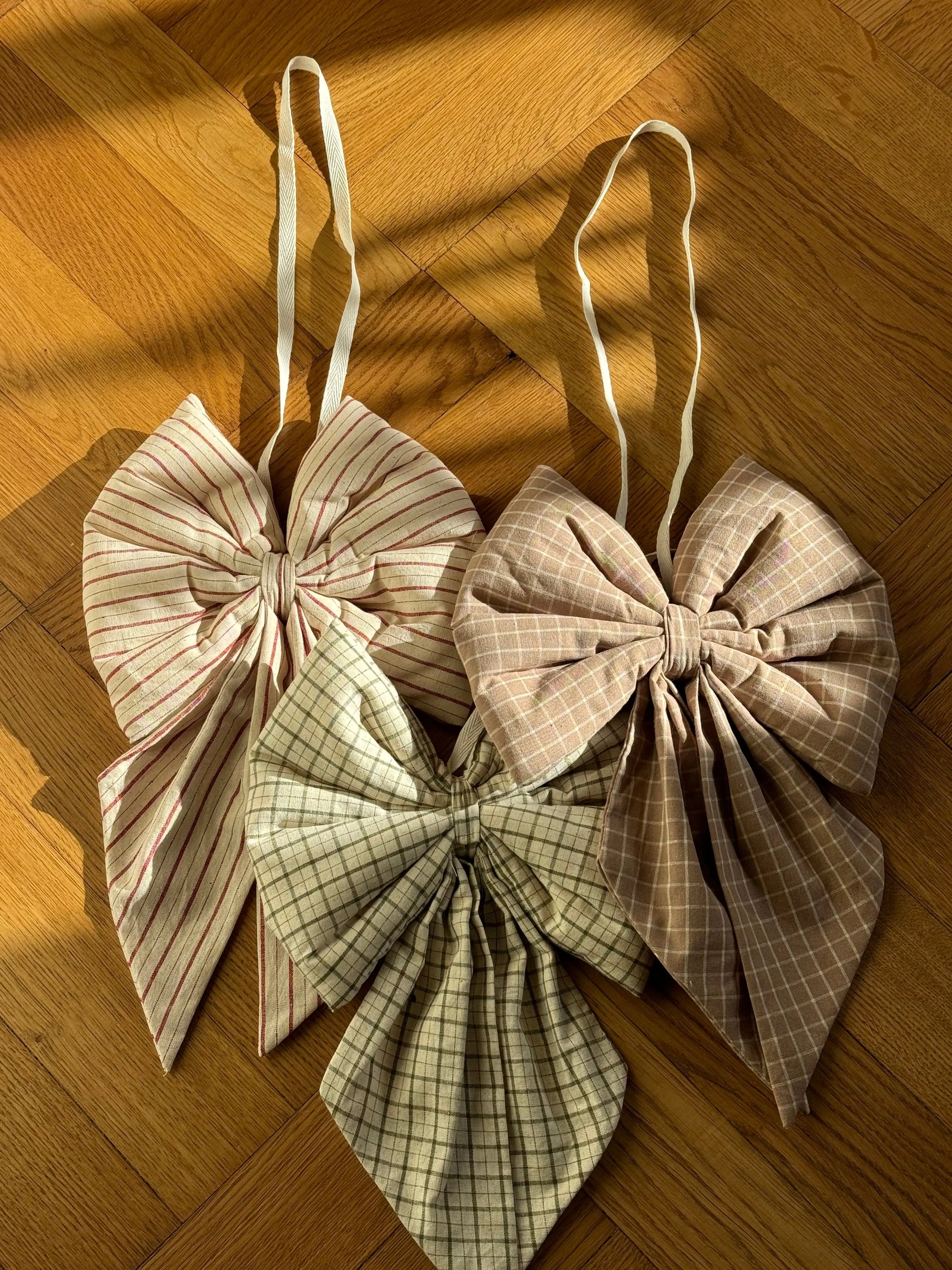 Tilføj et strejf af julecharme til dit hjem med denne smukke, håndlavede sløjfe i 100 % bomuld. Med en størrelse på 20 x 30 cm er sløjfen perfekt til at hænge op som en dekorativ detalje i juletiden. Den fås i tre stilfulde mønstre: rød/hvid stribet, hvid/grøn og brun/hvid, så du kan vælge den, der passer bedst til din juleindretning.