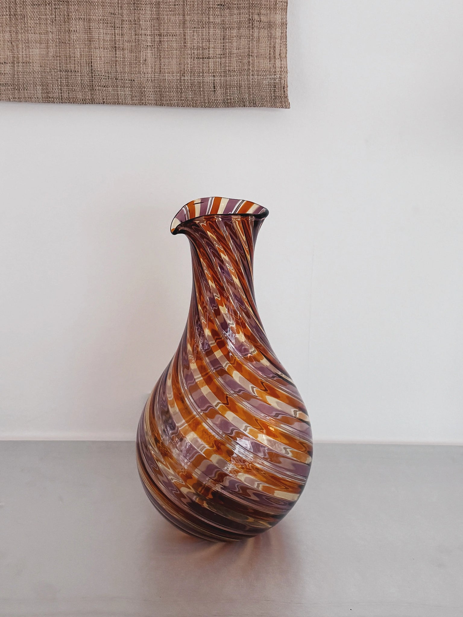 Håndblæst Murano Karaffel i rav, rosa og klart glas med swirlmønster