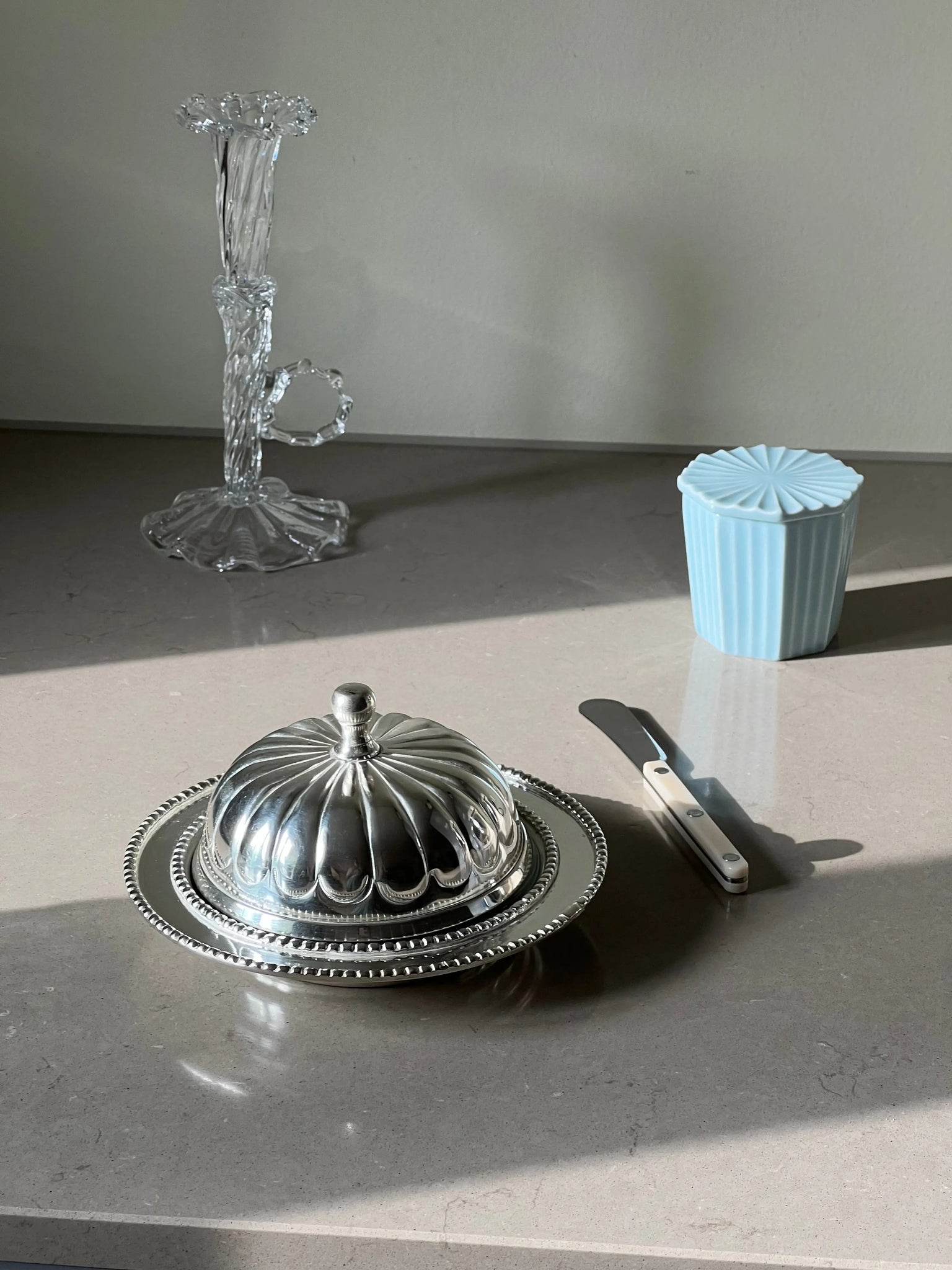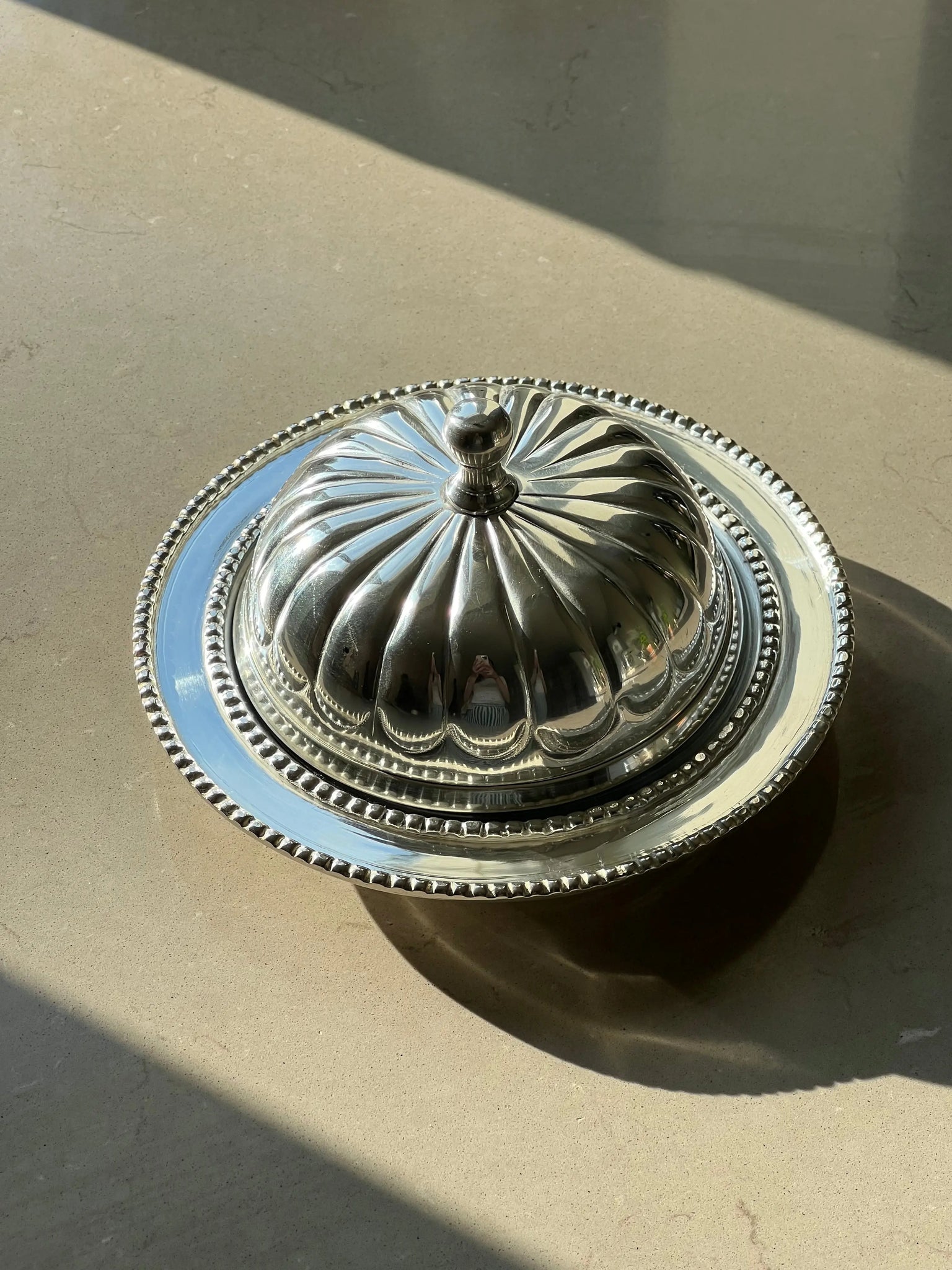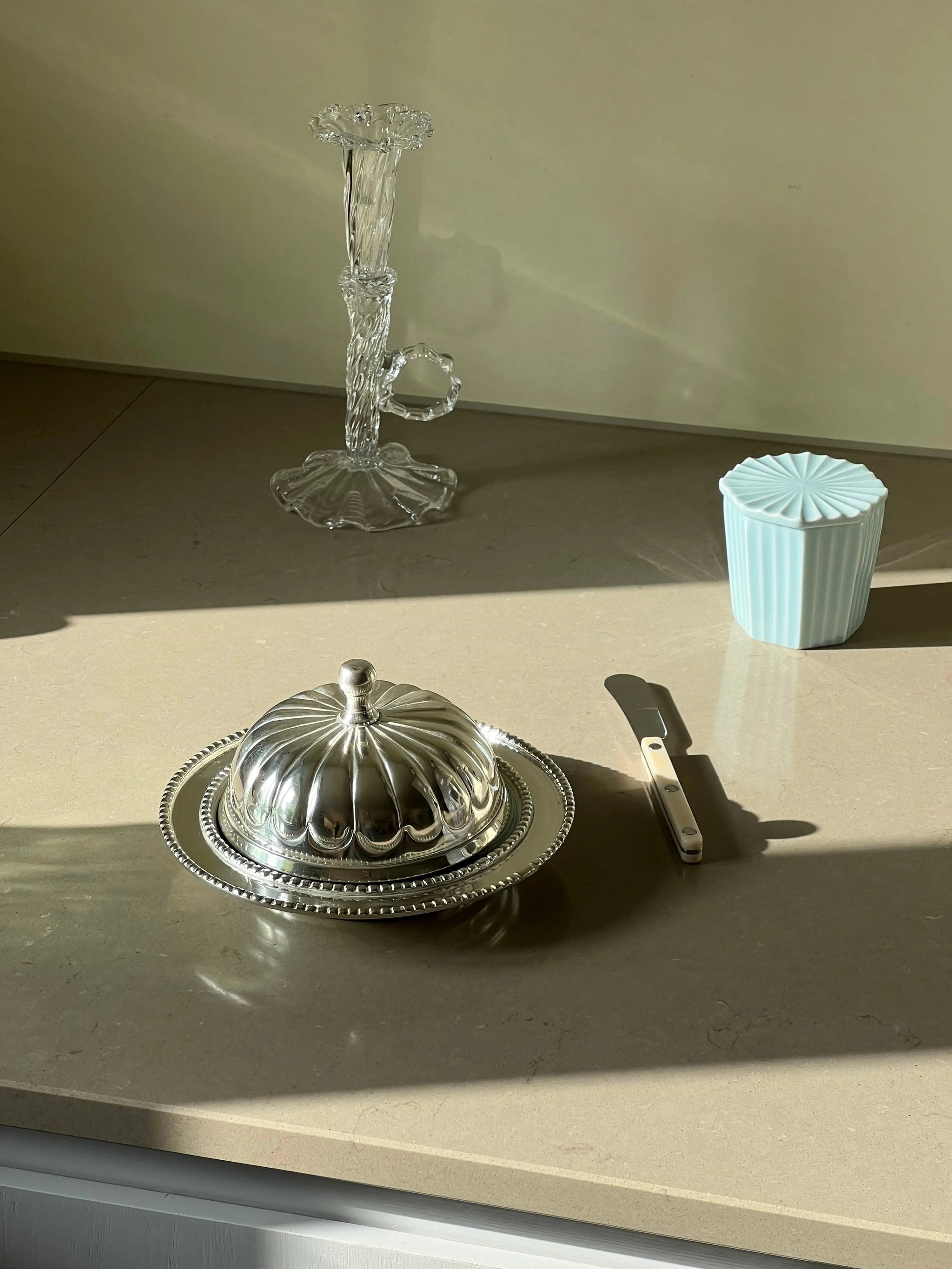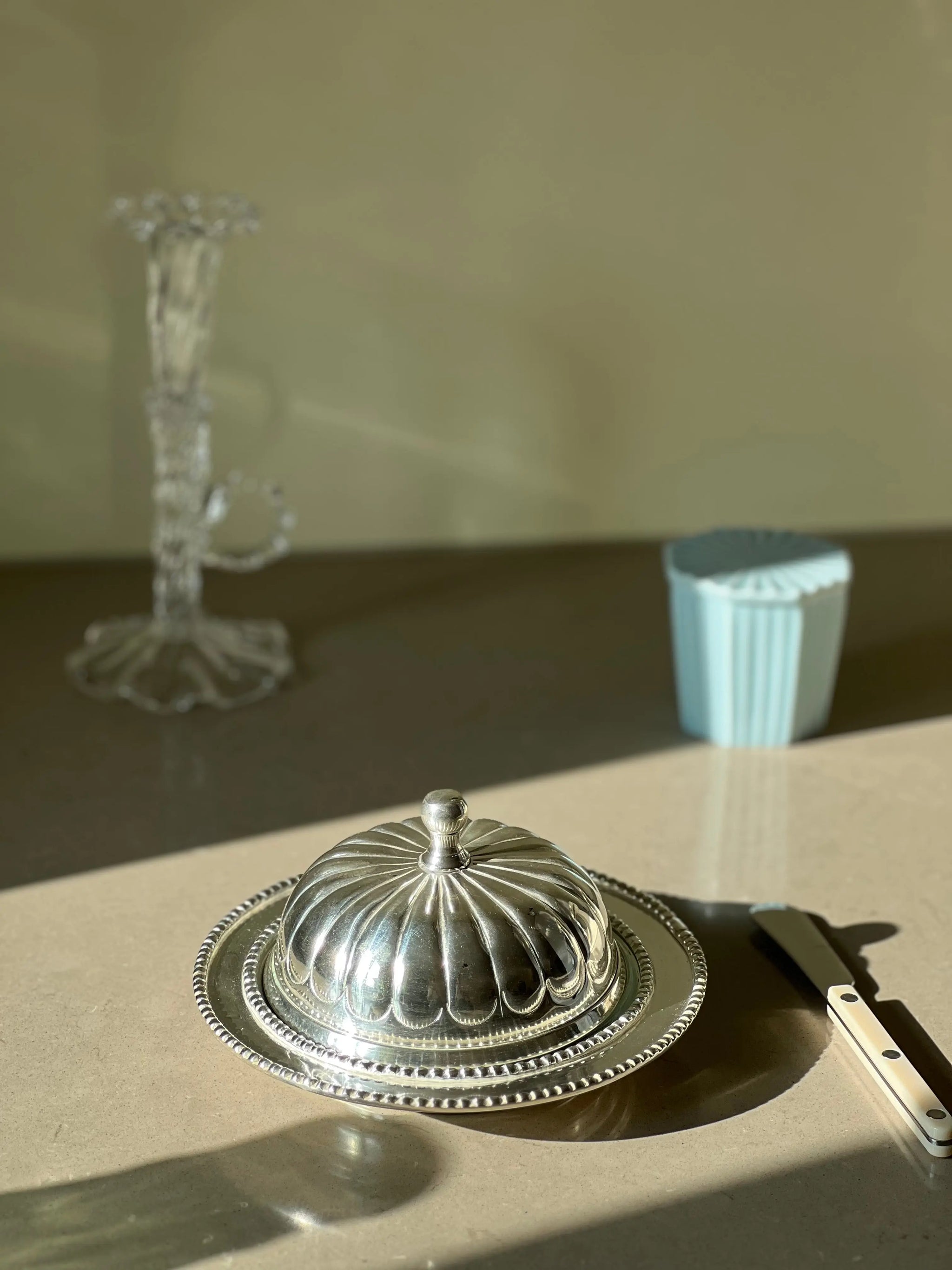 Antik-inspireret Smørskål med låg i sølvbelagt stål