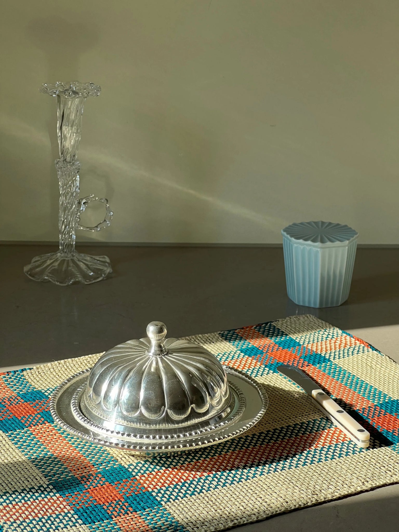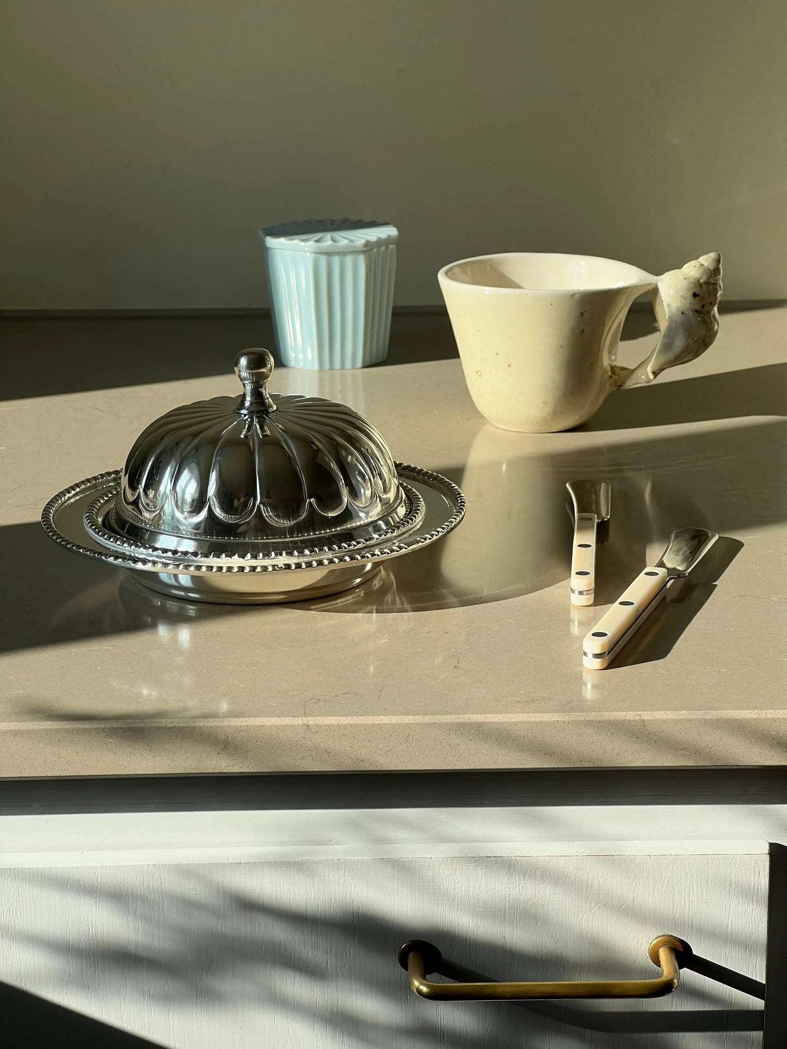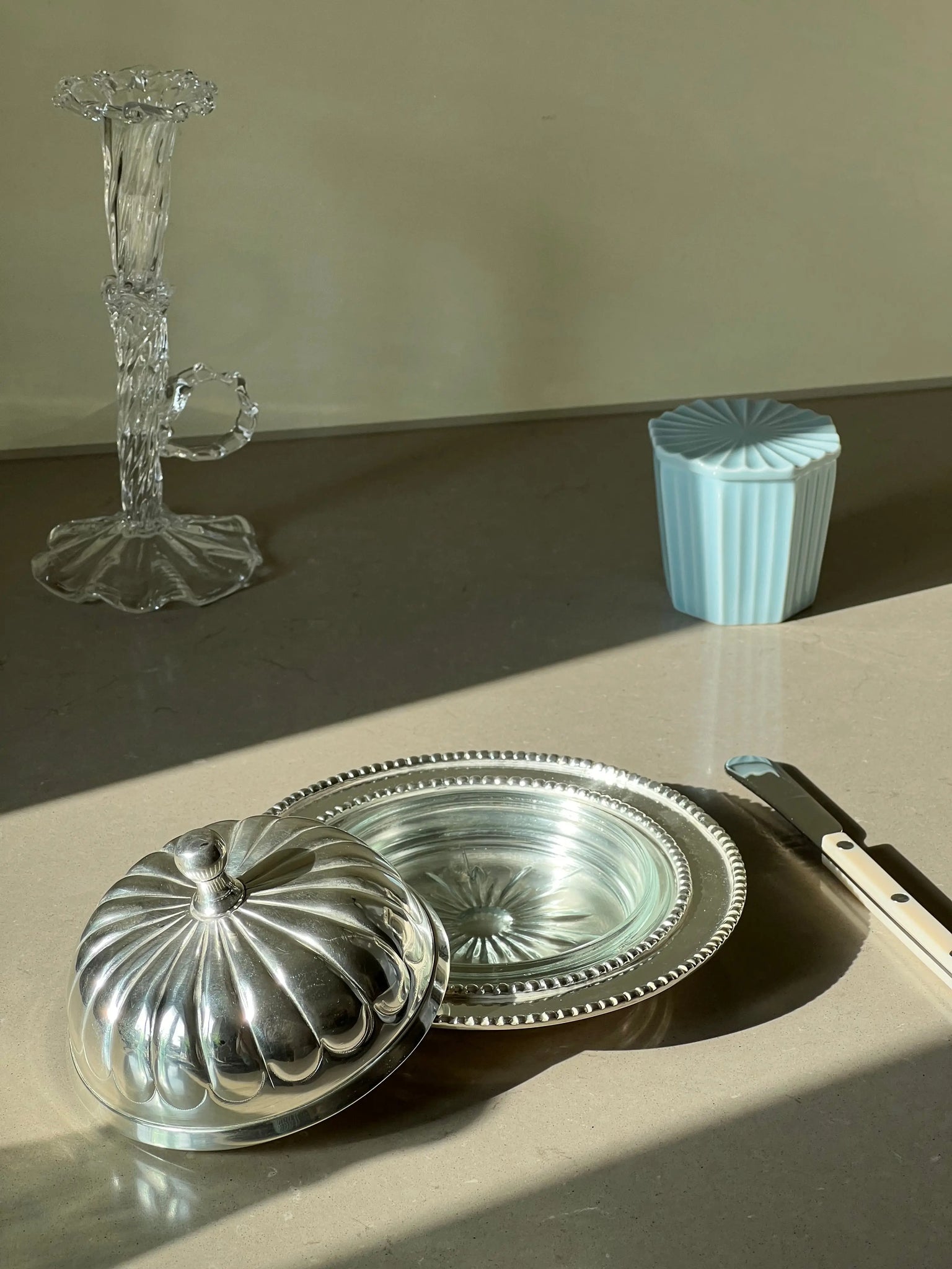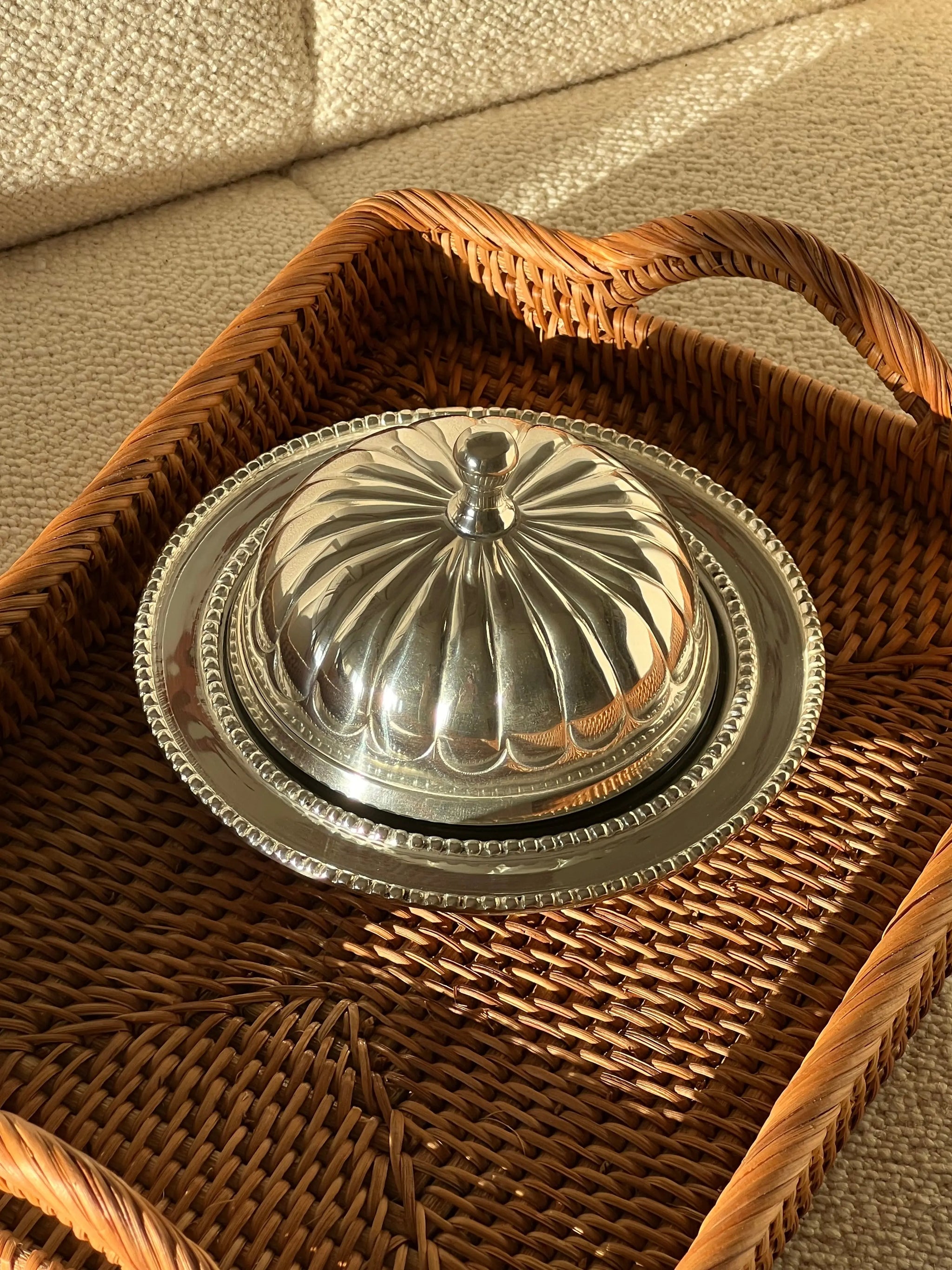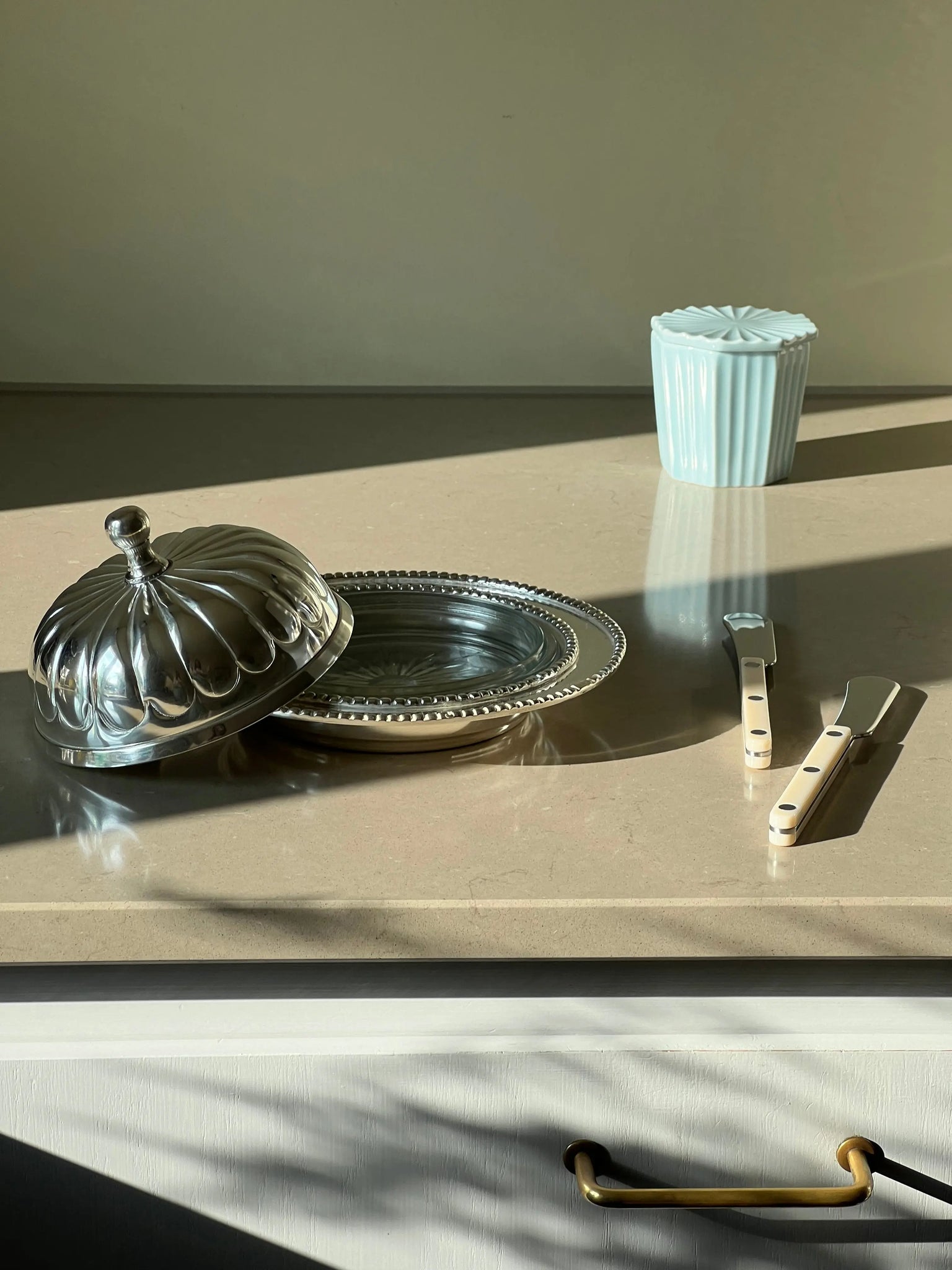 Antik-inspireret Smørskål med låg i sølvbelagt stål