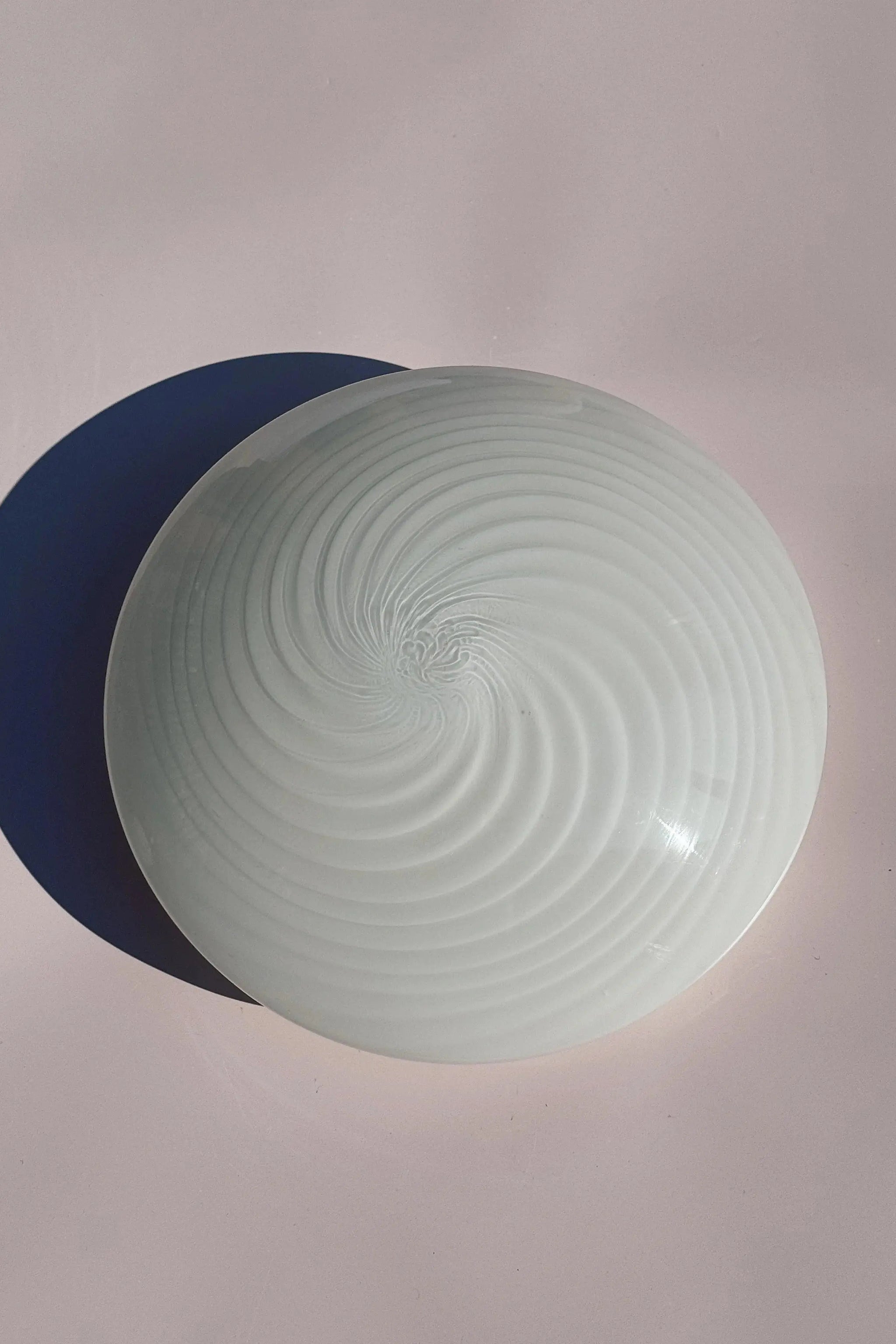 Vintage Murano plafondlampe i hvidt swirl glas | Loft-/væglampe Ø30 cm