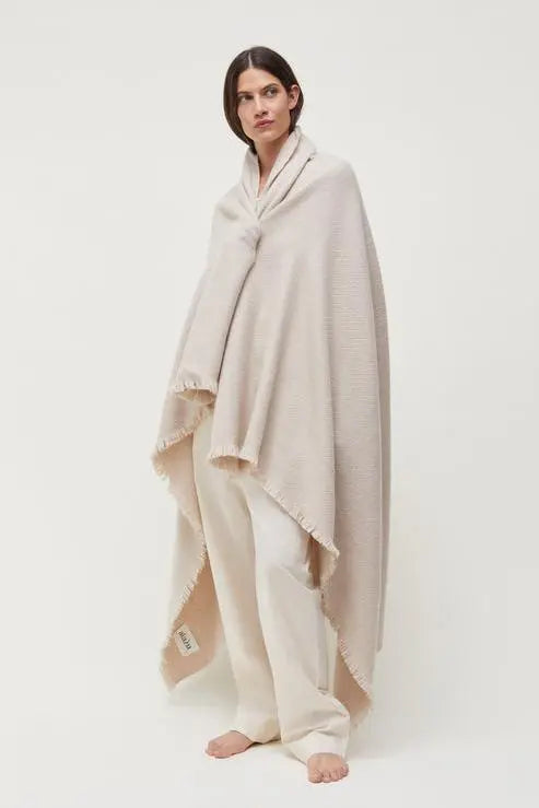 Discover Aiayu's Haya throw in Aura – an elegant off-white shade that combines timeless design with functionality. This throw is created with beautiful fringes and a soft, tightly knitted texture, adorned with an elegant jacquard pattern.