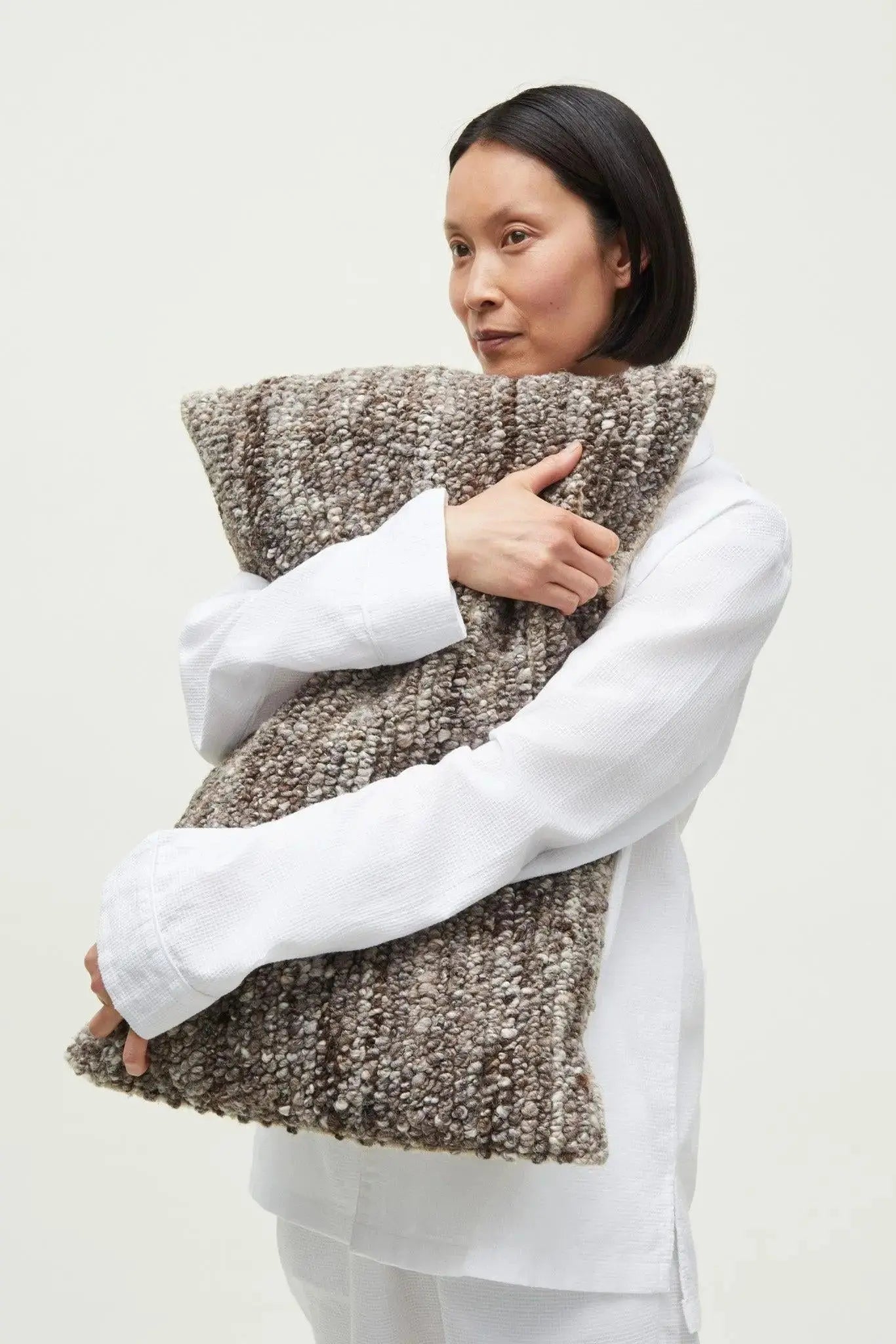 Bring understated elegance and warmth into your home with the Texture Nepal cushion by Danish brand Aiayu, here in the beautiful Mix Nature shade. This rectangular 40x60 cm cushion is handwoven in Tibetan sheep wool, carefully sheared for a uniform, soft surface. The wool is sourced directly from Tibet and skillfully processed in Nepal. The subtle grey tones exude calm and sophistication.