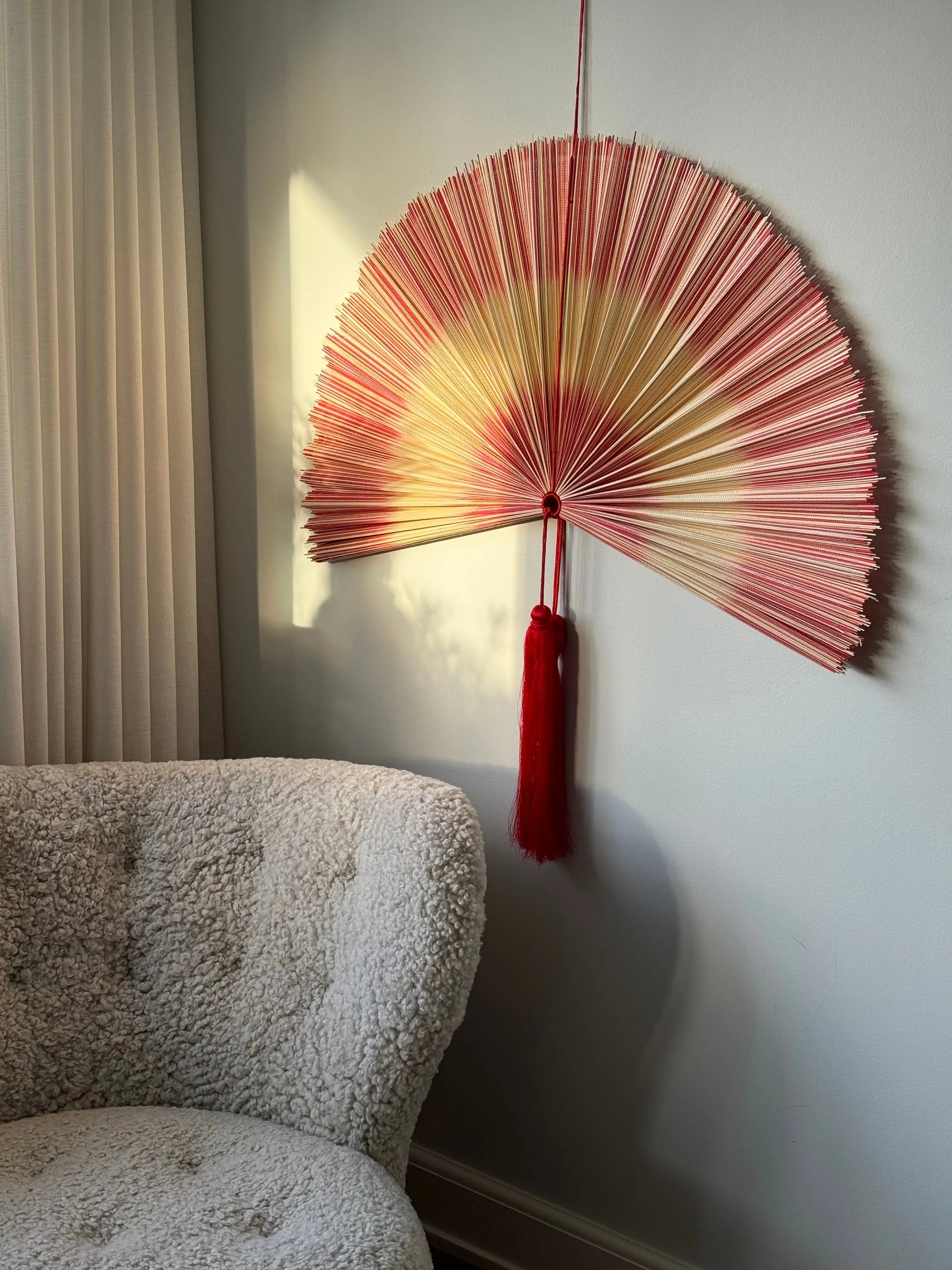 The bamboo fan adds a personal and cozy atmosphere to your home. It is ideal for hanging above the sofa, bed or a bookcase and acts as a unique design element in any room. Explore our wide range of unique bamboo fans here .