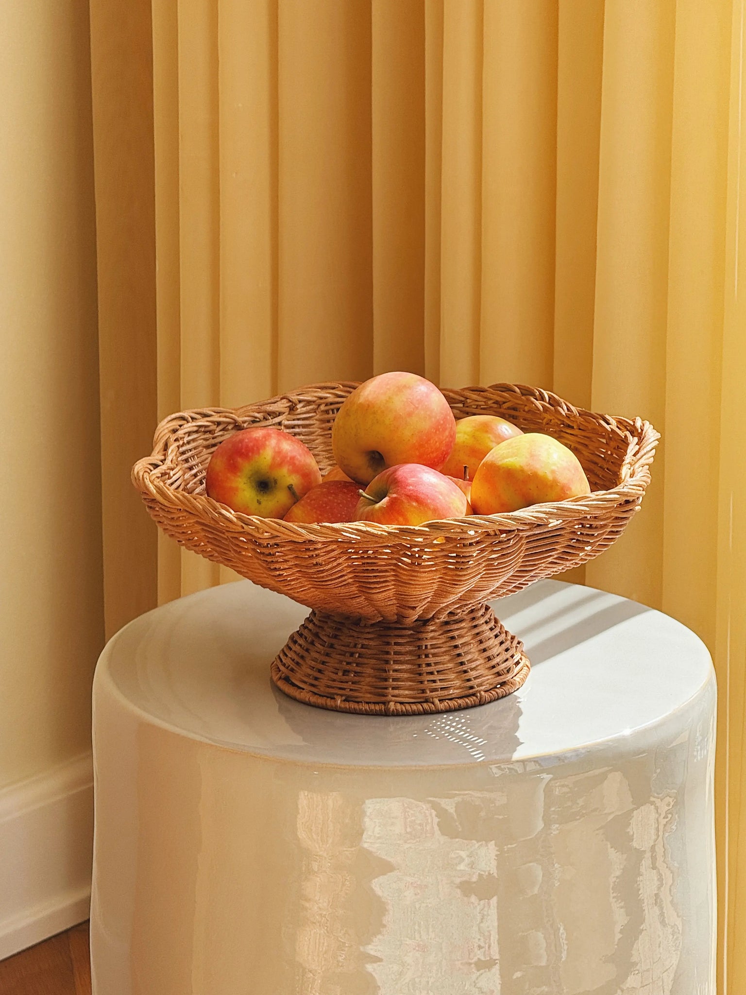 Rattan Pedestal Bowl – Handwoven Fruit Basket in Two Sizes