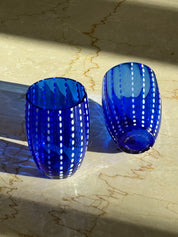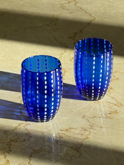 Zafferano - Pearl water glass | Blue dots - Set of 2