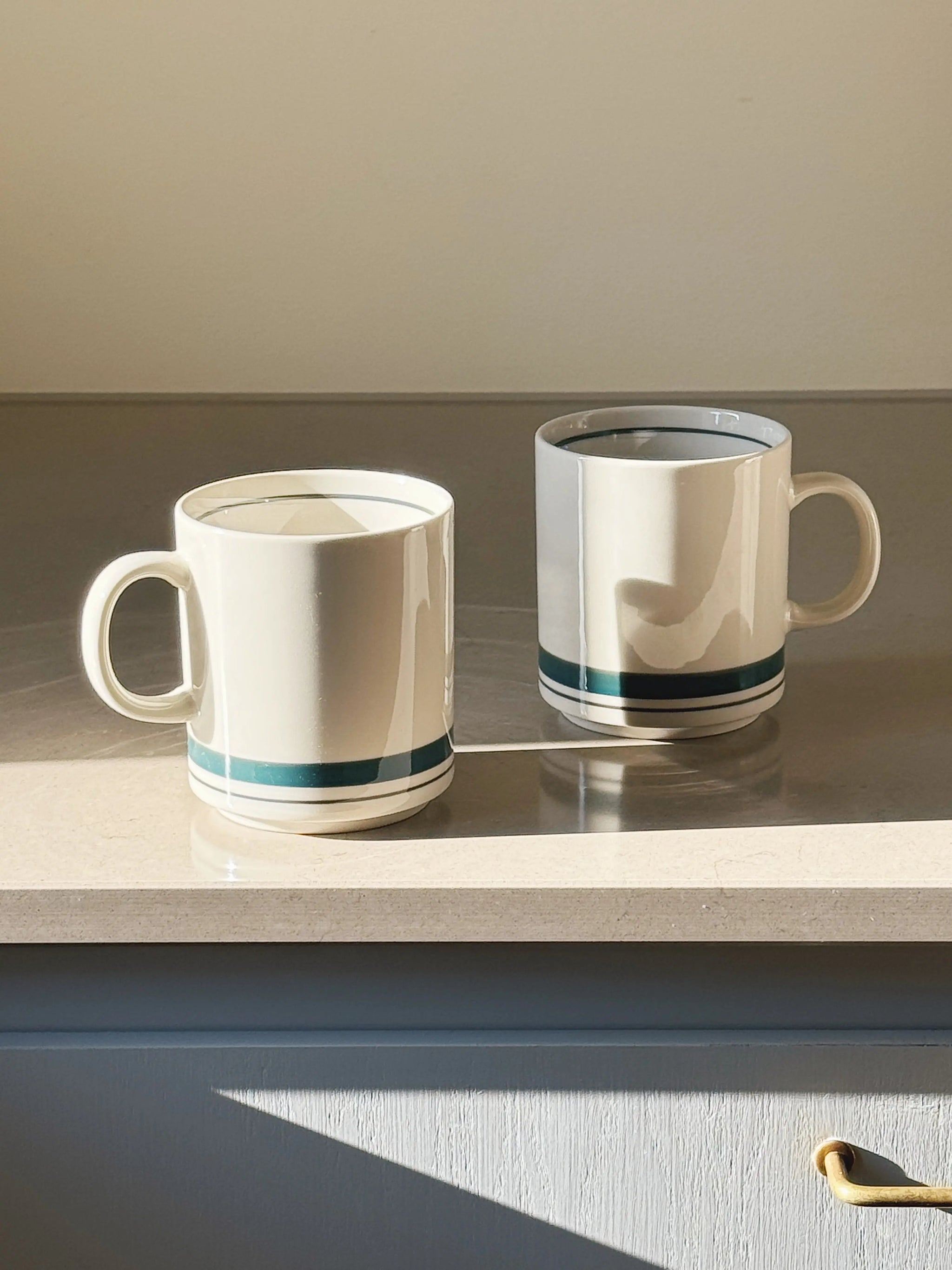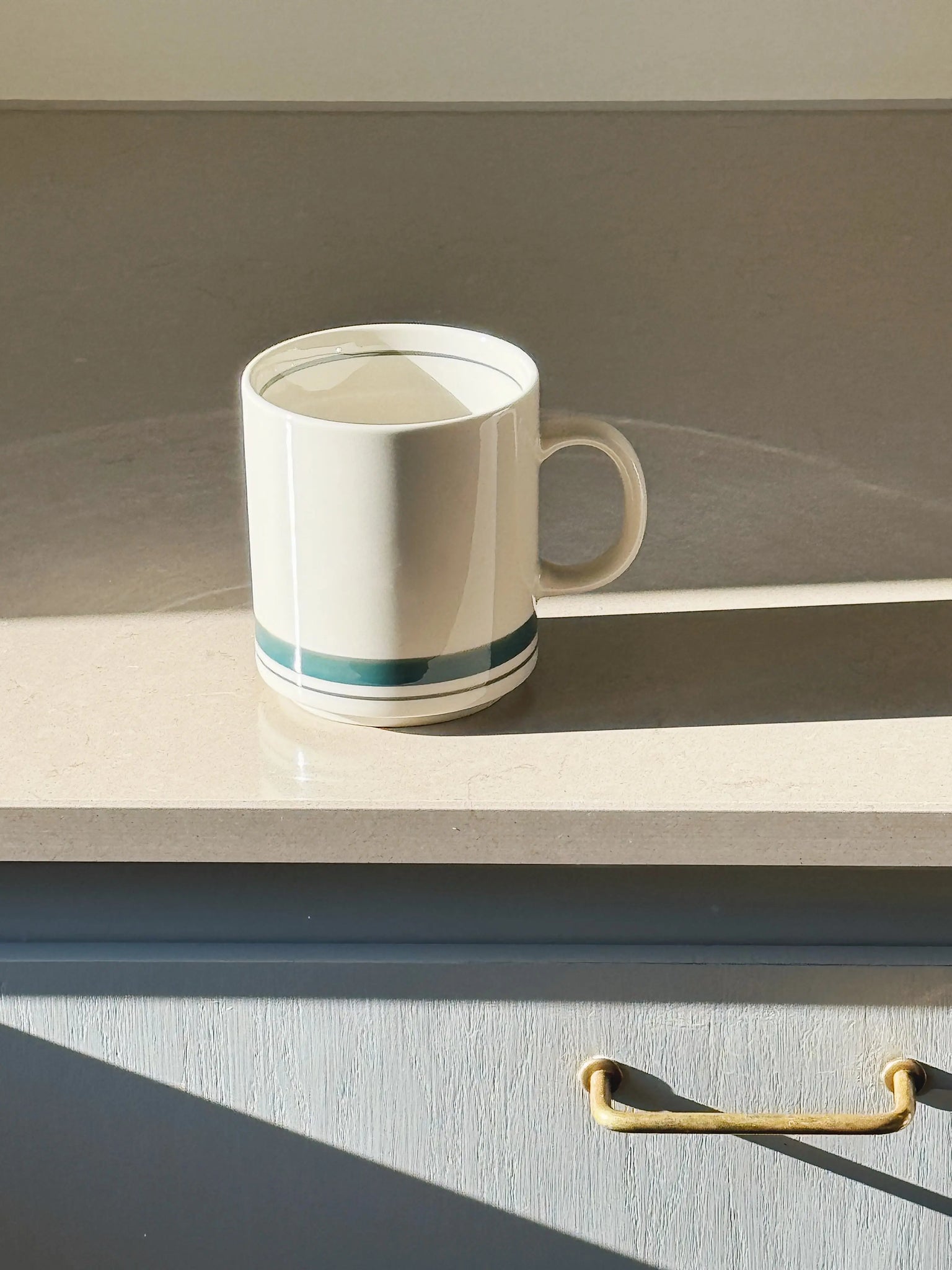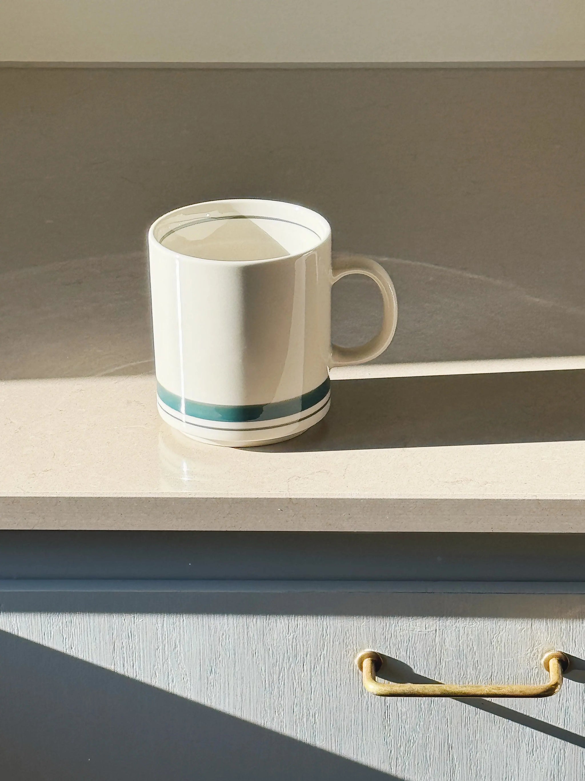 Japanese Ceramic Mug – White with Green Stripes | 205 ml