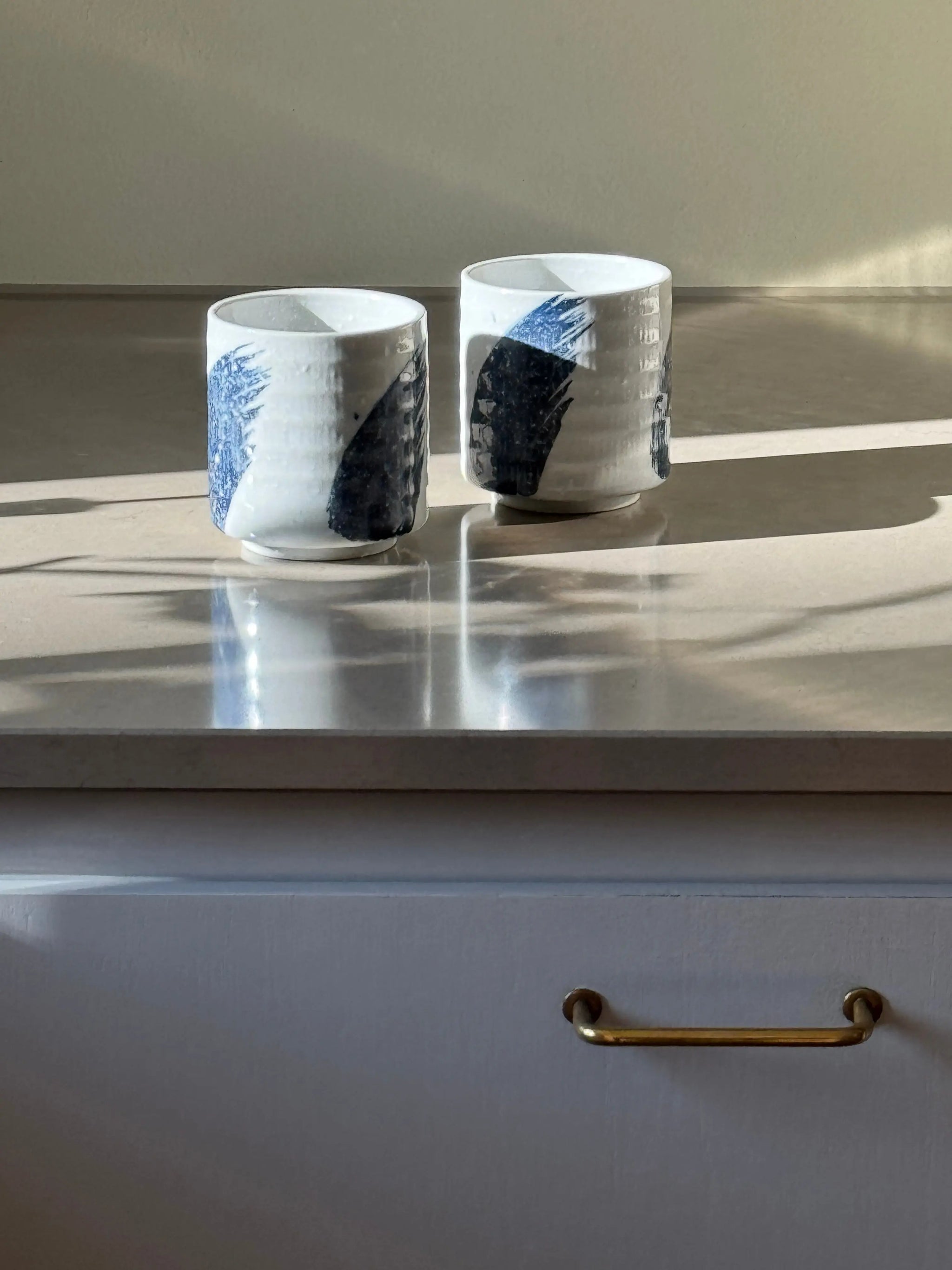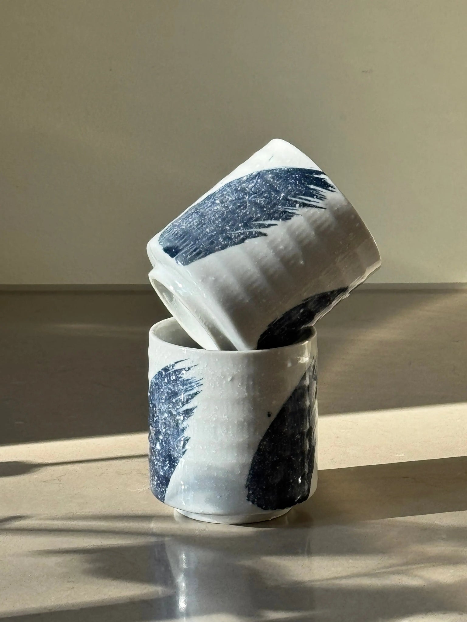 Japanese ceramic teacup – hand-painted blue brushstrokes