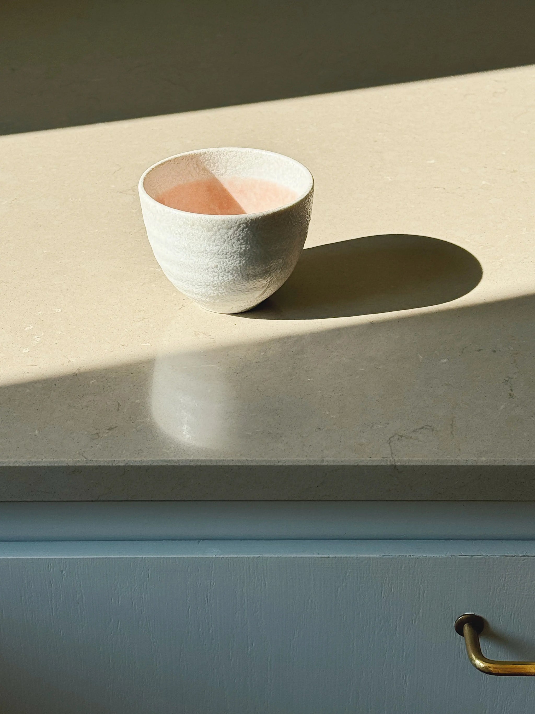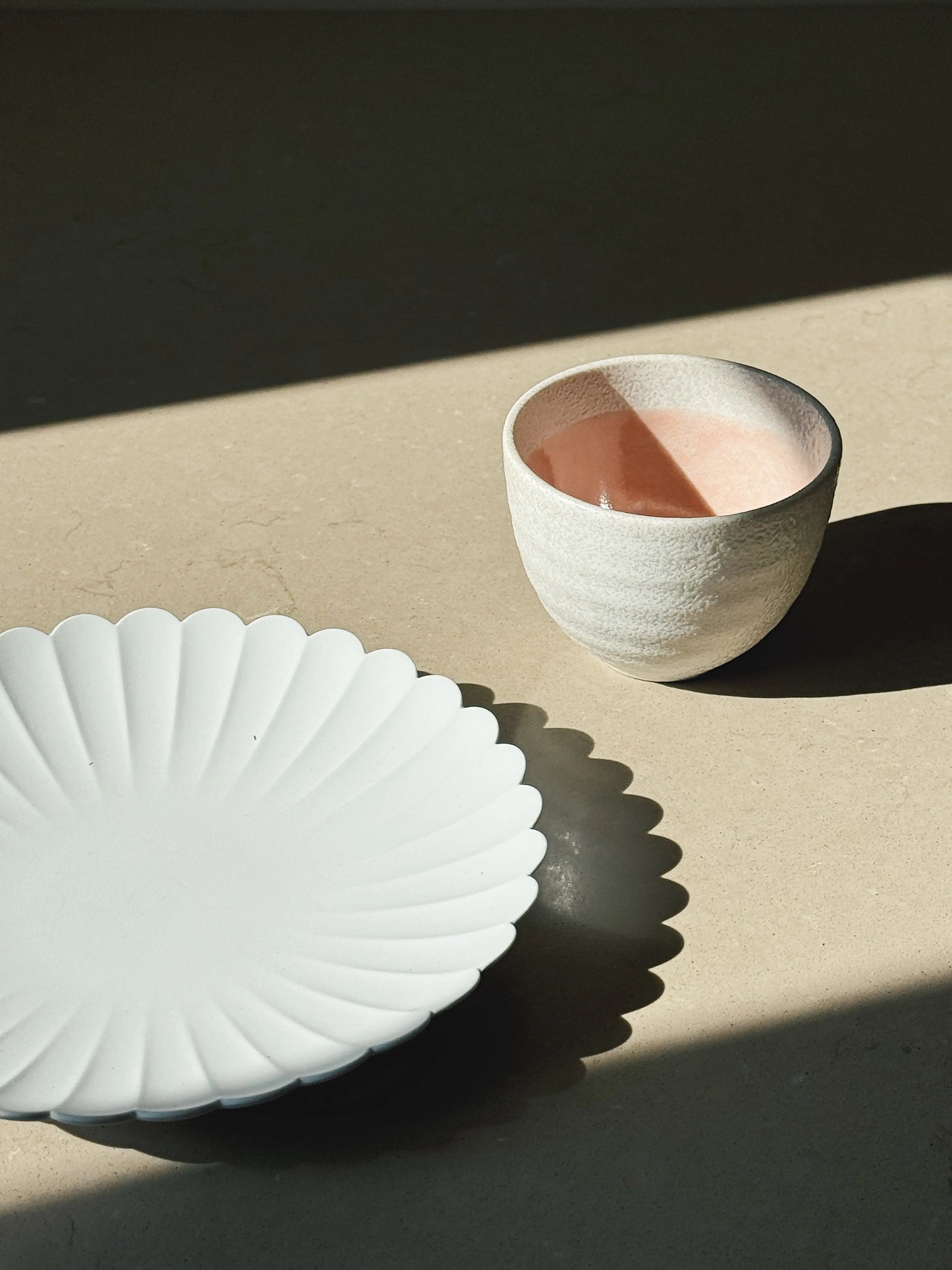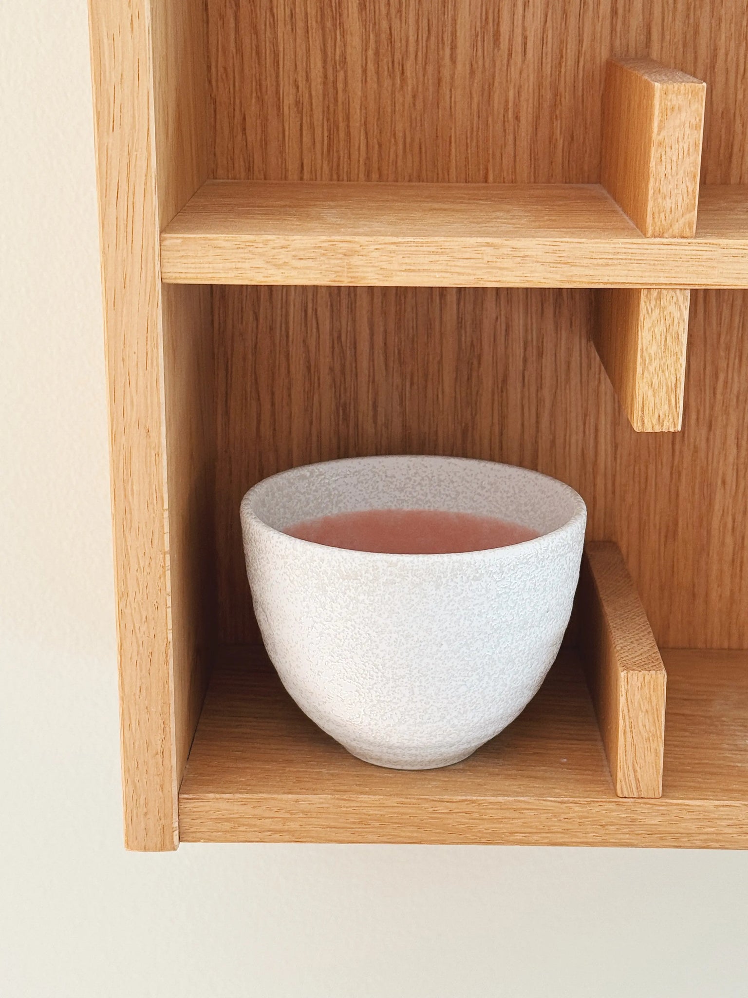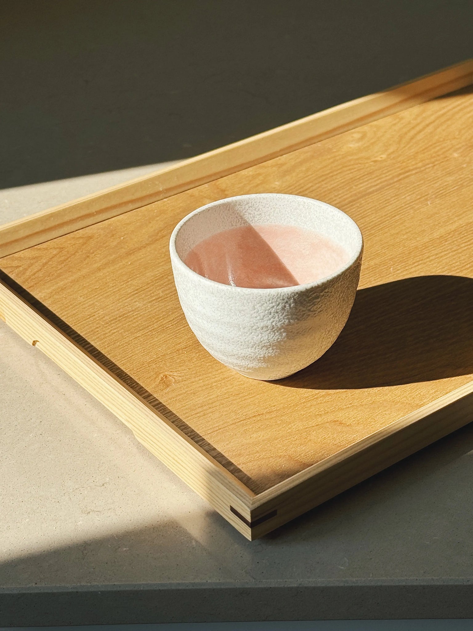 A delicate Japanese teacup without a handle, featuring a matte white exterior and a soft pink glazed interior. The clean, rounded form fits comfortably in the hand and creates a calm, minimal aesthetic at the table. Ideal for green tea, herbal tea, or any warm beverage in smaller portions.