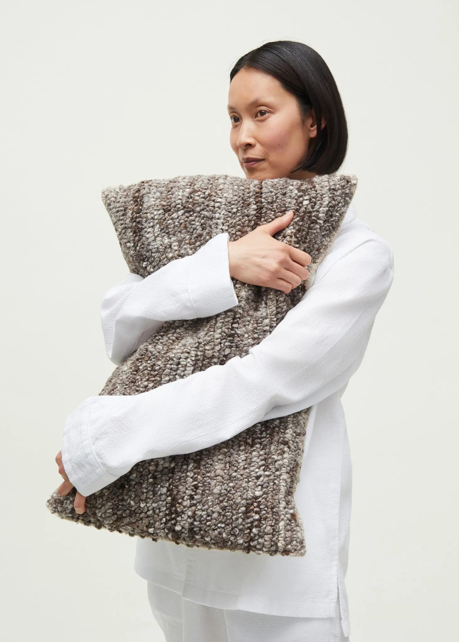 Bring understated elegance and warmth into your home with the Texture Nepal cushion by Danish brand Aiayu, here in the beautiful Mix Nature shade. This rectangular 40x60 cm cushion is handwoven in Tibetan sheep wool, carefully sheared for a uniform, soft surface. The wool is sourced directly from Tibet and skillfully processed in Nepal. The subtle grey tones exude calm and sophistication.