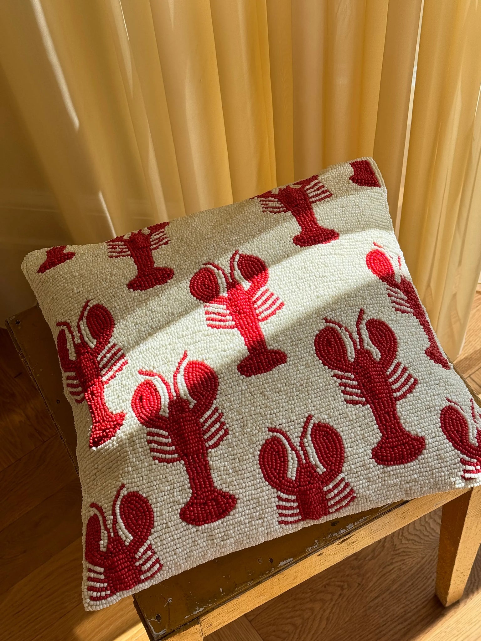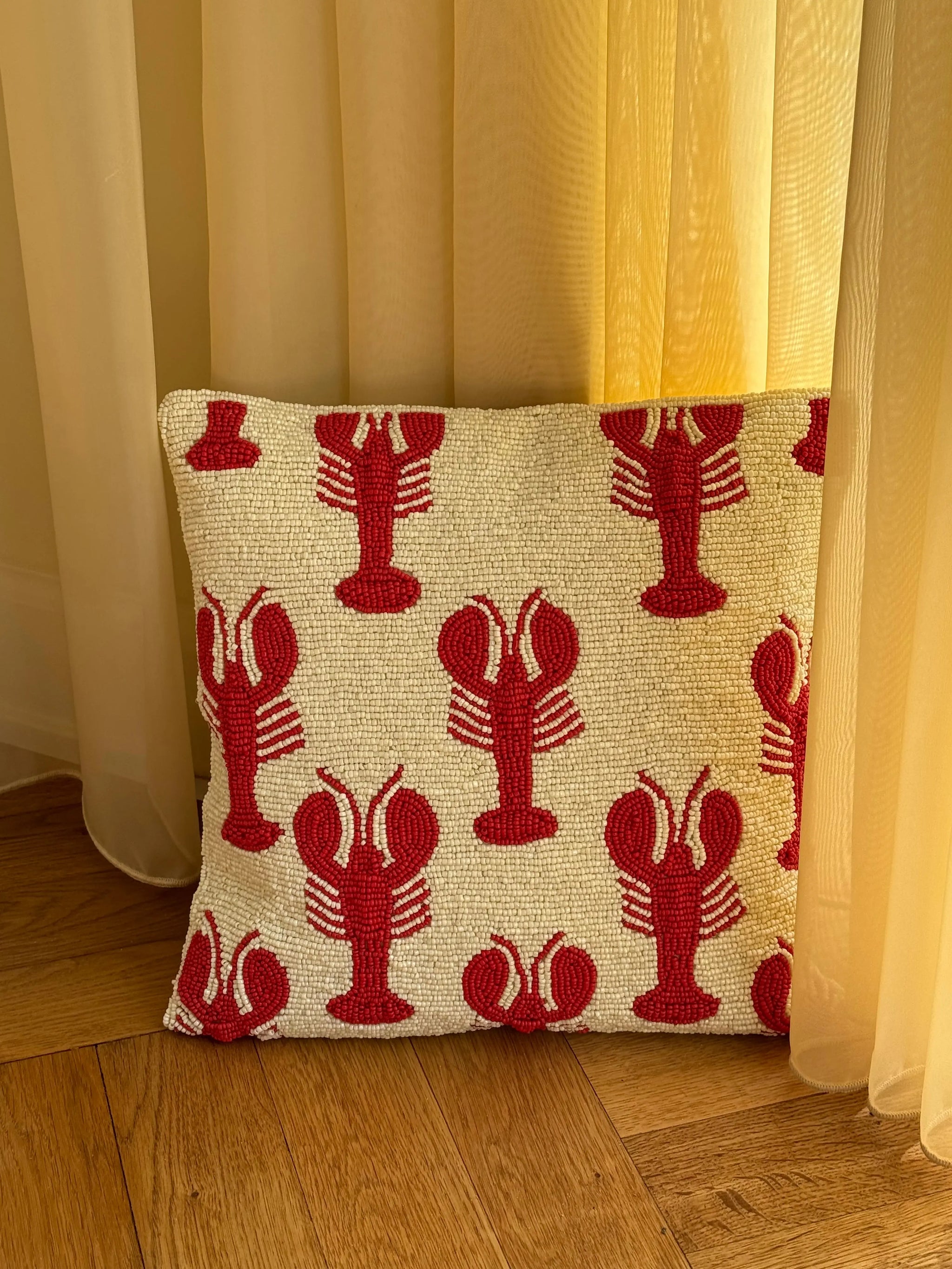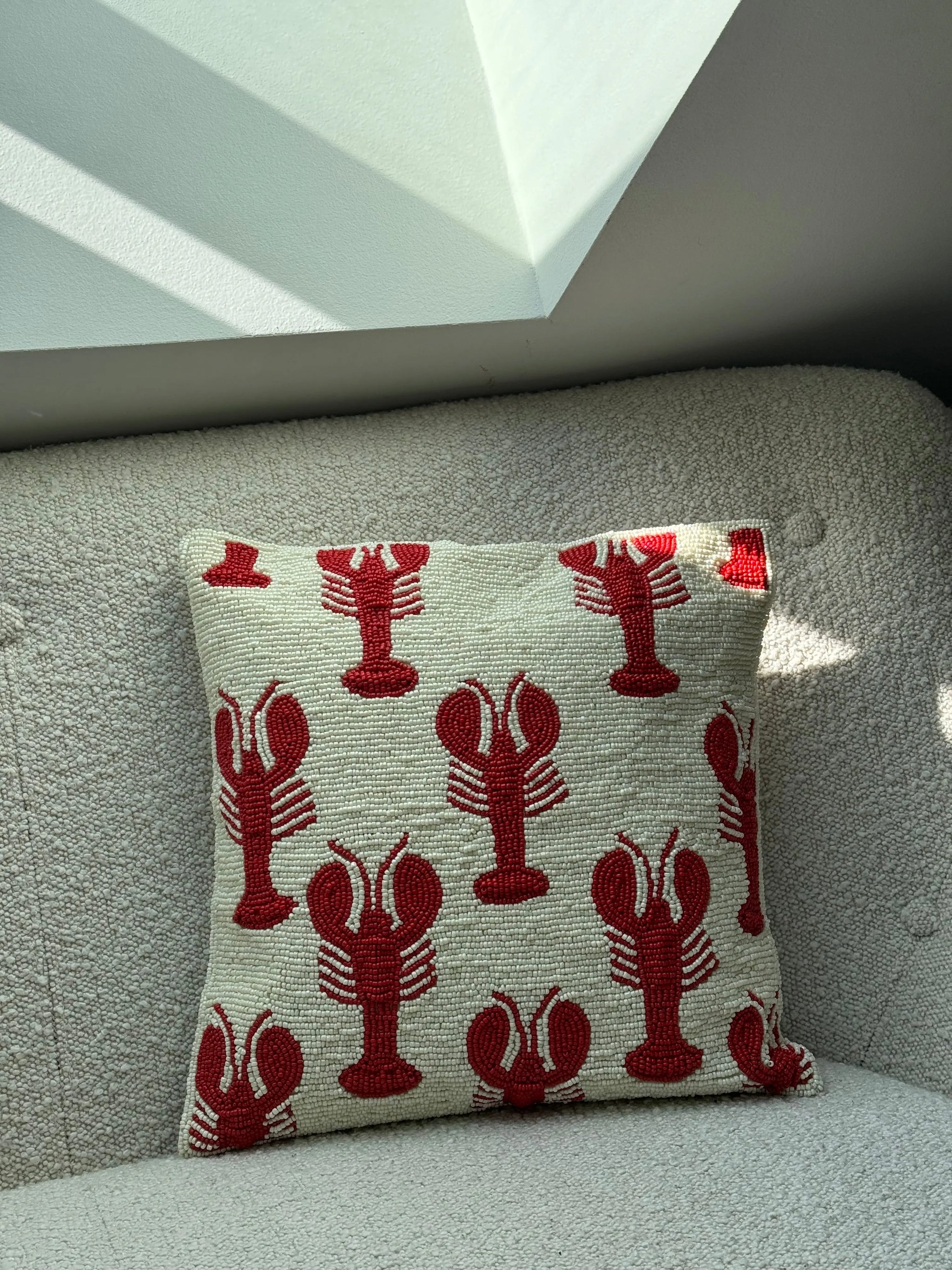 Pearl Cushion with Red Lobsters | 35 x 35 cm