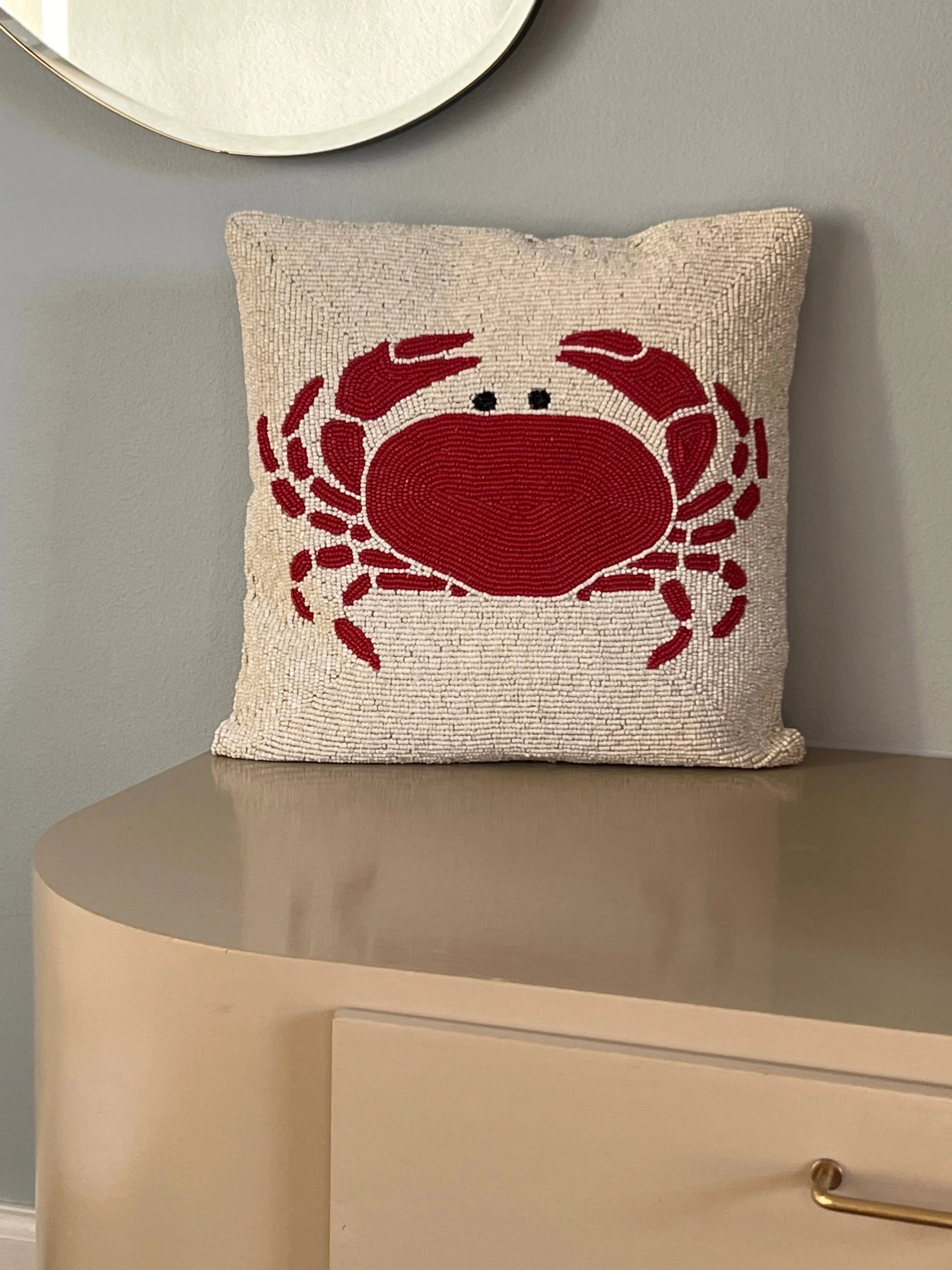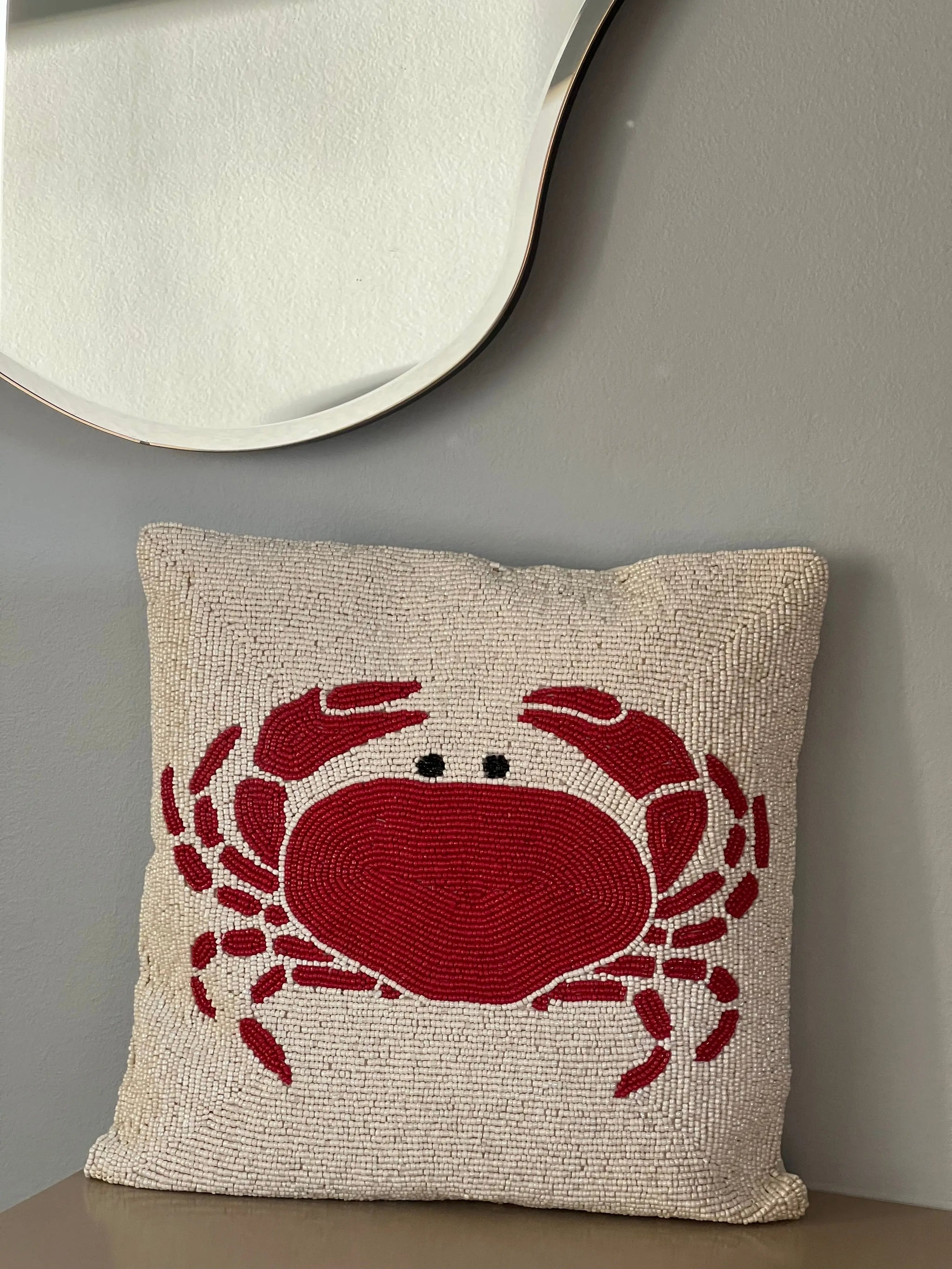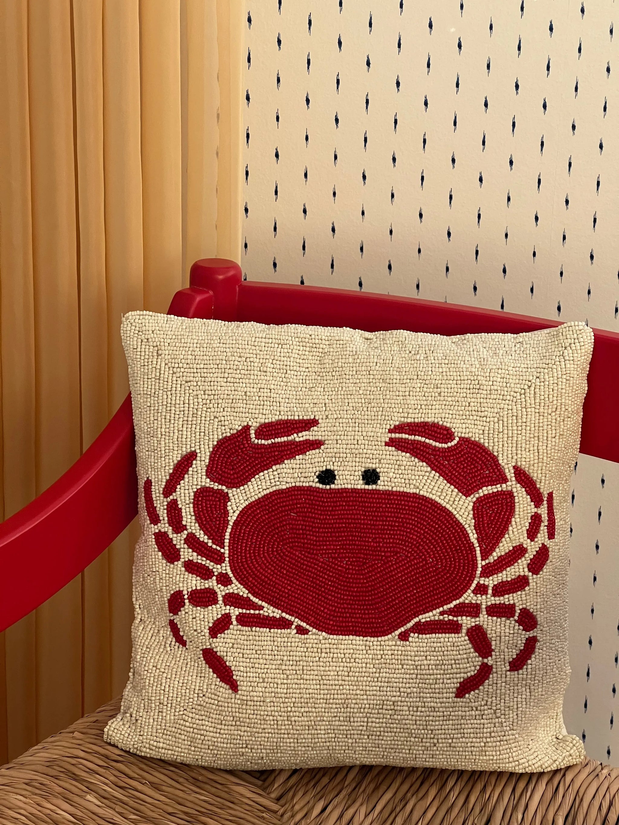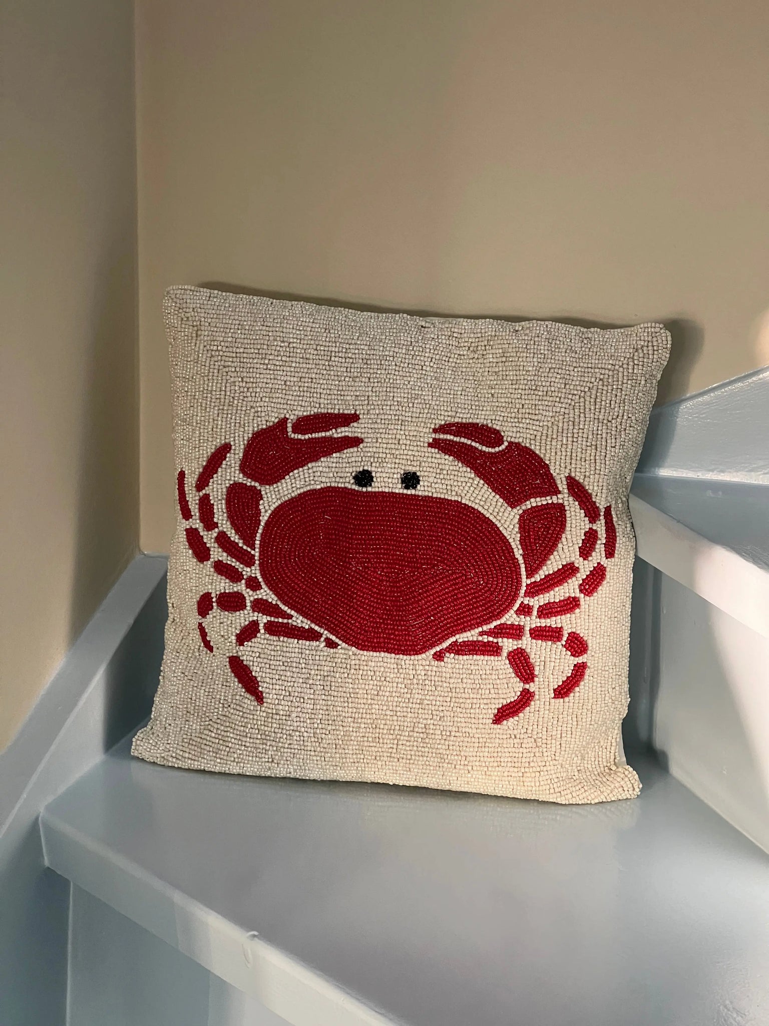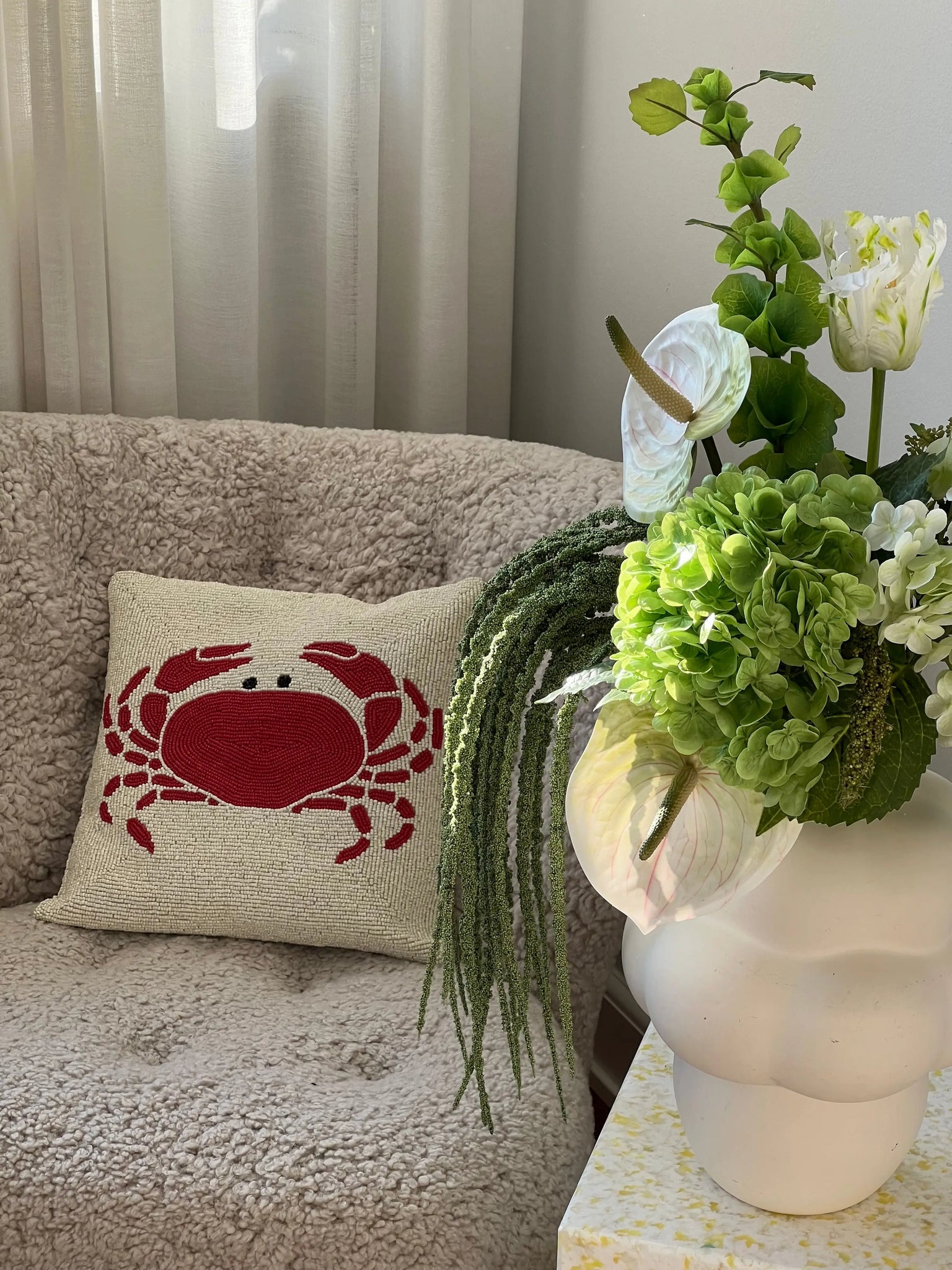 Discover elegance and charm with our beautiful and decorative pearl cushion in cream/white with a lively red crab. This stylish cushion is designed to add a unique touch to your home. Whether placed on the sofa, chair, or bed, this cushion is sure to create an eye-catching and inviting atmosphere in any room. Handcrafted with care and attention to detail, this cushion measures 35 x 35 cm, providing just the right amount of comfort and support. Add a touch of coastal inspiration and personality to your home with this unforgettable cushion.