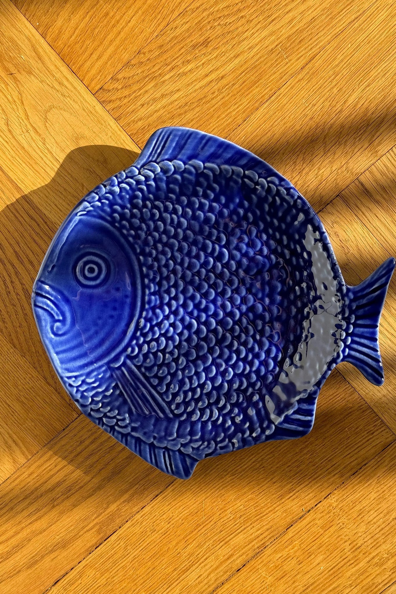 Beautiful, hand-painted Portuguese fish platter in an elegant dark blue color. Perfect for serving fish and seafood dishes, but also suitable for other dishes that require a stylish presentation. The fish platter is available in several colors and sizes, so you can find the one that best suits your needs.