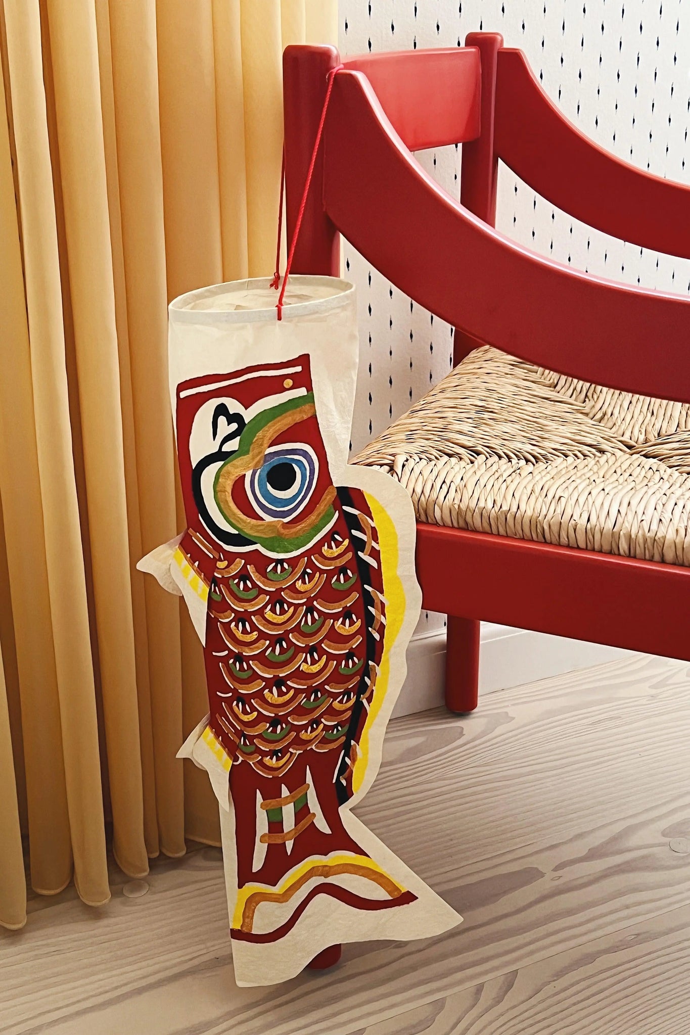 Red Japanese Koinobori Fish in Washi Paper for hanging | 57 cm