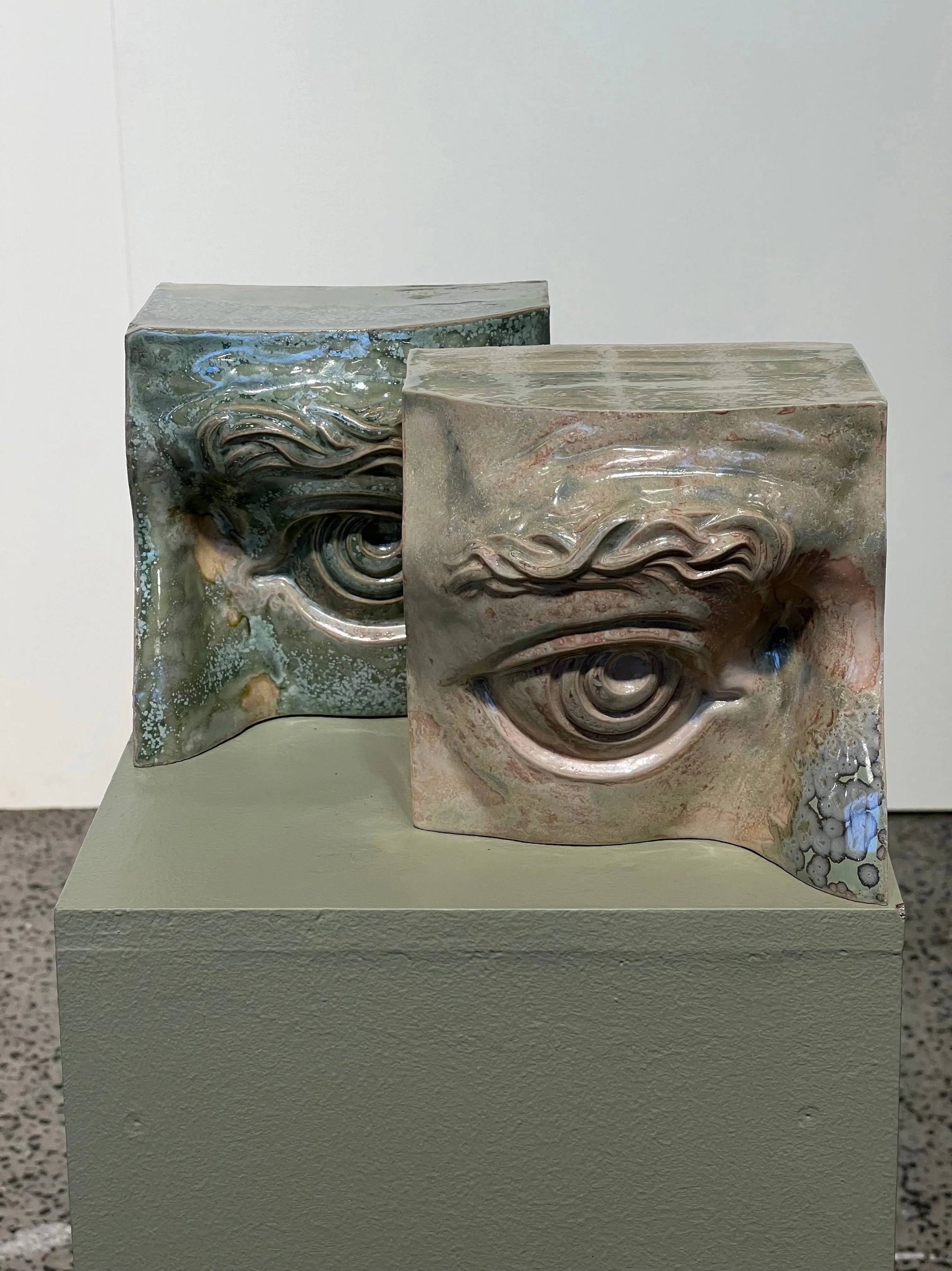 Laoru Laoru | Bookend Eye (Right): Right Eye Bookend in CrystalGreen Stoneware