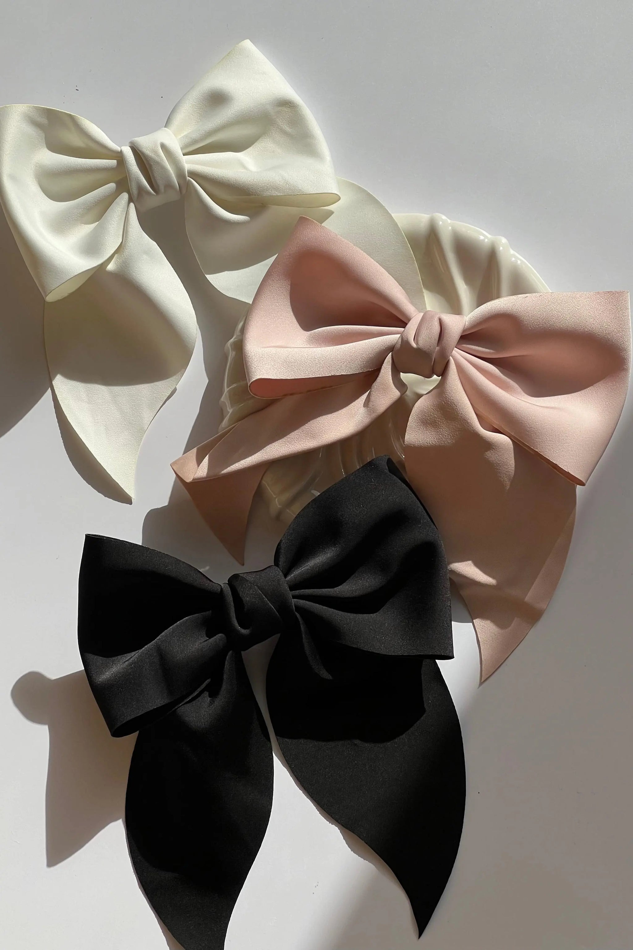 Our hair clip with bow in black, white or pink fabric is an indispensable accessory that beautifully combines both functionality and style. This elegant hair clip adds a touch of finesse to your hairstyle.