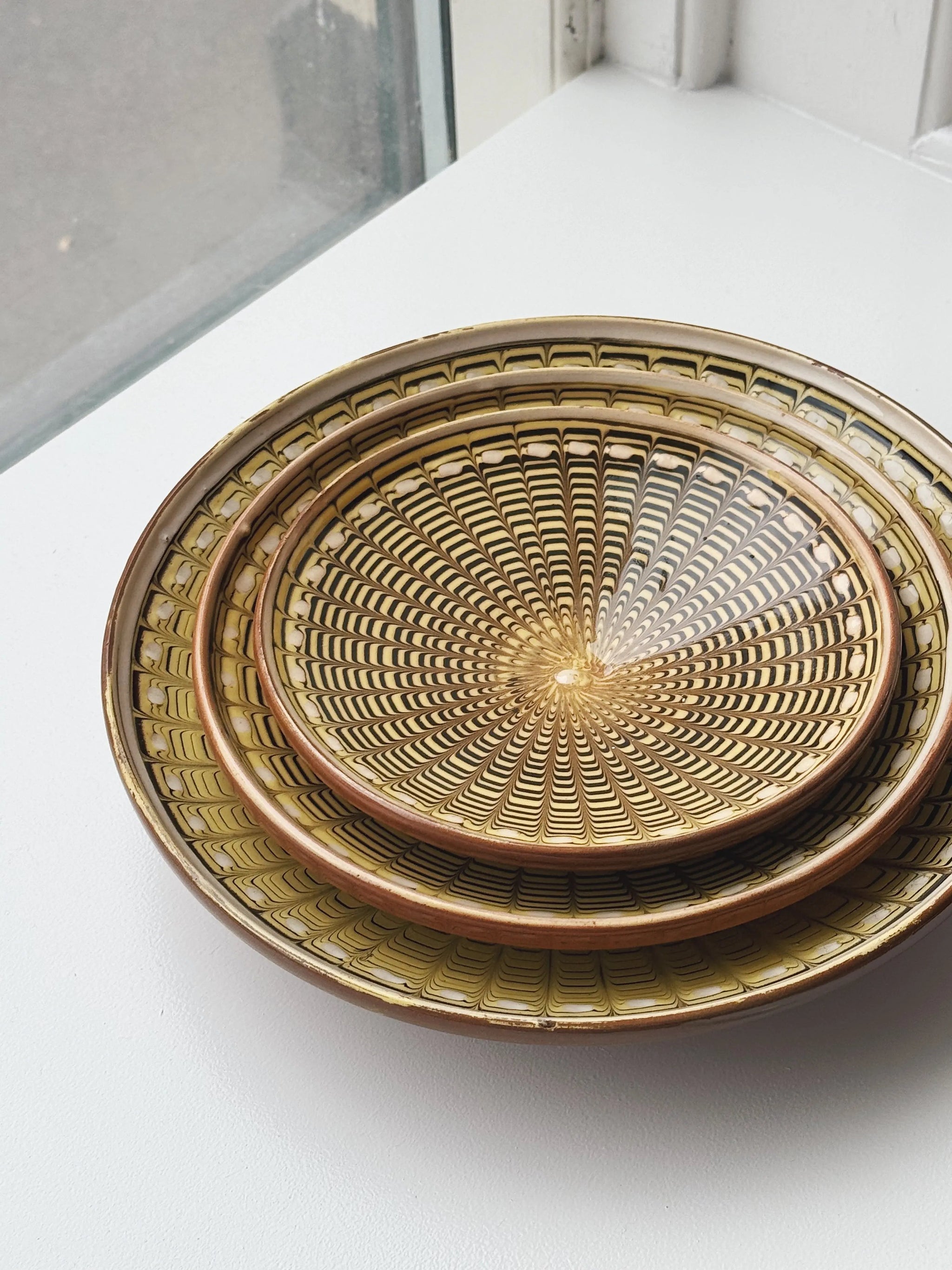 Each plate is a unique piece of craftsmanship – shaped, painted and glazed by hand using traditional methods. This means that variations in size (up to about 1 cm), colour and pattern are part of its charm and not imperfections. The meeting between the clay and the many layers of colour may create fine, crackle-like lines in the glaze; these are natural and do not affect the function of the piece.