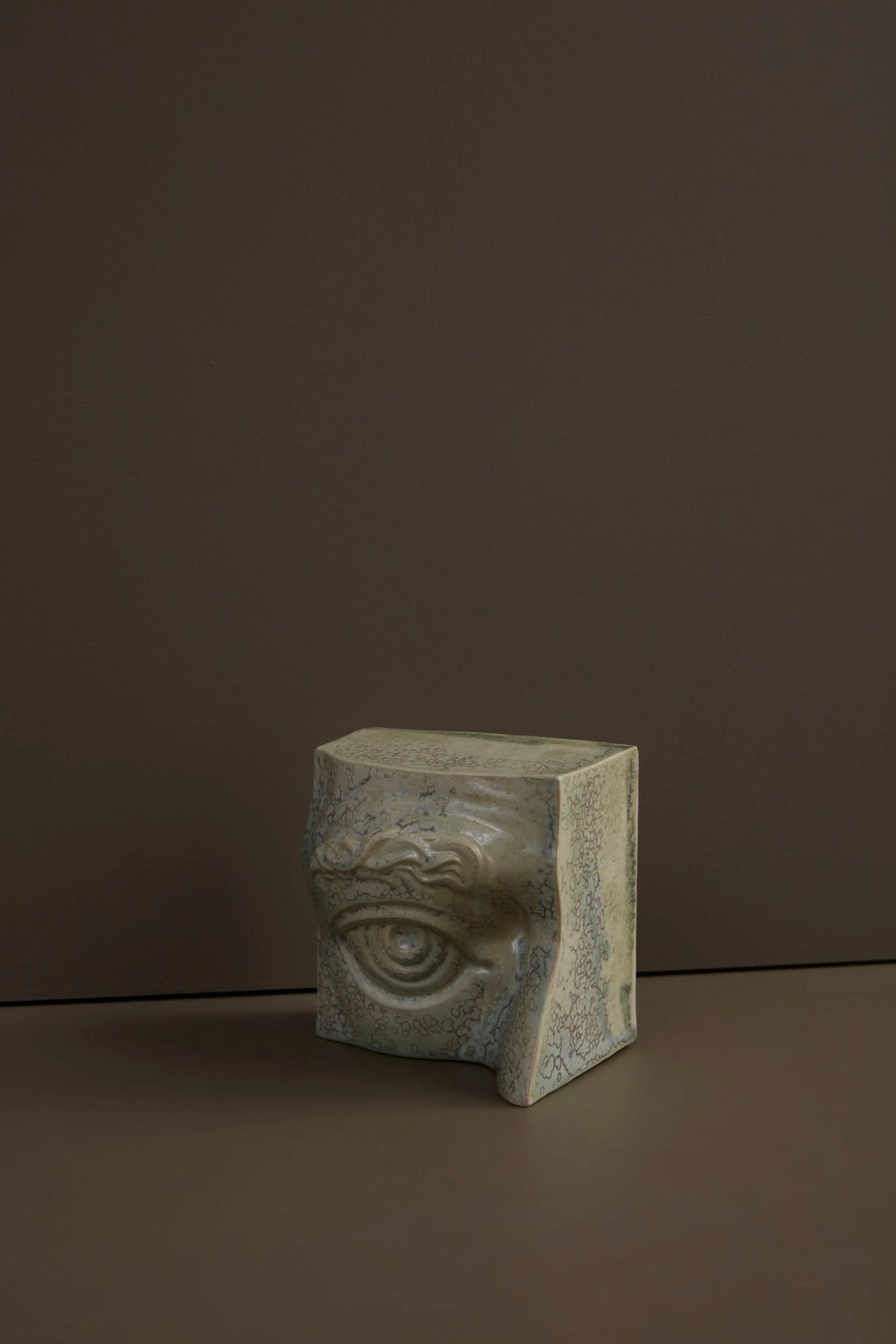 Laoru Laoru | Bookend Eye (Right): Right Eye Bookend in CrystalGreen Stoneware