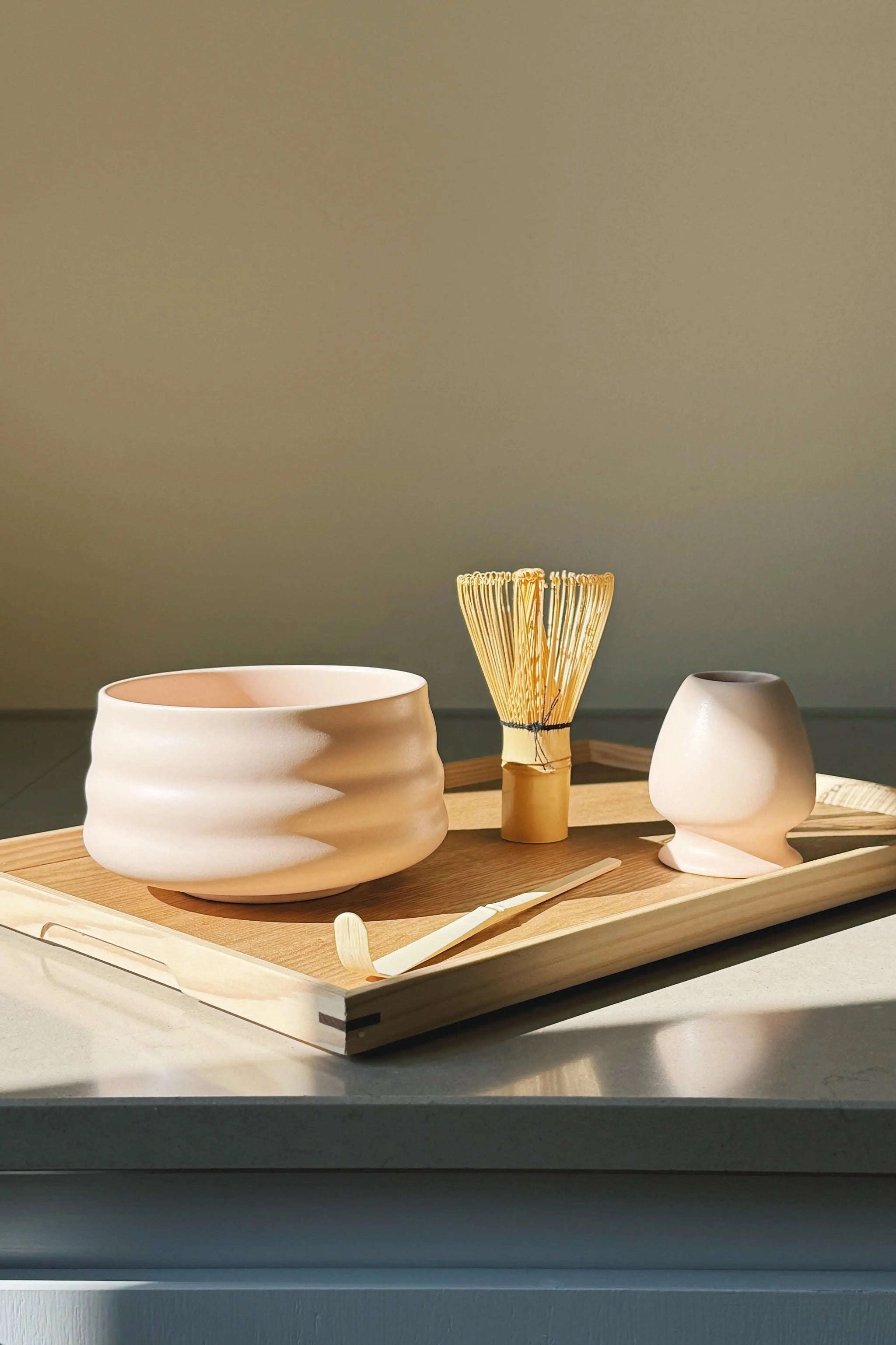 Matcha Set with Bowl, Scoop, Whisk & Holder – Matte Light Pink Ceramic