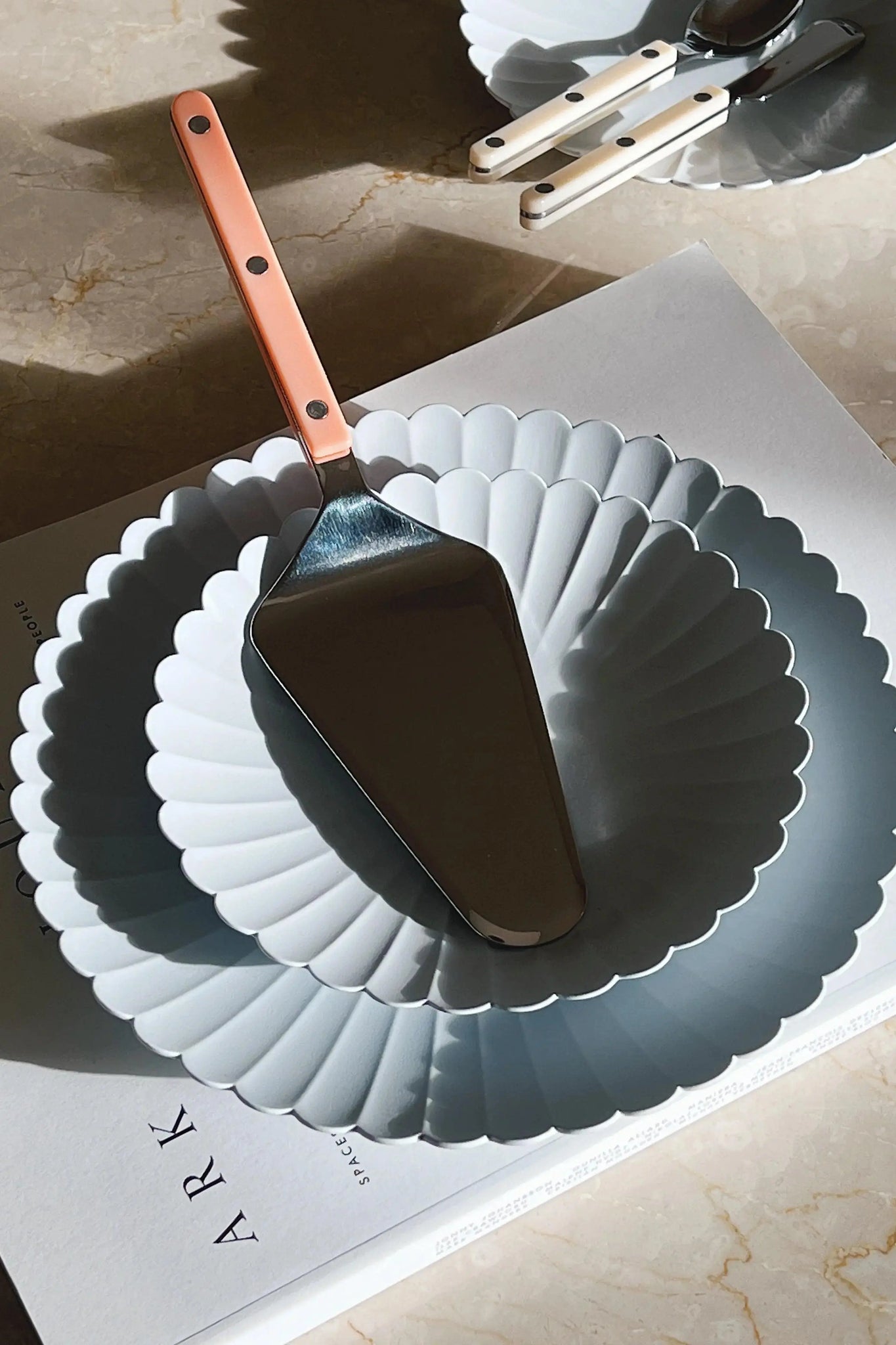 Sabre Paris has refined dining since 1993 by blending French craftsmanship with colorful, modern design. At Studio Hafnia we focus on the Sabre Paris Solid series – 4-piece cutlery sets, butter knives, serving cutlery and a cake knife in timeless shades such as ivory, khaki, nude, pastel blue, navy blue and lapis blue.