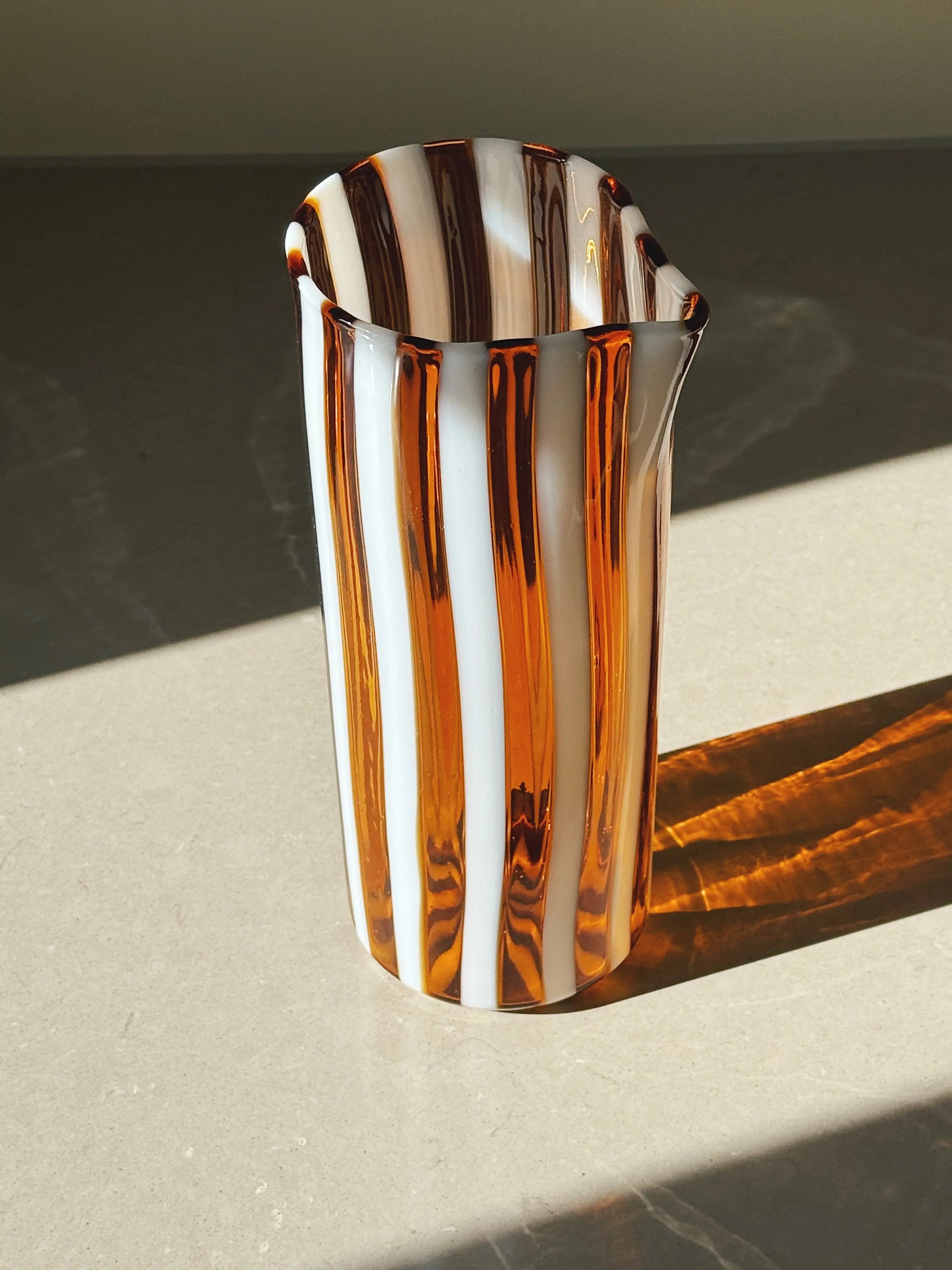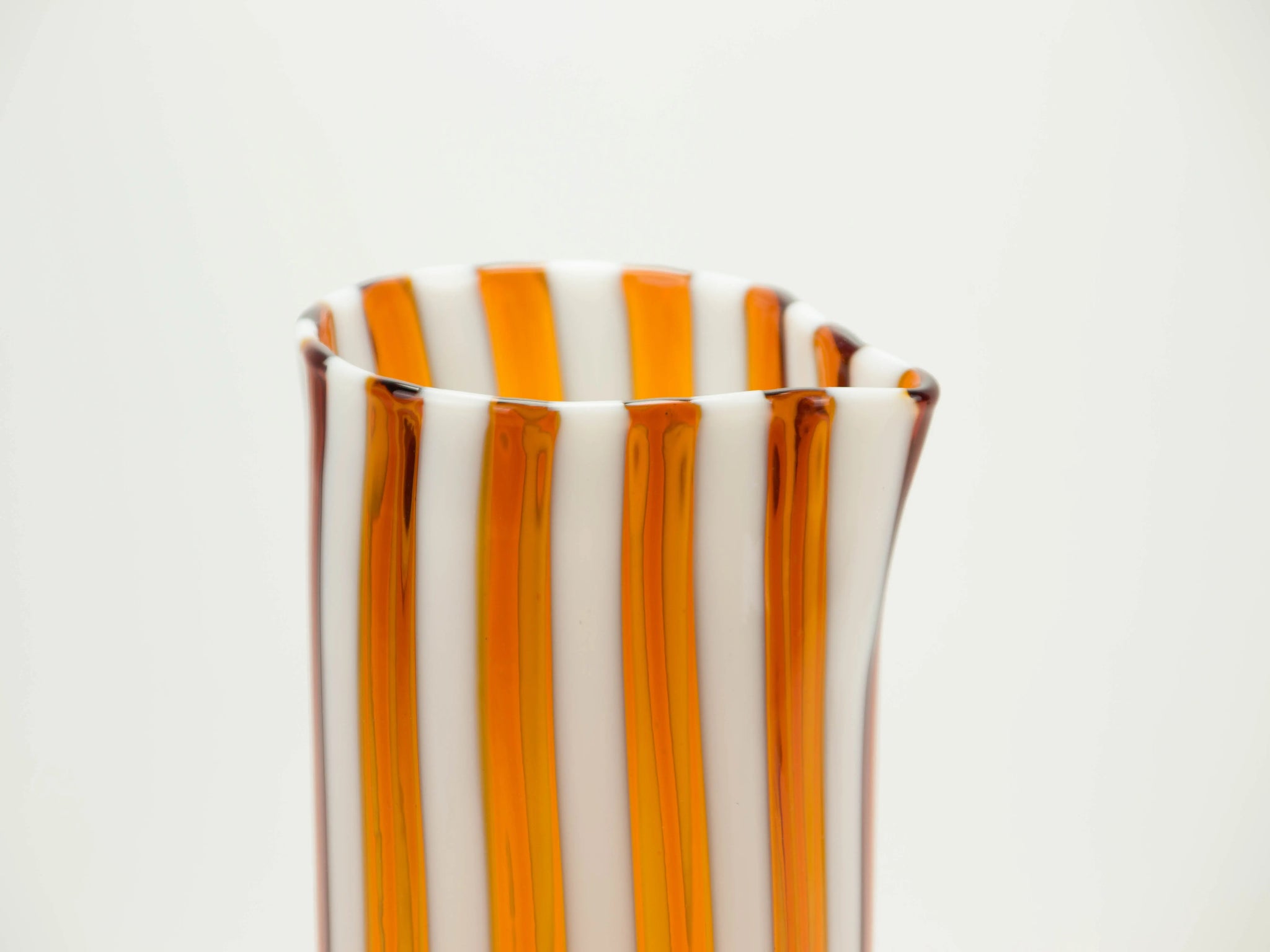 Indulge in timeless Italian elegance with this beautiful hand-blown Murano carafe, inspired by the iconic Gio Ponti style. Each carafe is a one-of-a-kind piece of glass art, mouth-blown on the legendary island of Murano, Italy – a place renowned for its centuries-old glassmaking traditions.
