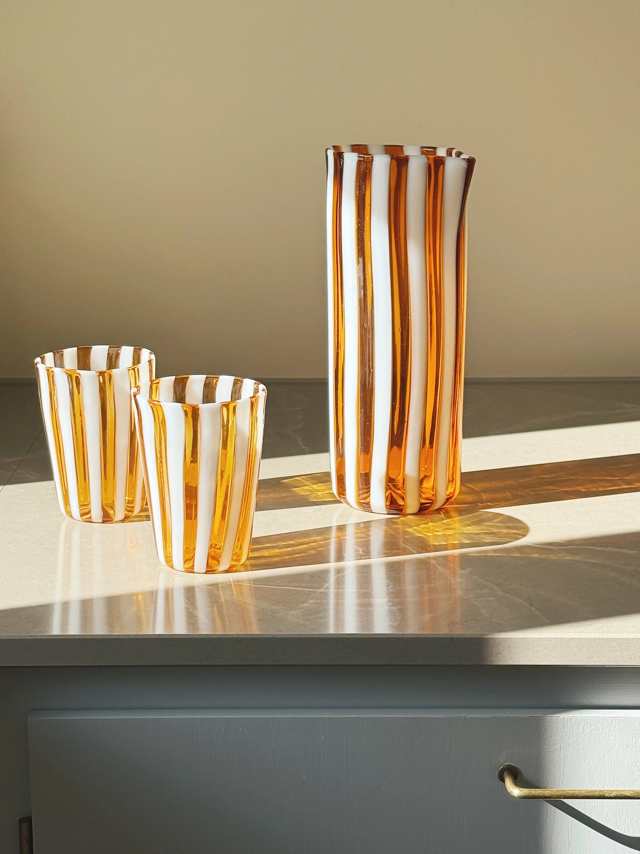Please note: As each carafe is handmade, slight variations in shape, color, and pattern may occur. Small imperfections such as air bubbles are part of the artisanal charm that makes each piece truly unique.