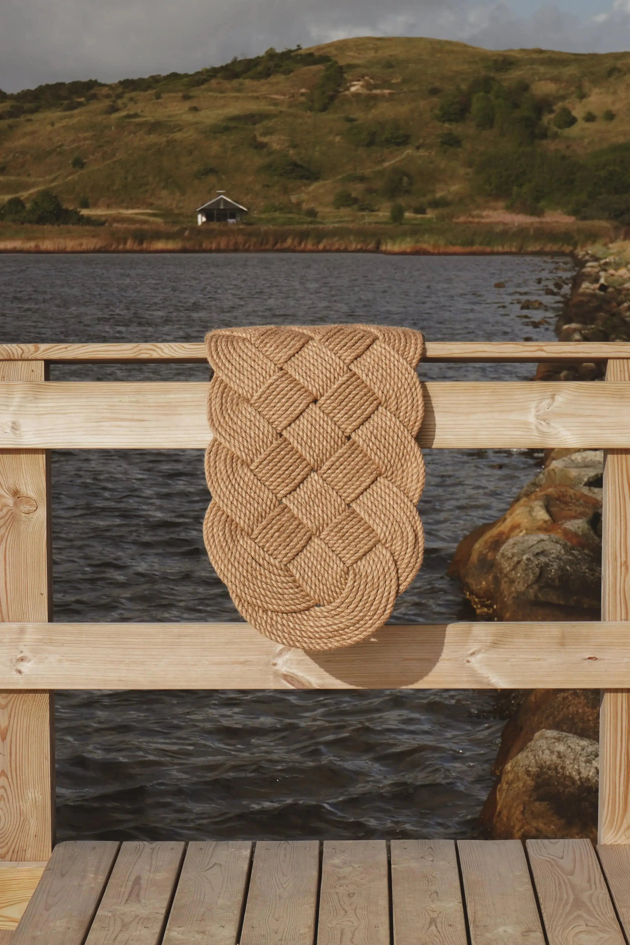 The geometric braid pattern is inspired by the movement of the sea and adds warmth and texture to any entryway, kitchen, summer house or balcony. Despite its artistic appearance, the mat is also highly functional – and works perfectly as a doormat, as long as it is placed in dry environments.