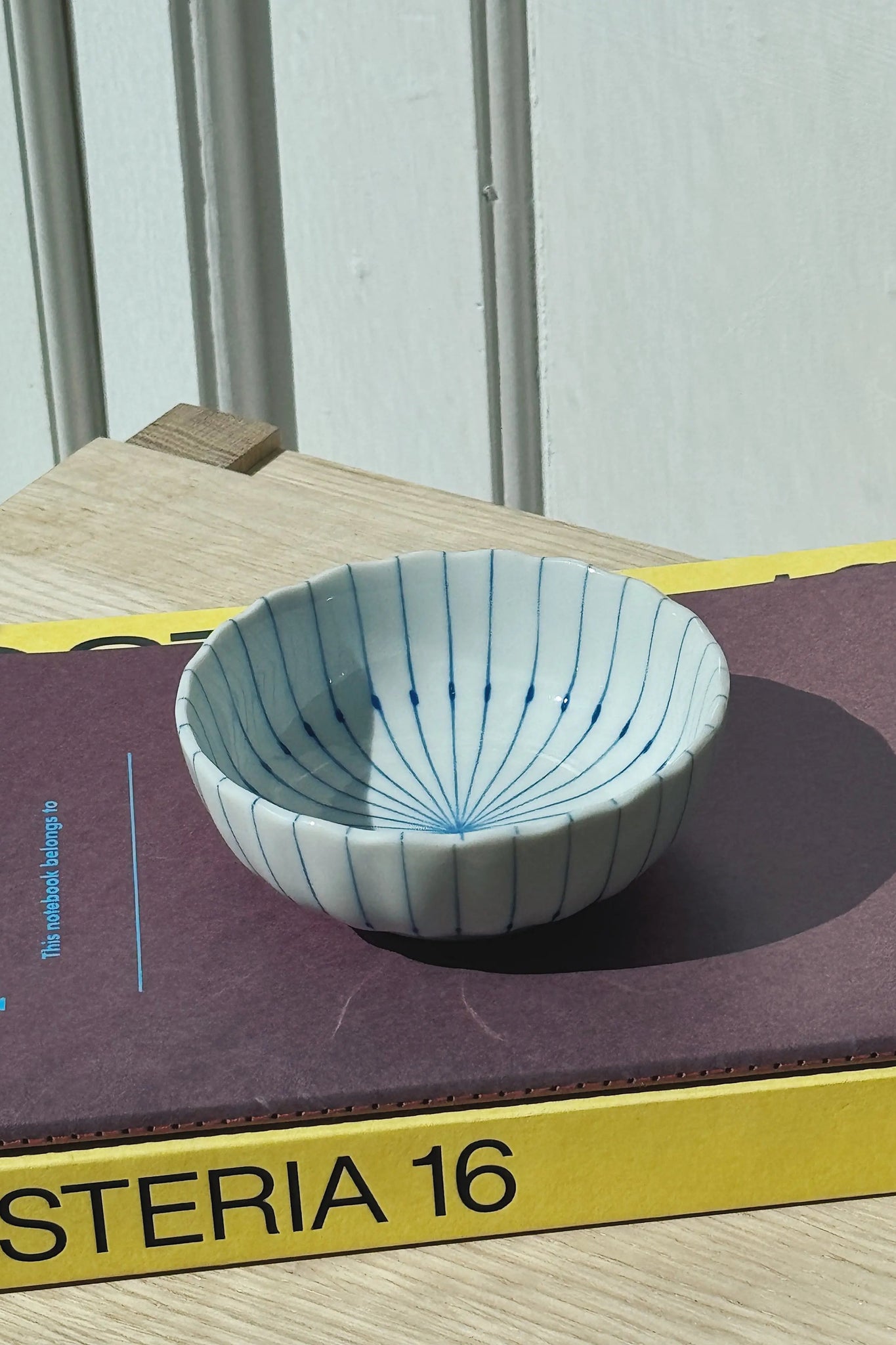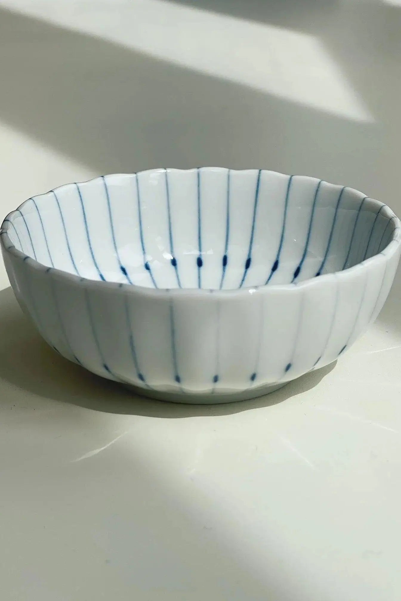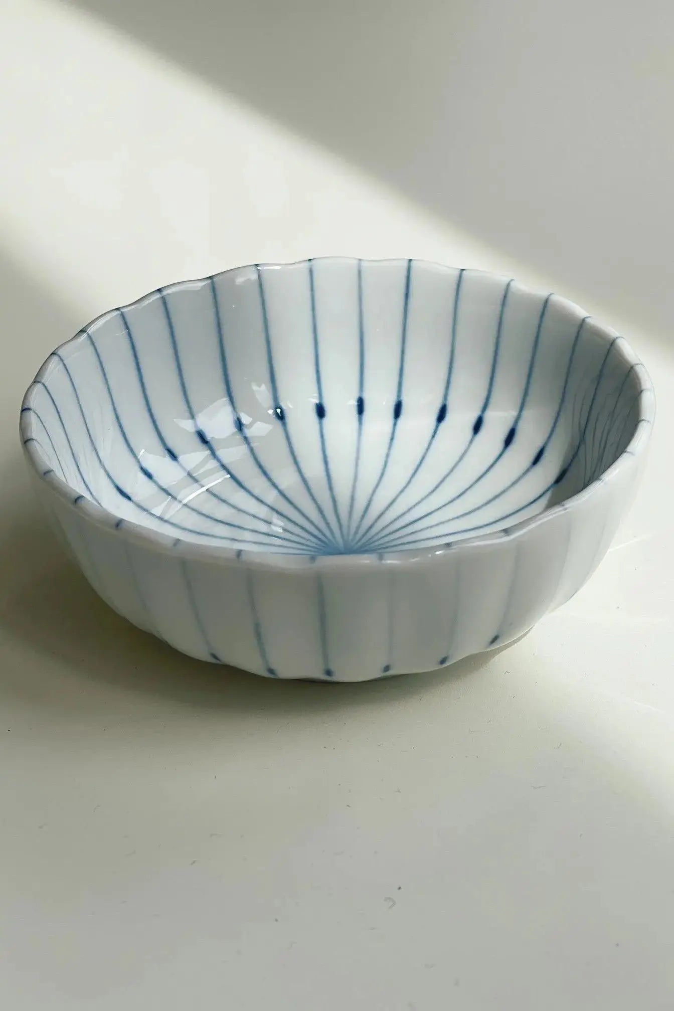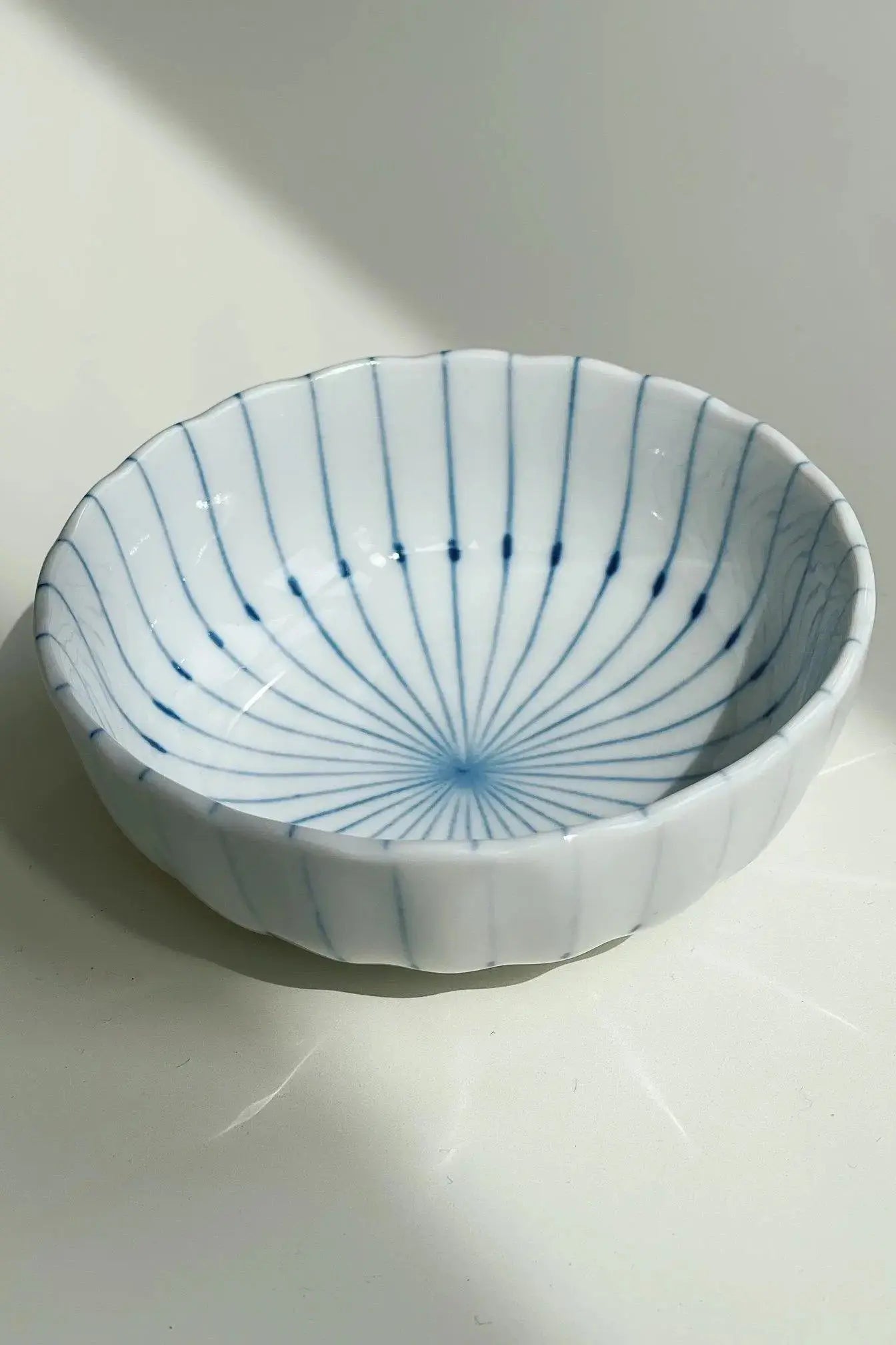 Chrysanthemum bowl with thin blue stripes