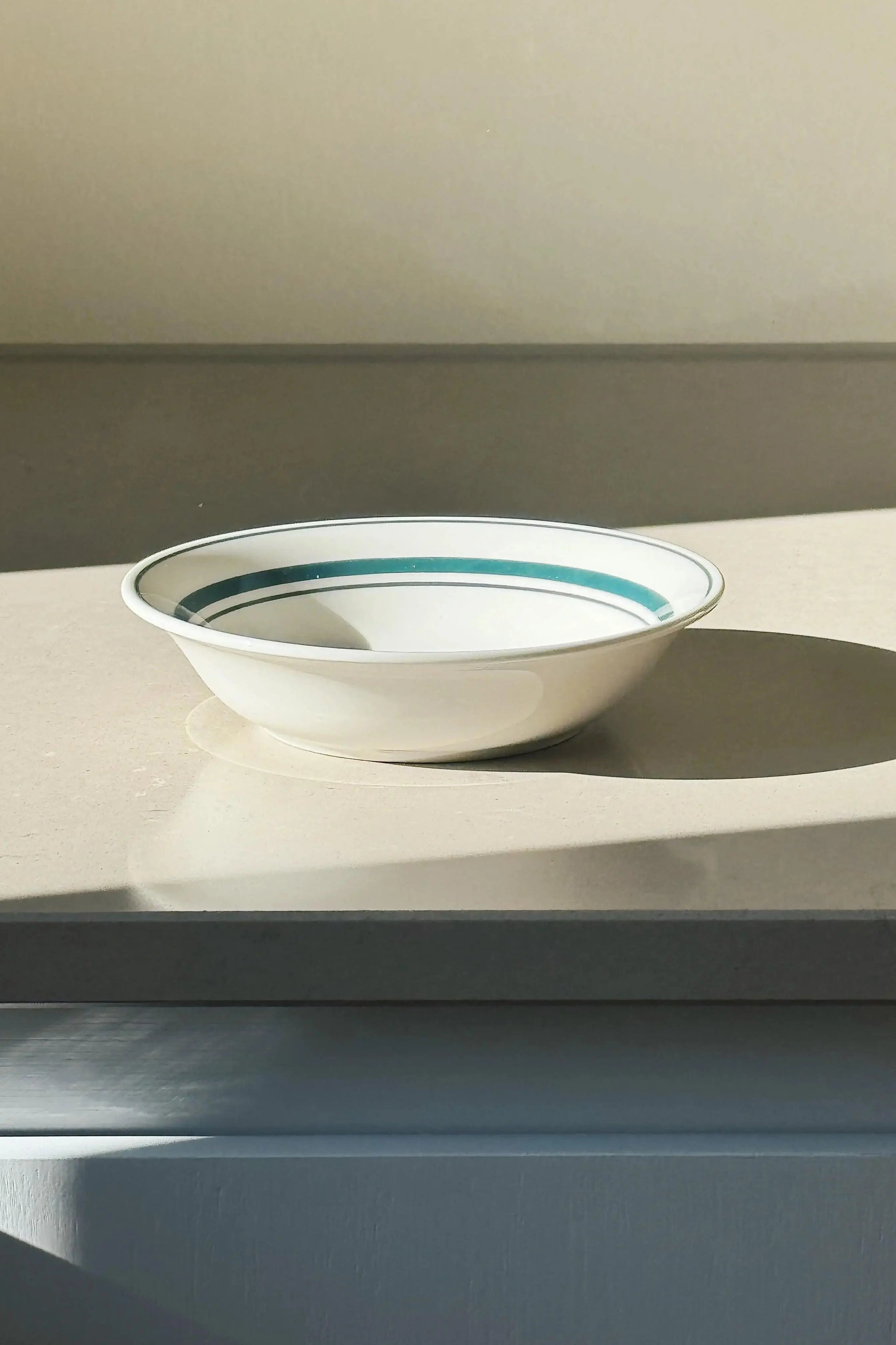 Elegant Japanese ceramic bowl featuring hand-painted green stripes in a classic retro design. Its low, wide shape makes it ideal for serving breakfast, yogurt, fruit, snacks, or small dishes. A beautiful and versatile piece that suits both everyday dining and special occasions.