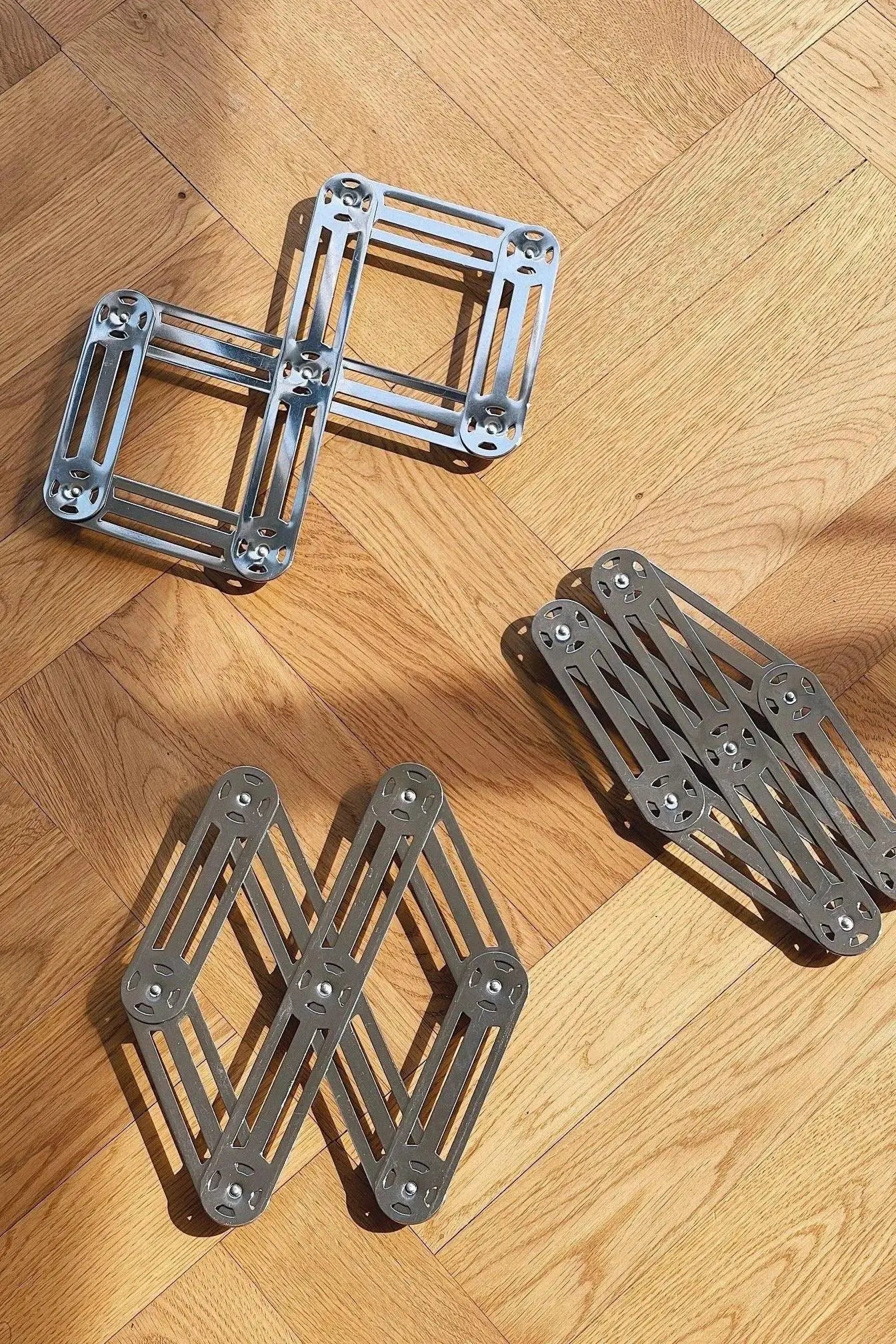 The trivet can be folded out and in, so that it can accommodate both one or two pots, or a large ovenproof dish.
