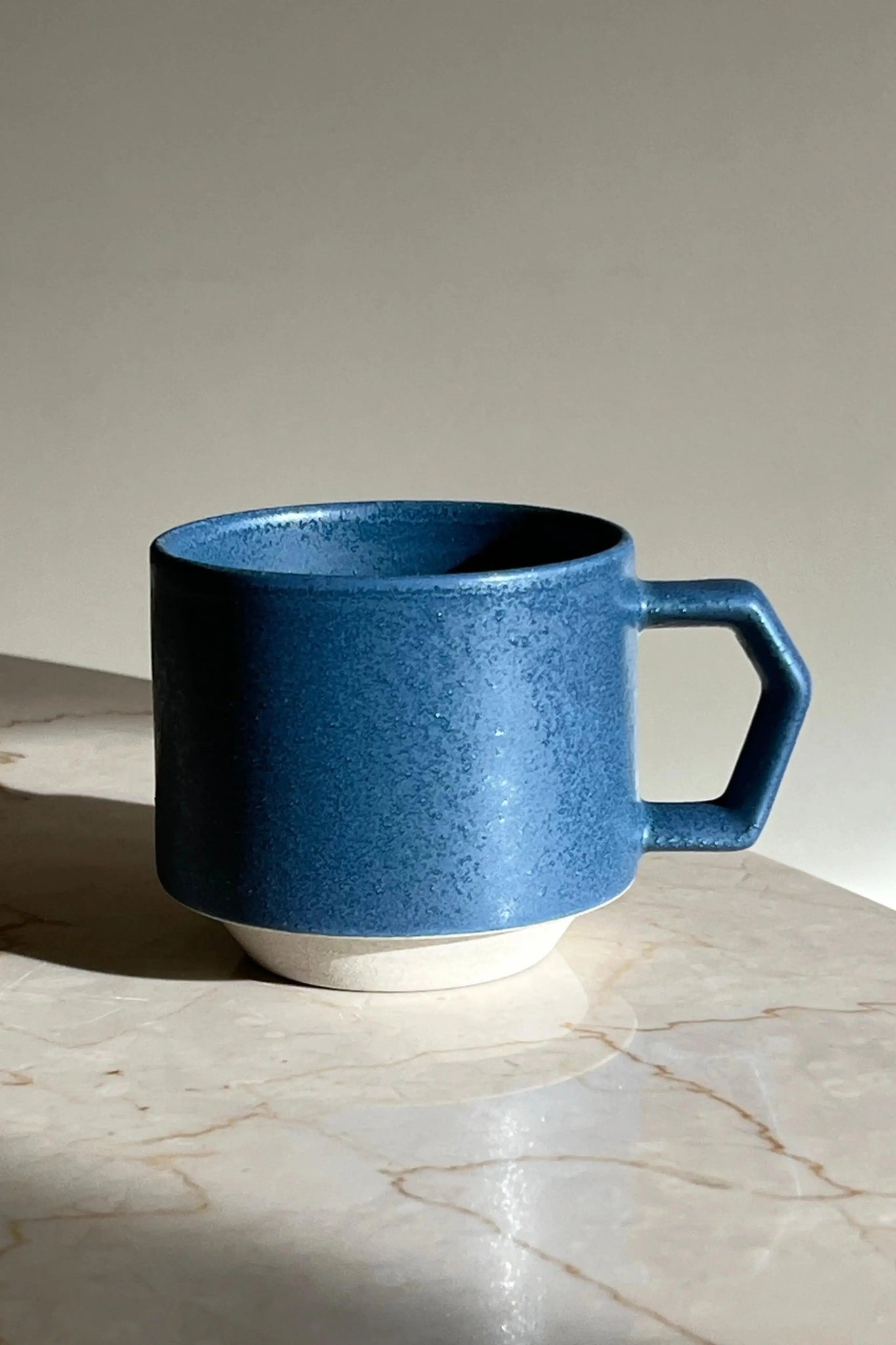 Chips Cup in Matte Blue with Beige/White Bottom, Handmade in Japan.