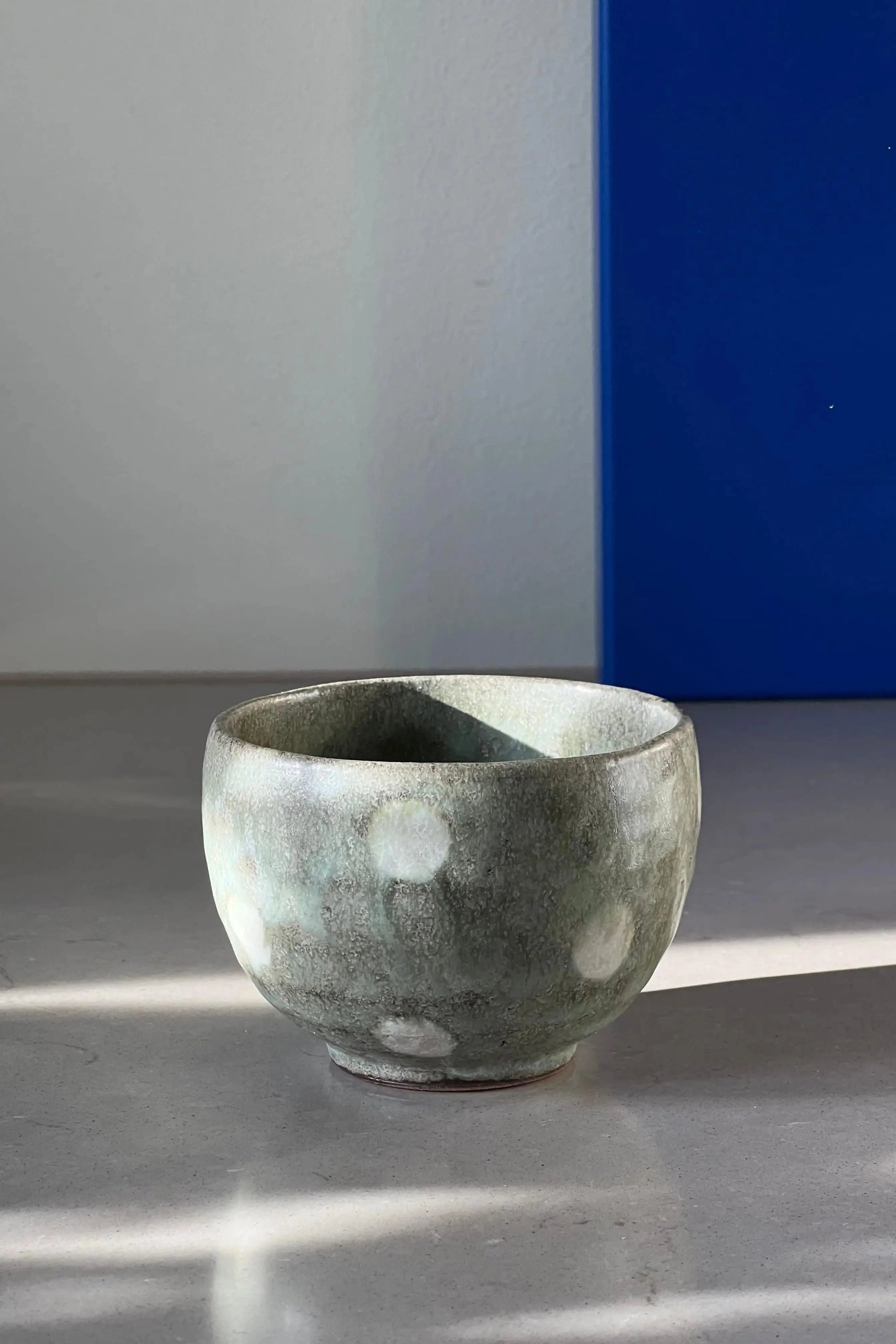 Handmade-light-gray-light-green-cup-with-white-dots-without-handle-from-Japan-ceramic