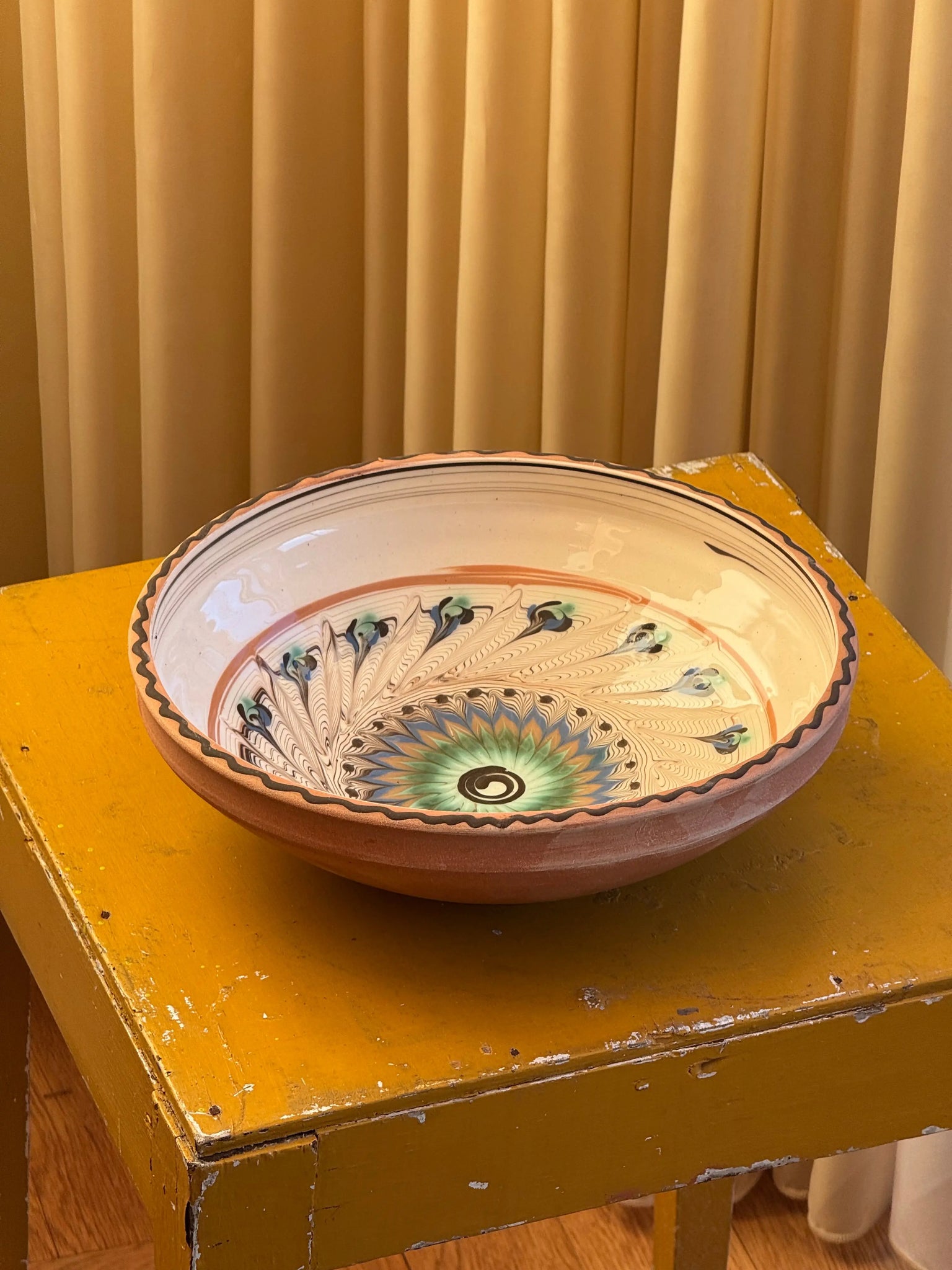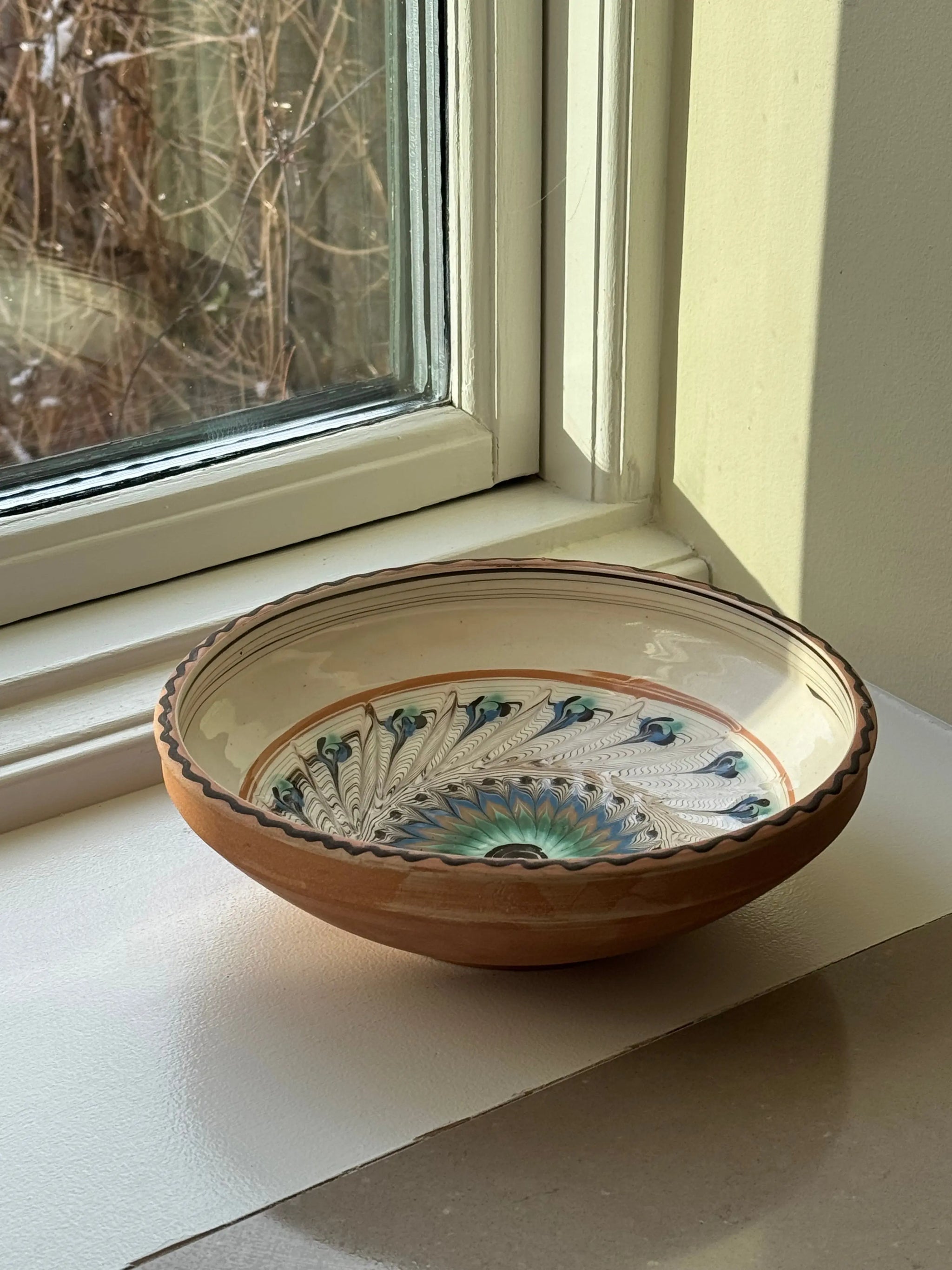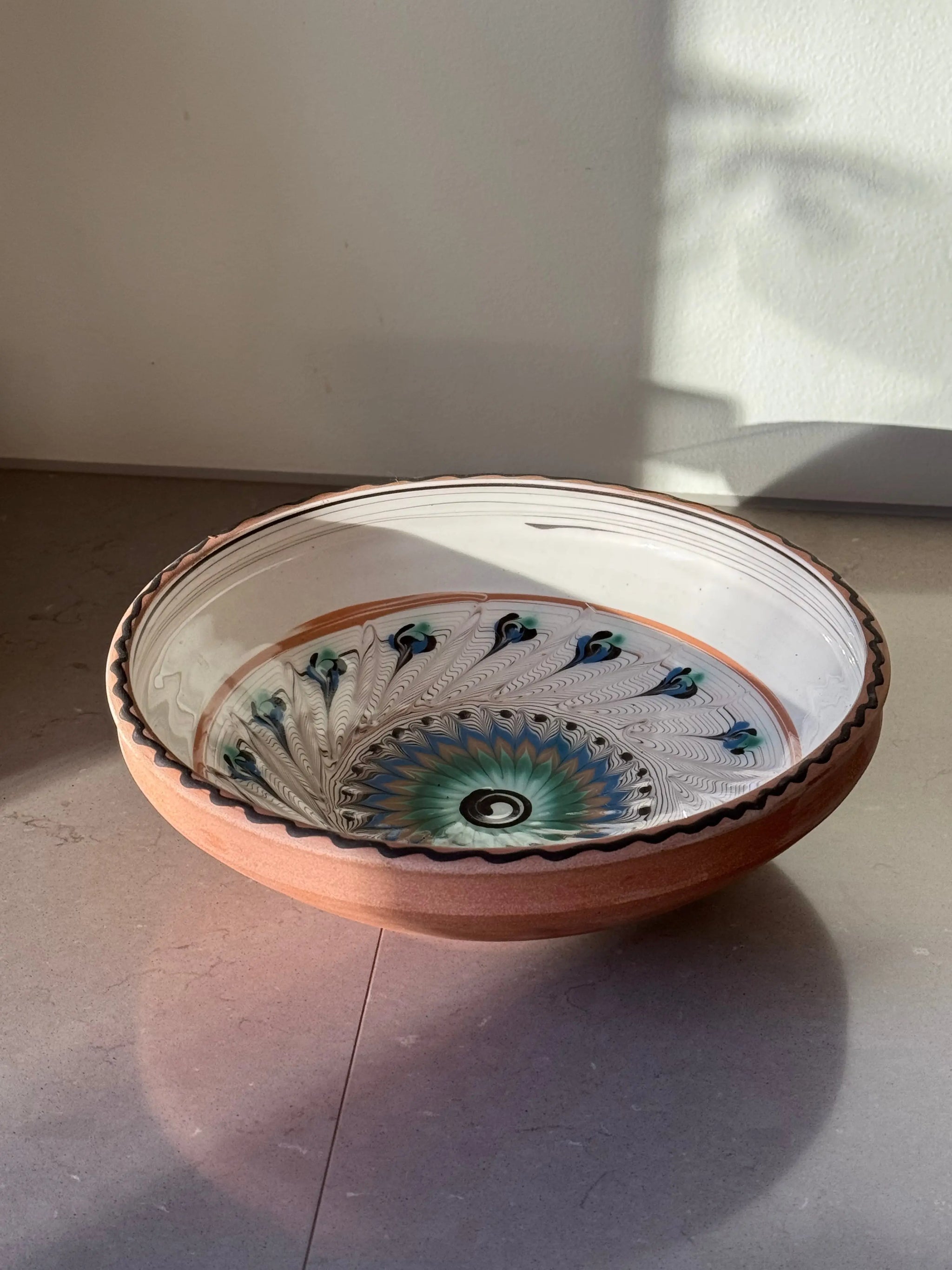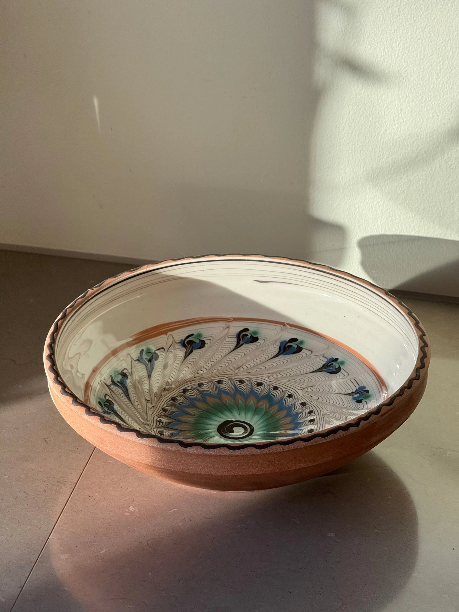 Beautiful and decorative ceramic bowl from the Romanian town of Horezu. The bowl is created by skilled local craftsmen and is carefully hand-turned and hand-painted, giving it a unique character and beauty. No two bowls are exactly the same, and the technique is so unique that it has been included as part of UNESCO's World Heritage.