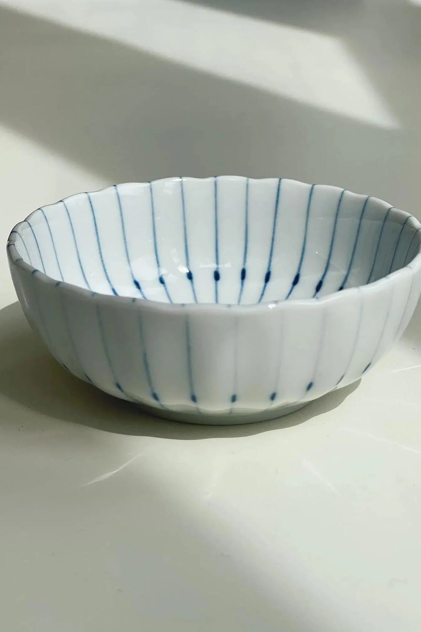 Chrysanthemum bowl with thin blue stripes